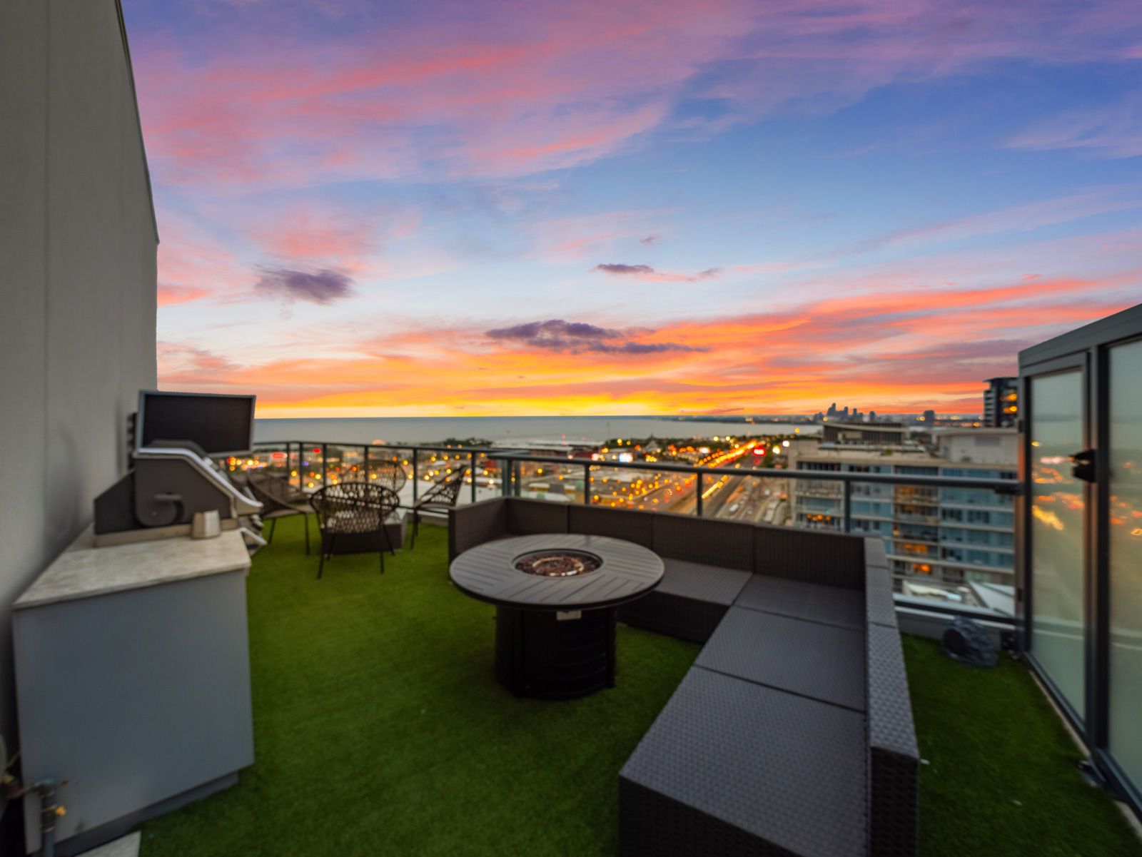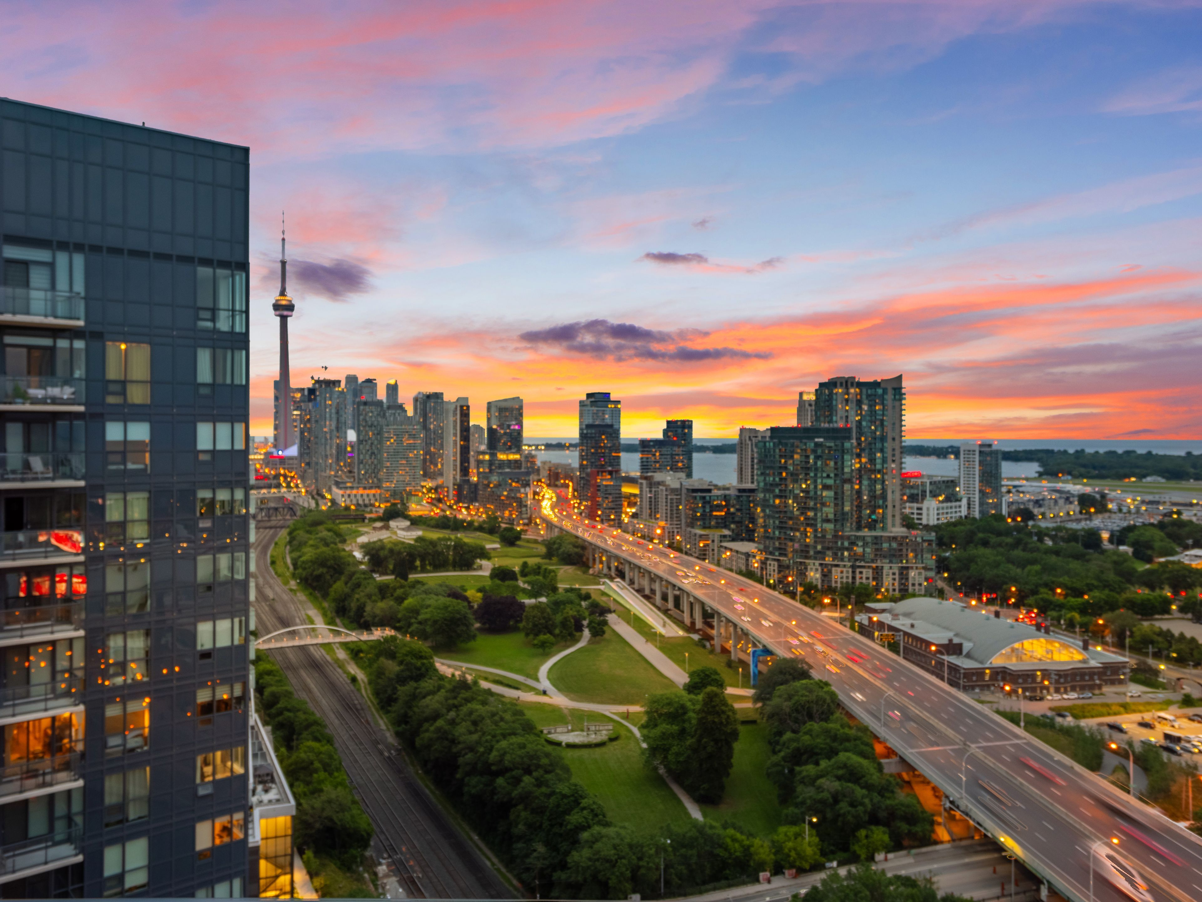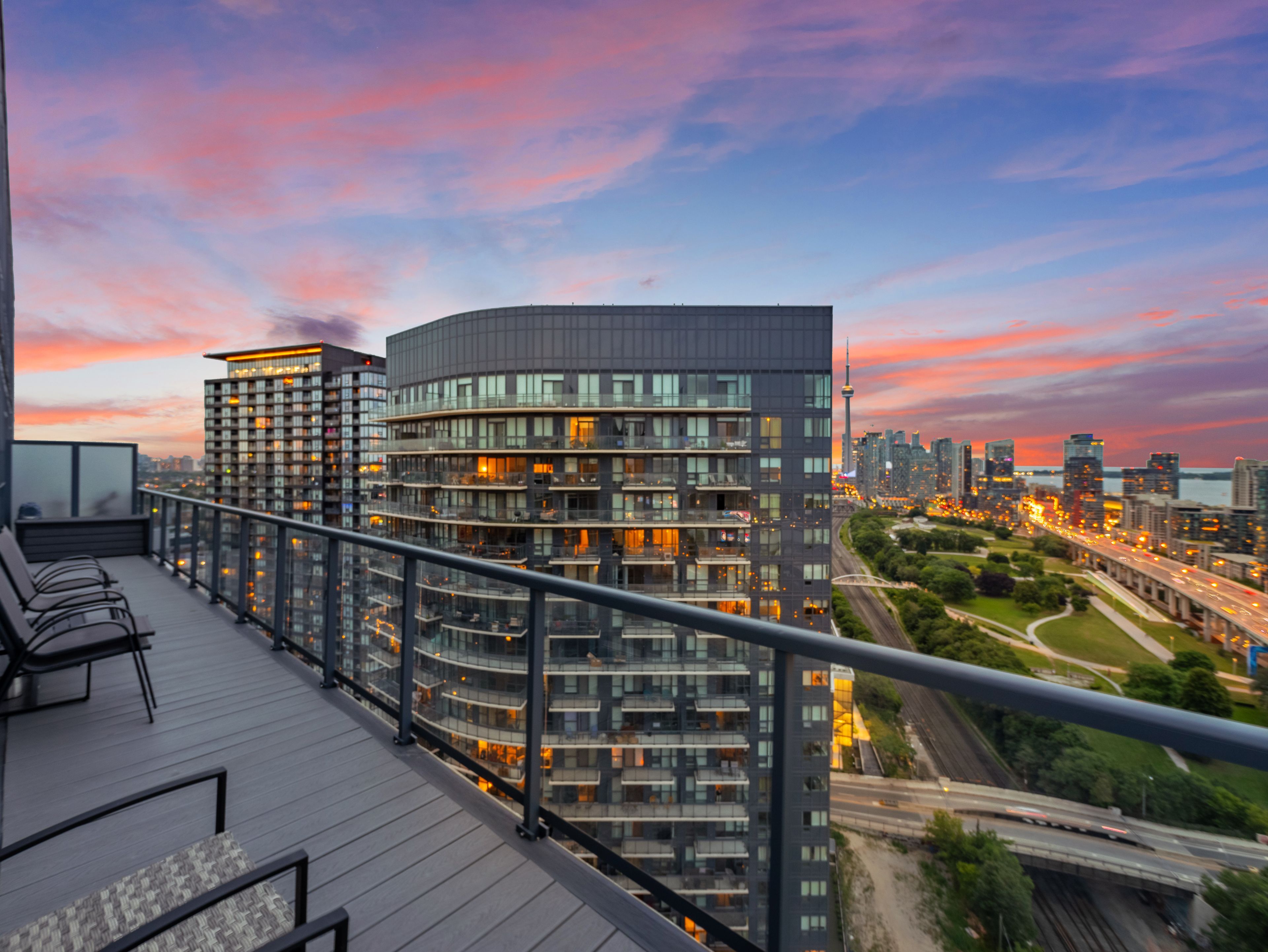 Experience elevated penthouse living in this one-of-a-kind 2+1 bedroom, 2 bathroom residence offering an expansive 1,855 sq ft of refined interior space and exceptional outdoor living. This stunning corner suite features floor-to-ceiling windows, an open-concept layout designed for entertaining, and breathtaking east-facing views of the CN Tower and Lake Ontario from the private balcony. A true standout, the private rooftop terrace offers an extraordinary retreat with southwest exposure, spectacular sunset views, and additional water vistas - perfect for hosting or relaxing above the city.The thoughtfully designed interior showcases contemporary finishes, a modern chef's kitchen with high-end appliances, spacious bedrooms, built-in storage, and flexible den space. The primary suite features a walk-out to the balcony and a private ensuite. Rarely offered wellness features including a private infrared sauna and cold plunge elevate the home's resort-like experience. Complete with parking, locker, and full-service building amenities, this exceptional residence offers sophisticated urban living at its finest. Ideally situated in the heart of Liberty Village, this residence offers the perfect balance of privacy and convenience - steps to premier dining, cafés, fitness studios, and waterfront trails, with seamless access to Downtown Toronto, Billy Bishop Airport, major highways, and key venues for the upcoming FIFA World Cup.