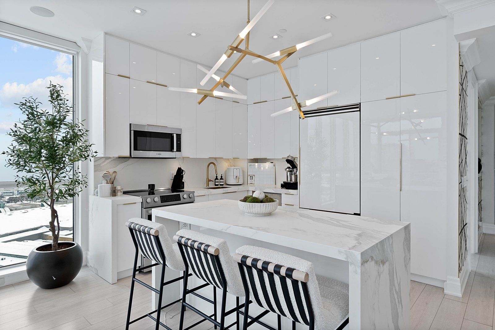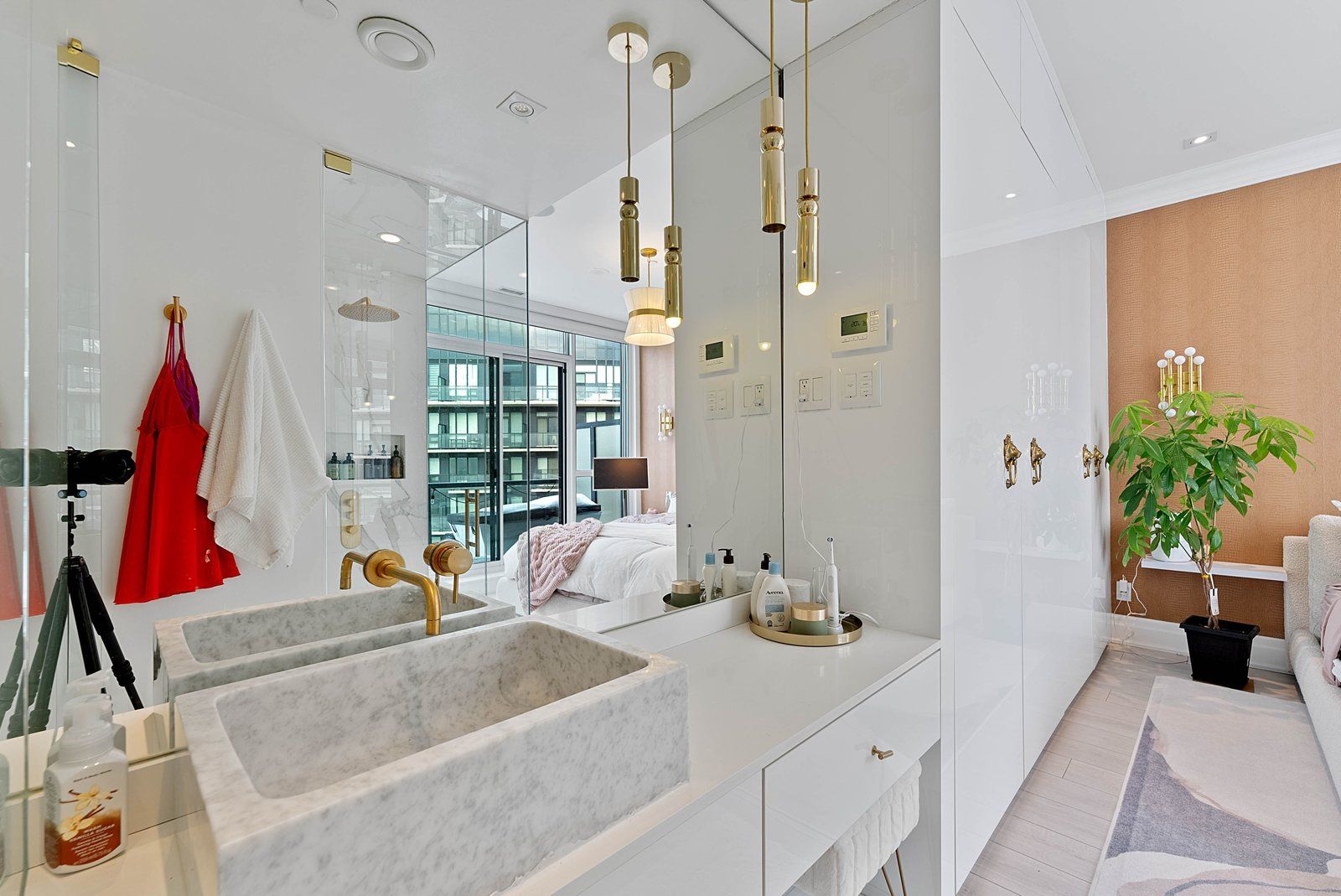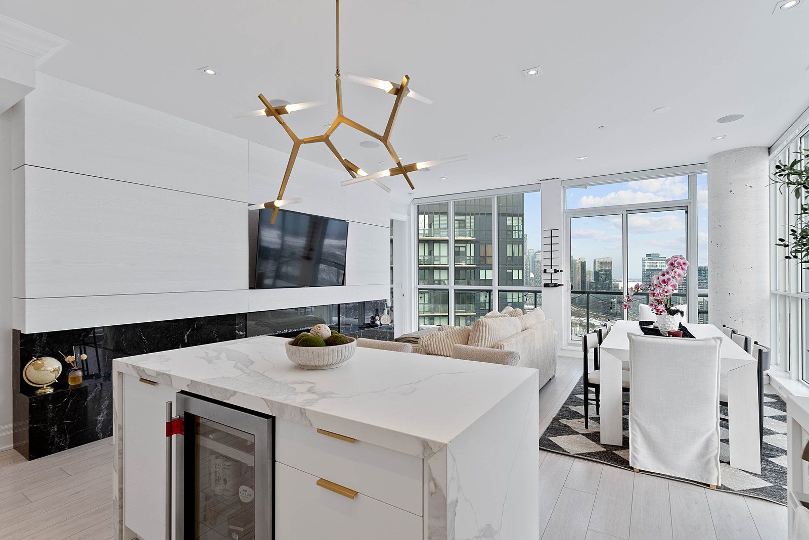 Experience elevated penthouse living in this one-of-a-kind 2+1 bedroom, 2 bathroom residence offering an expansive 1,855 sq ft of refined interior space and exceptional outdoor living. This stunning corner suite features floor-to-ceiling windows, an open-concept layout designed for entertaining, and breathtaking east-facing views of the CN Tower and Lake Ontario from the private balcony. A true standout, the private rooftop terrace offers an extraordinary retreat with southwest exposure, spectacular sunset views, and additional water vistas - perfect for hosting or relaxing above the city.The thoughtfully designed interior showcases contemporary finishes, a modern chef's kitchen with high-end appliances, spacious bedrooms, built-in storage, and flexible den space. The primary suite features a walk-out to the balcony and a private ensuite. Rarely offered wellness features including a private infrared sauna and cold plunge elevate the home's resort-like experience. Complete with parking, locker, and full-service building amenities, this exceptional residence offers sophisticated urban living at its finest. Ideally situated in the heart of Liberty Village, this residence offers the perfect balance of privacy and convenience - steps to premier dining, cafés, fitness studios, and waterfront trails, with seamless access to Downtown Toronto, Billy Bishop Airport, major highways, and key venues for the upcoming FIFA World Cup.