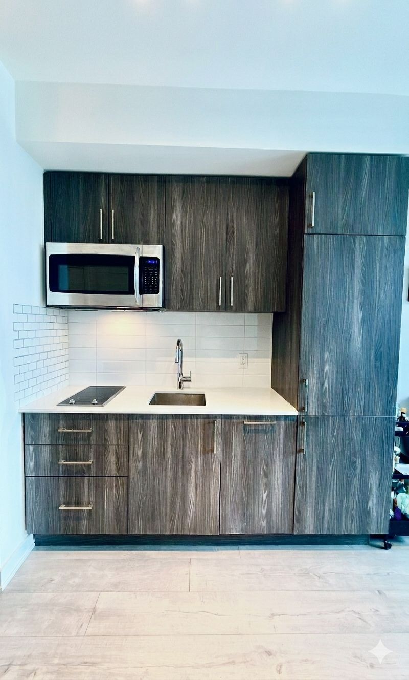 Established in the heart of King West, this spacious one-bedroom suite offers a bright, open-concept layout with classic city views and unbeatable urban convenience. The well-maintained unit features a functional kitchen with a stone island, perfect for those who love to cook after grabbing fresh ingredients from the Farm Boy located right on the ground floor. The bedroom provides a comfortable retreat with a walk-in closet featuring built-in organizers and a view of your cozy balcony-an ideal spot to take in the skyline. Perfectly situated for the downtown lifestyle, you are just a short walk from the Rogers Centre, Scotiabank Arena, the Financial District, the waterfront, and the world-class dining that defines the King West neighborhood.