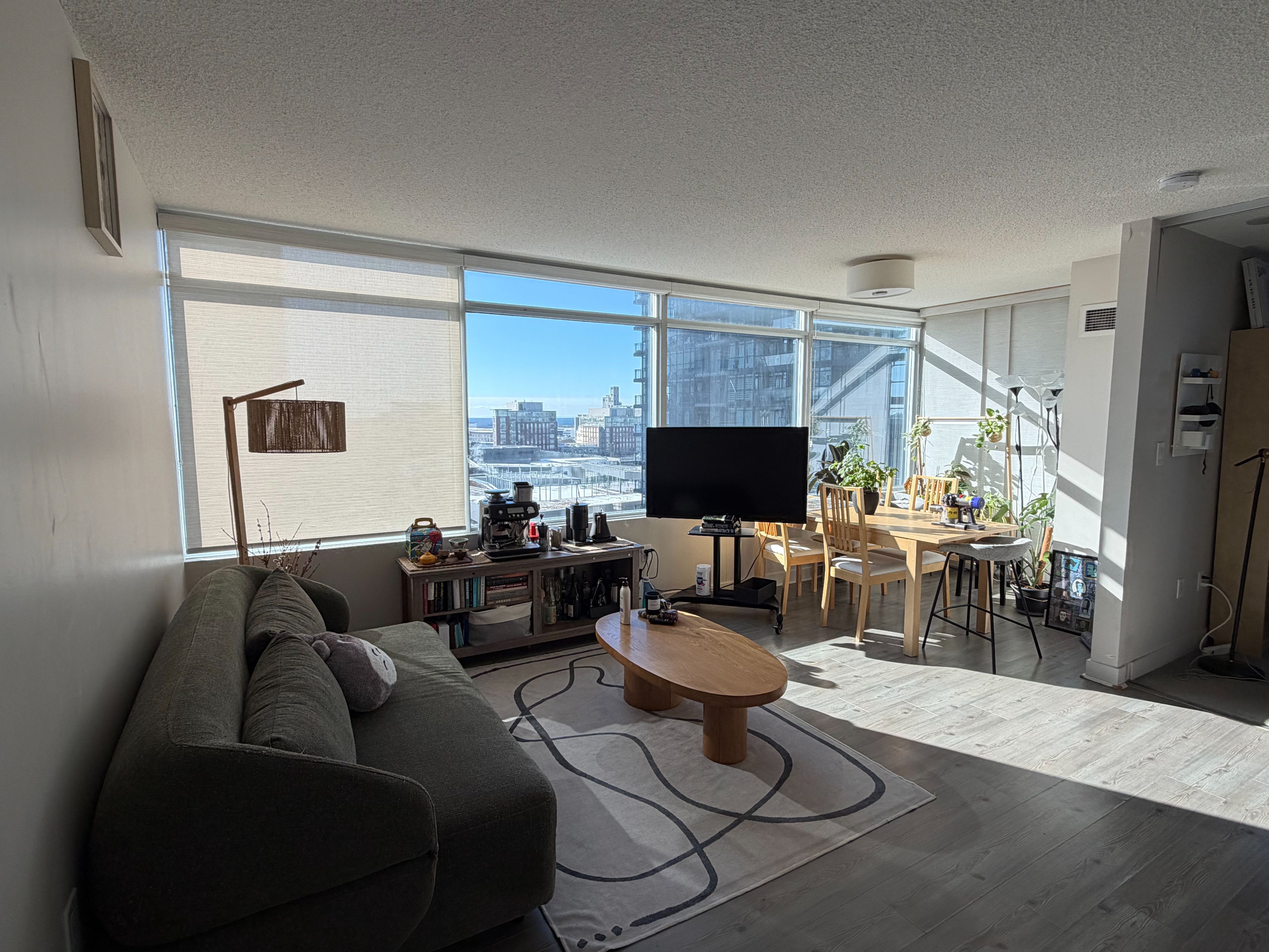 Stunning 2-bedroom, 2-bathroom corner suite in the heart of downtown offering floor-to-ceiling south-facing windows with lake views, a bright and spacious open-concept layout, modern finishes, generous room sizes, ample storage, and a private balcony, ideally located steps to the waterfront, transit, shopping, dining, and the city's financial and entertainment districts; furniture is negotiable.