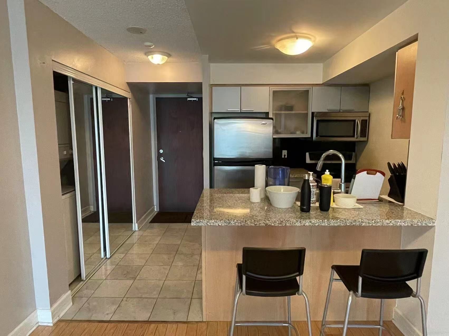 Excellent location at Yonge & Sheppard! Bright corner condo with unobstructed northwest views. Open-concept layout featuring hardwood floors, modern kitchen with granite countertops and flooring, and a spacious primary bedroom with 4-pc ensuite. Open balcony. Steps to Sheppard Subway, supermarket, restaurants, shopping, and easy access to Hwy 401. Great building amenities: indoor pool, gym, sauna, party room, visitor parking, and 24-hour concierge. Photos are from a previous listing; furniture may differ from current setup.
