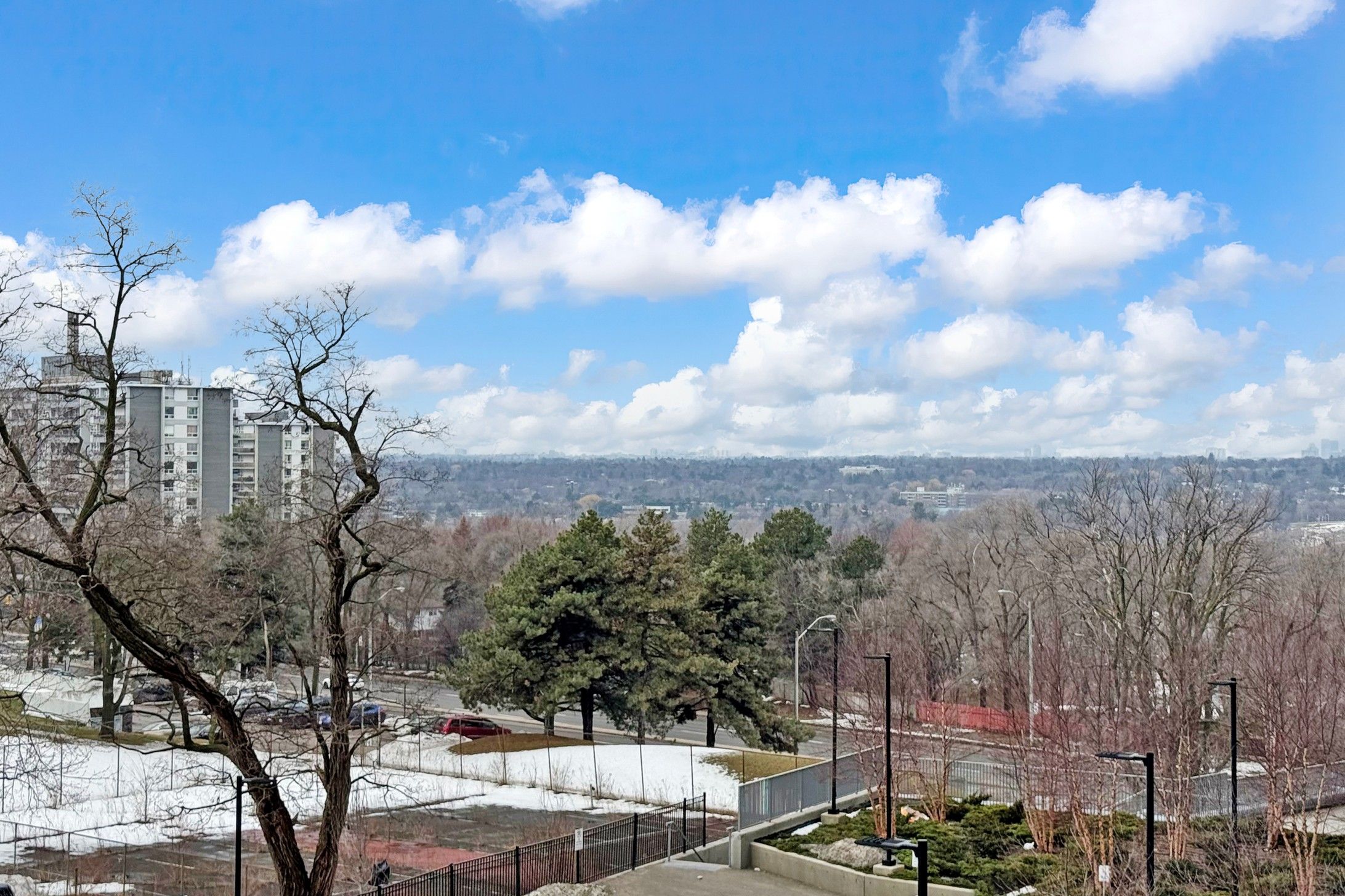 Luxurious Condo in Prime North York Location! Spacious 619 Square Feet, featuring 9-foot ceilings and a bright open-concept layout. The modern kitchen boasts quartz countertops, ceramic backsplash and built-in appliances. Floor-to-ceiling windows fill the space with natural light, complemented by sleek laminate flooring throughout. This functional 1+1 bedroom, 2 full-bathroom unit offers exceptional versatility, with a large den featuring sliding doors that can be used as a private second bedroom or a comfortable home office. Enjoy city views from its large balcony. Unbeatable location! Just minutes to Highways 401/404, steps to Don Mills Subway, TTC, Fairview Mall, supermarkets, schools, community and medical centres, parks and libraries. Building amenities include a gym, indoor pool, party/meeting room, concierge and 24-hour security, ect. A must-see gem-don't miss out!