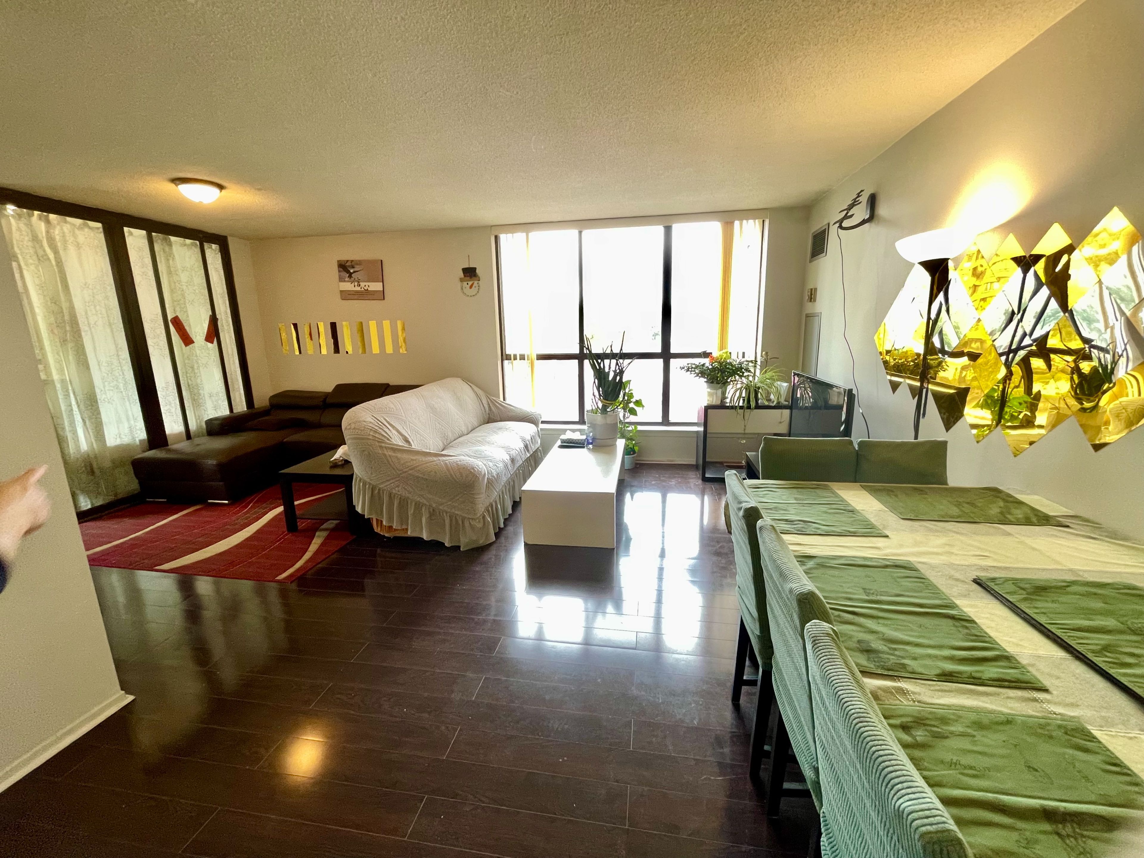 Bright and spacious Tridel-built luxury corner suite featuring 2 bedrooms plus a large solarium that can easily serve as a 3rd bedroom or home office. Functional split layout with laminate flooring throughout and windows on two sides offering plenty of natural light. Eat-in kitchen with a window, two bathrooms, and generous living space ideal for families or professionals. One Parking Space Including. Enjoy resort-style amenities including 24-hour security, indoor & outdoor pools, whirlpool, sauna, tennis, squash, racquet courts, table tennis, billiards and more! Steps to shopping, T&T Supermarket, Foody Mart, parks, schools, library, TTC and all conveniences. Fully furnished with quality furniture and move-in ready!