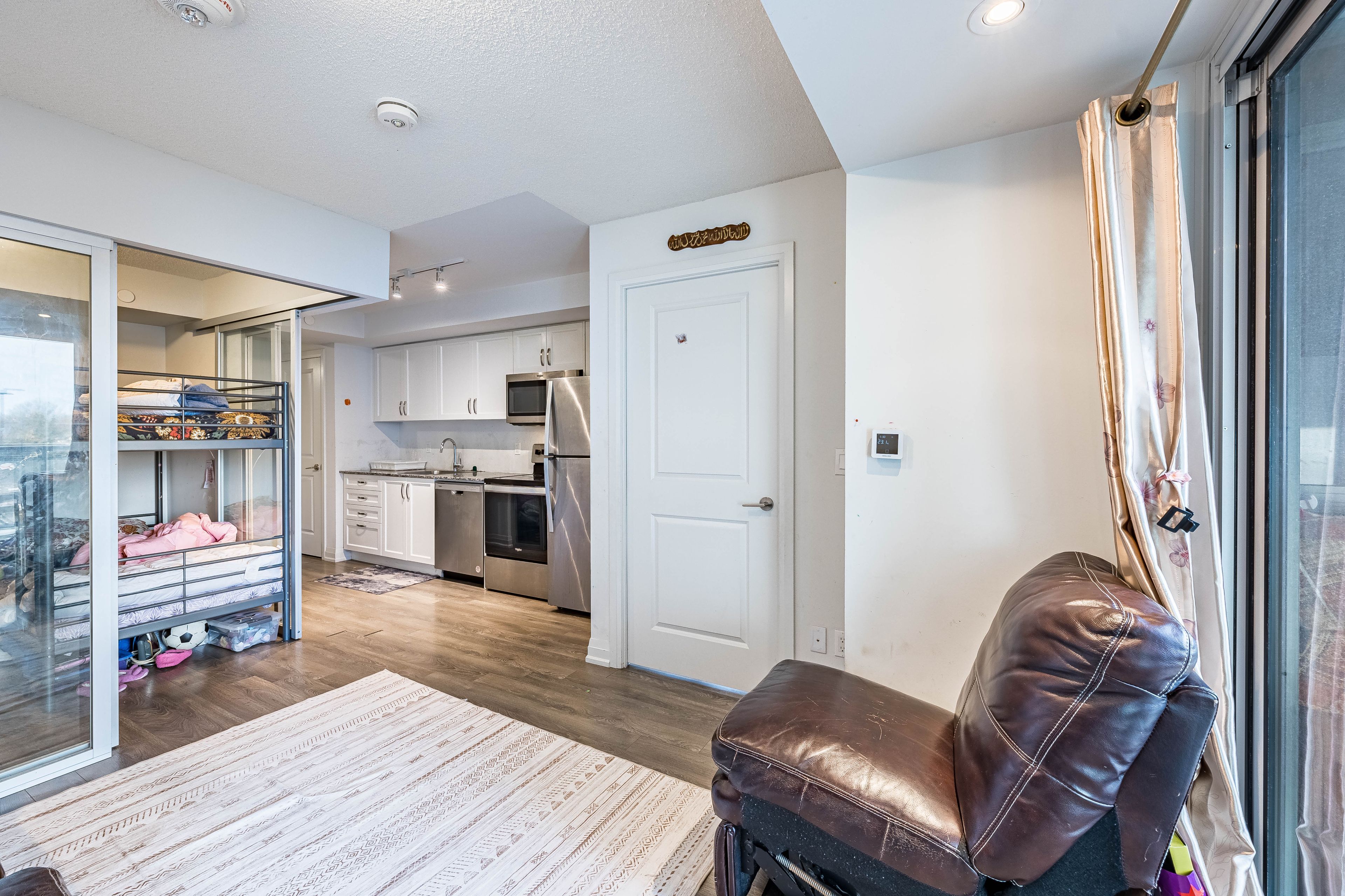 Step into an elegant condo designed for comfort and style, featuring two generous bedrooms, two full bathrooms, and a versatile den that works perfectly as a home office or dining area. The primary bedroom includes its own ensuite, while expansive windows fill the home with natural light and offer stunning open views. The suite showcases contemporary finishes throughout, including laminate flooring, sleek countertops with a modern backsplash and stainless steel appliances. Enjoy your own private balcony and exclusive outdoor space. Added conveniences include in-suite laundry, one owned parking space and one storage locker. Ideally situated in one of Toronto's most dynamic communities, the location offers easy access to public transit, schools, parks, Panchvati Supermarket, Al-Jannah Mosque, dining options, shopping, recreation centers, grocery stores, and quick access to Highway 401. This Condo offers resort-style amenities with a Miami-inspired theme, featuring a rooftop pool, sundeck, BBQ areas, and outdoor fireplace, plus indoor features like a fitness center, yoga studio, party room, billiards lounge with screens, private dining, and a theatre room, plus a winter skating rink and guest suites, all centered around a grand lobby with a concierge. This is a fantastic opportunity to enjoy modern city living in a home that truly has it all-definitely worth seeing.