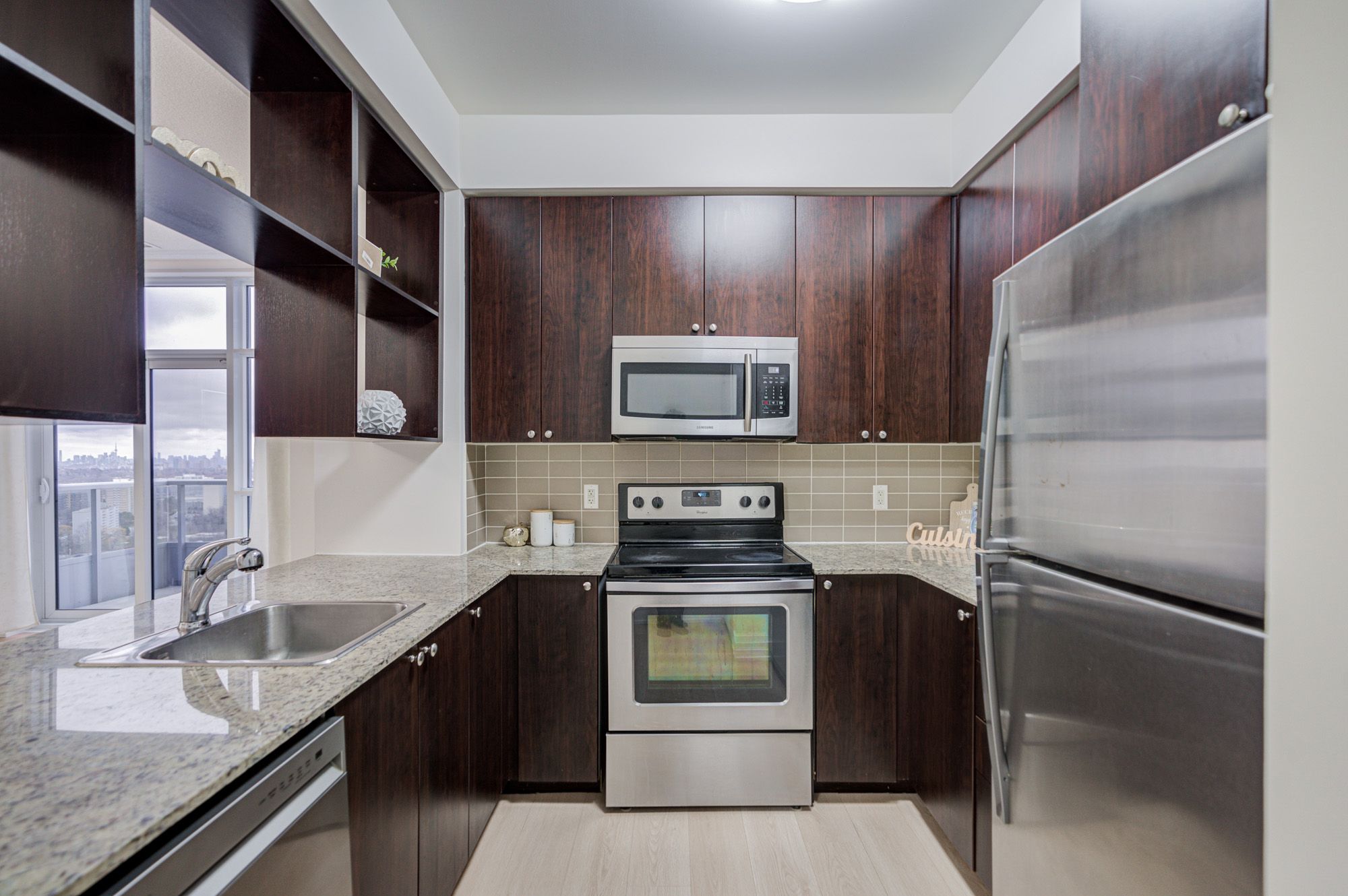 *Ideal For First-Time Buyers, Professionals Or Investors. Prestigious Metrogate Condo By Tridel * Award Winning Building * Penthouse With Incredible South West Unobstructed Downtown View * Filled With Sunlight * Best Corner Unit With 2 Bedrooms + 2 Full Bathrooms * 9' Ceiling * Great Layout * Luxurious Upgraded Brand New 72 Hours Water Resistant Laminate Floor Throughout* Floor-To-Ceiling Windows * Modern Kitchen Featuring Granite Counters & Stainless Steel Appliances * Washer & Dryer (April 2022) & Dishwasher (Jan. 2025) *Luxurious Light Fixtures. *Amazing Condo Amenities: Fitness Centre, Party Room, Visitors Parking, Sauna, Guest Suites, Outdoor BBQ Terrace, Community Park & 24 Hrs Concierge. Conveniently Located Near Highway 401, Grocery Stores, Shopping Centres, Go Train, Public Transit and Restaurants.