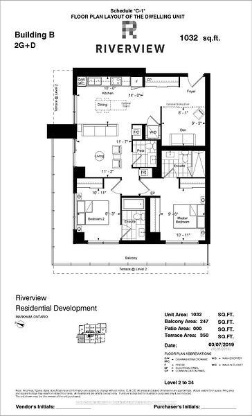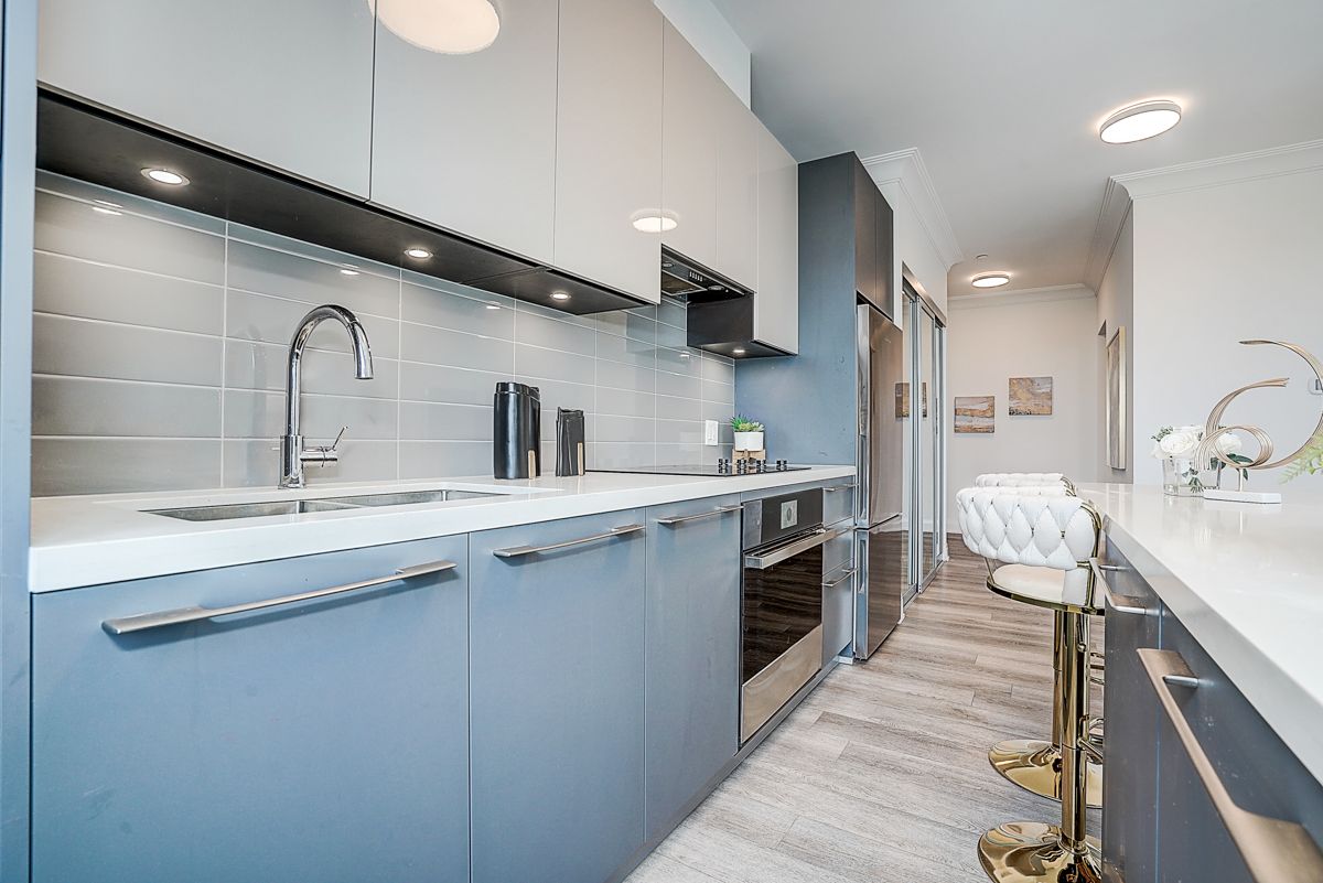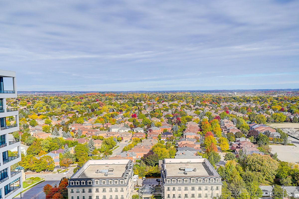 Welcome to Times Group luxury living situated in a highly sought-after neighbourhood in Unionville. This beautiful two bedroom plus den corner unit feature 9 foot ceilings with floor to ceiling windows, breathtaking panoramic views from the north, east and the west, functional split- bedroom layout provides privacy and each have their own ensuites. Bright open concept, luxury finishes and design including crown molding, roller shades, under cabinet lights, plumbing fixtures, stone countertops and an oversized island, high end built-in stainless steel appliances and ample storage space. The bonus den/study room with access to the second balcony overlooks the east view, ideal for guest suite or home office. Riverview Condo Features a Secure Smart System, Automated Parcel Pickup, 24/7 Concierge, a 2-Storey Pavilion, a Fully Equipped Gym, Indoor pool, sauna, yoga room, Business Centre, Library, BBQ Rooftop Terrace, an Outdoor Park, and ample visitors parking available outdoor and underground. Low Condo Fee Includes Heat, Air Conditioning, Internet (approx. 3 years ), One Locker, and Parking included. Within the Highly Desirable Unionville High School and Bill Crothers Secondary Boundary, York University, Close to Neighborhood Amenities Such as Whole Foods, LCBO, Downtown Markham, and Main Street Shopping, Restaurants, Cinema, Toogood Pond, Go Station, Highway 404, and 407, public transit on Hwy 7 all within your reach. Please note property tax amount is interim for 2025.
