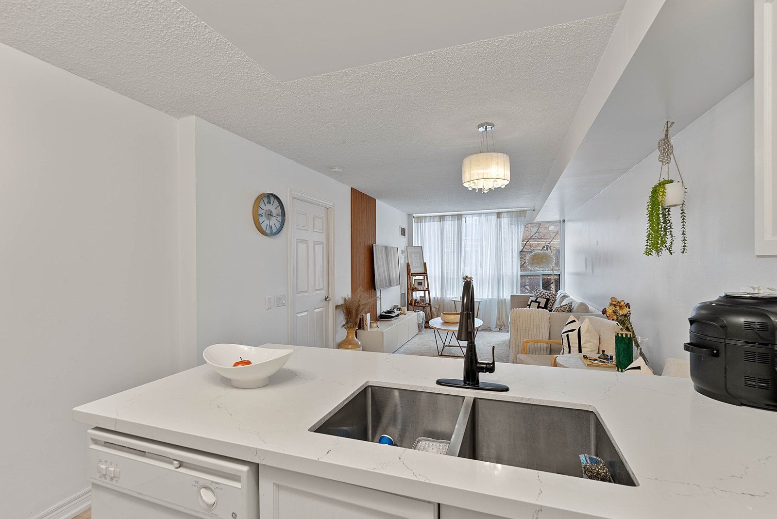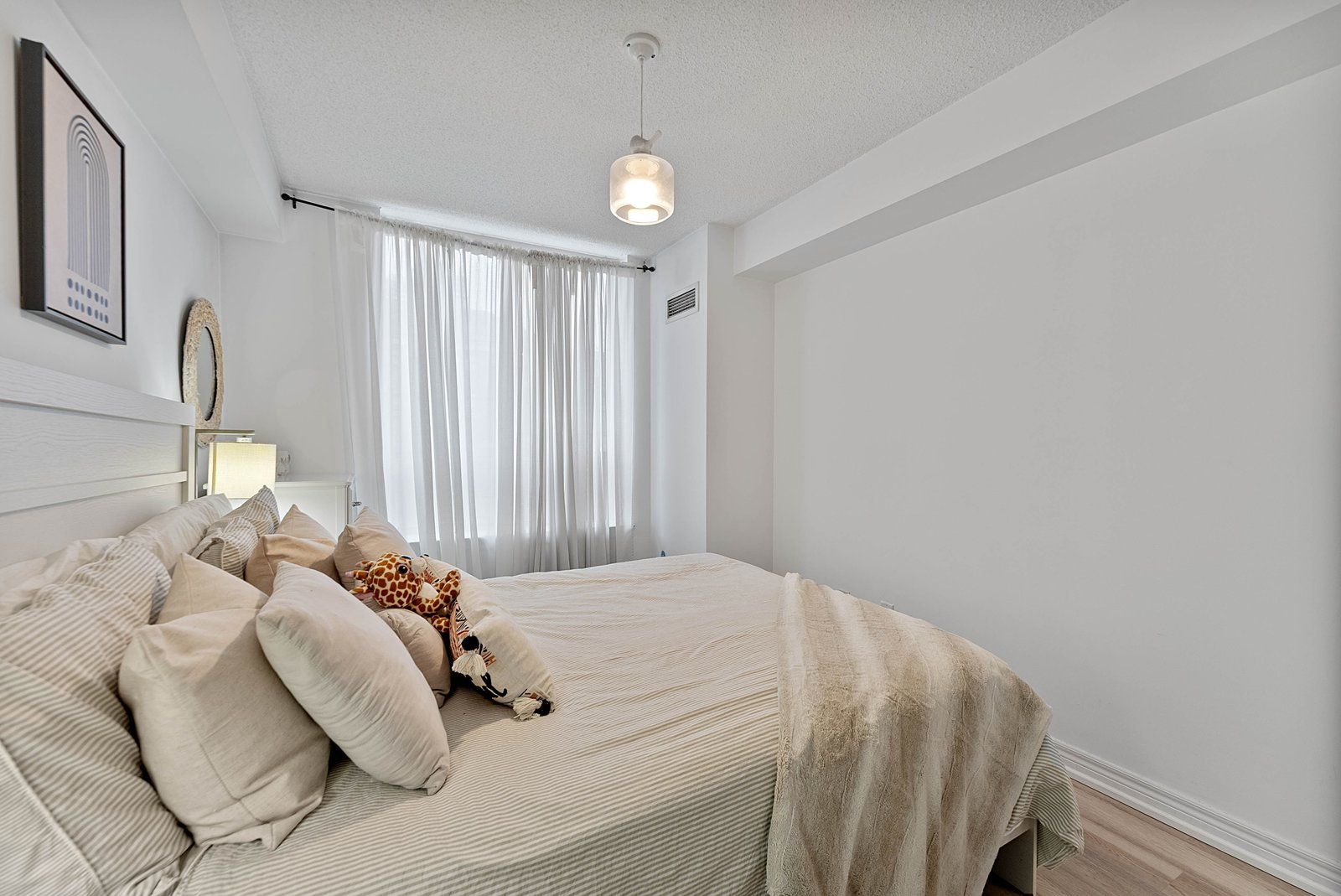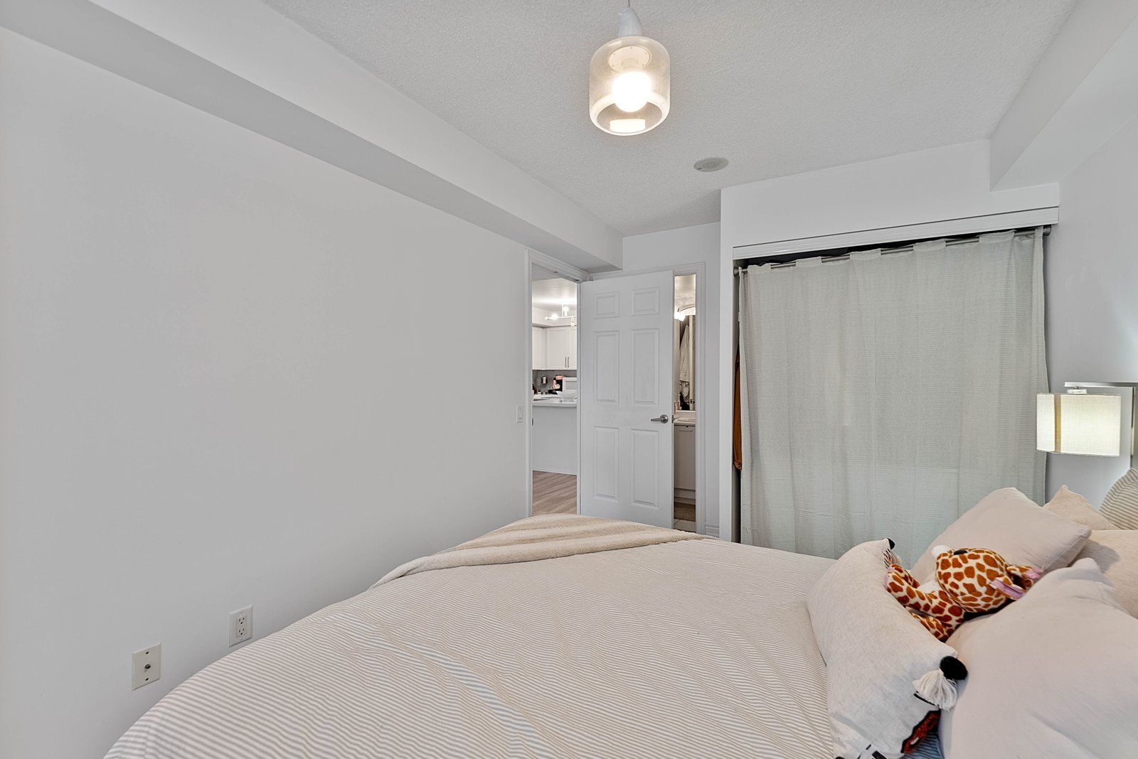 Bright & spacious 1 Bed + Den, offering approximately 740 sq ft of functional living space. This well-designed layout features two full washrooms and a separate den with ventilation, ideal for a home office, guest room, or potential second sleeping area. Enjoy a quiet treetop view that provides natural light, added privacy and plenty of visitor parking for your guests. Maintenance fee that includes all utilities - heat, hydro, water, offering excellent value and predictable monthly expenses. Conveniently situated steps to shops, restaurants, parks, transit, and everyday amenities, with easy access to major highways and surrounding areas. Ideal for first-time buyers, downsizers, or investors seeking space, convenience, and exceptional value in a prime location.