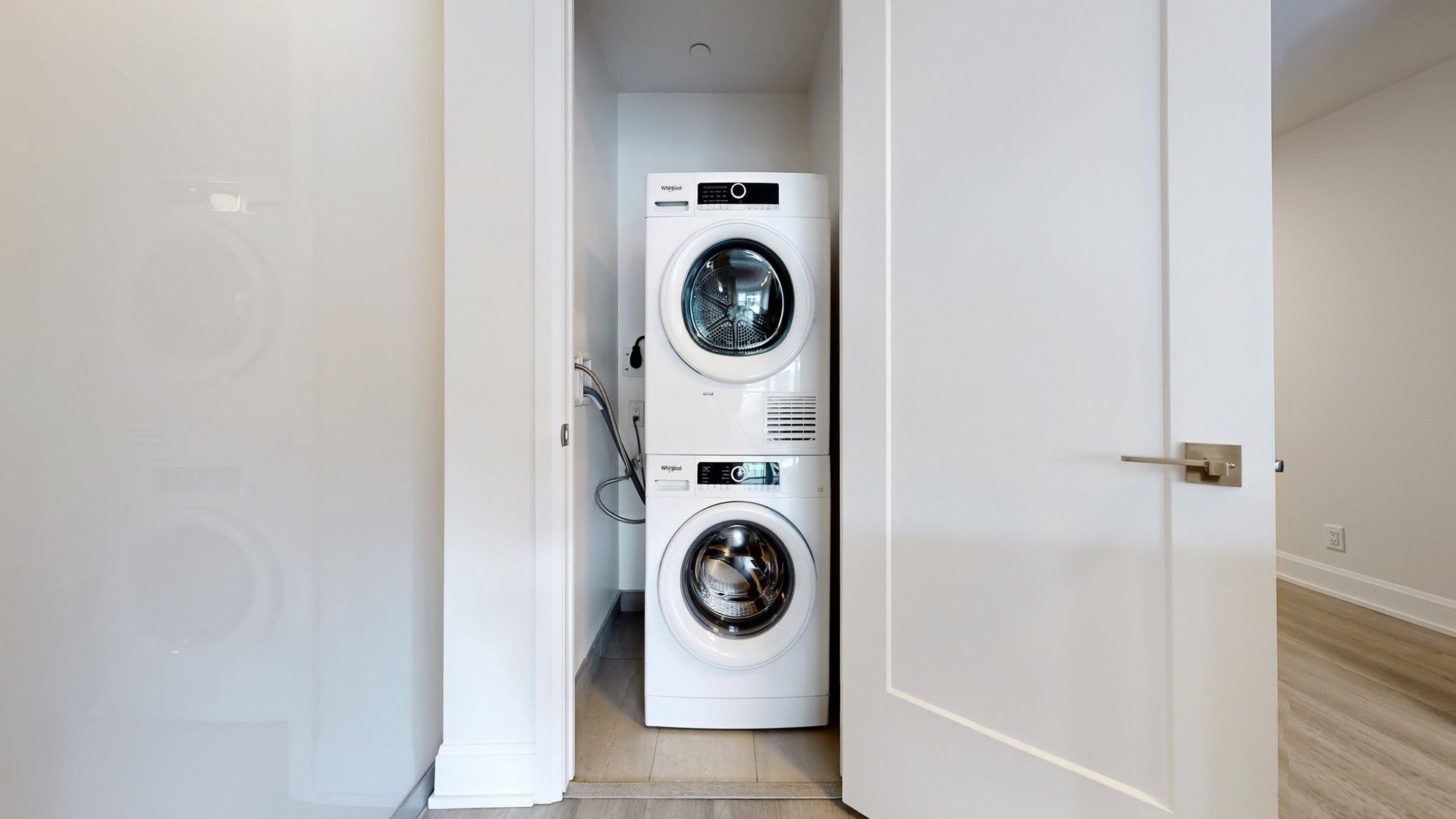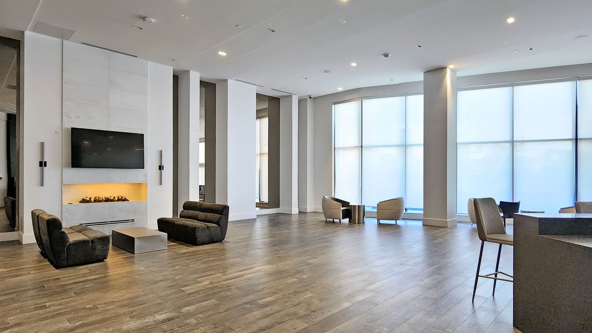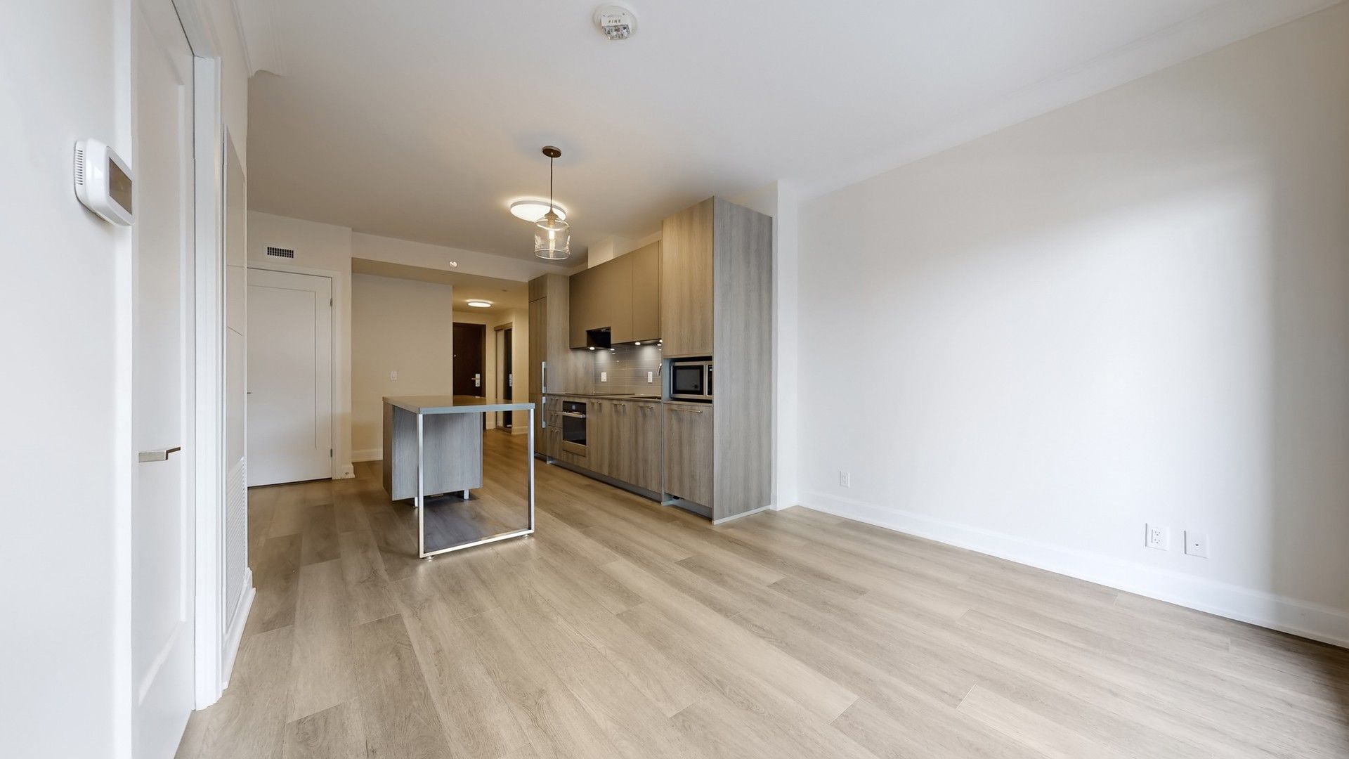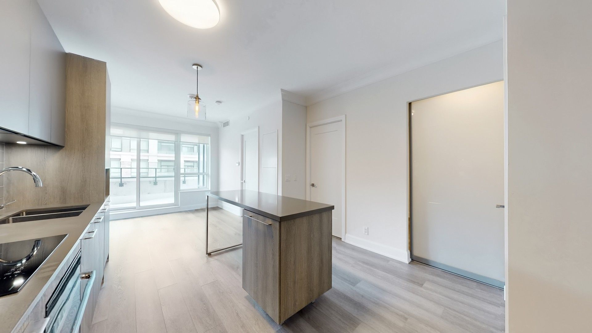 Rare opportunity to own a beautifully upgraded 698 sq ft 1+1den suite with 9 ft ceilings and a highly sought-after functional layout located in the heart of Downtown Markham. The enclosed den with sliding door can easily serve as a second bedroom or private home office, offering exceptional flexibility. Enjoy an impressive 175 sq ft private terrace, a rare outdoor space perfect for summer entertaining and relaxing with friends. Featuring upgraded engineered vinyl flooring, elegant crown moulding, smooth ceilings, and upgraded 7' interior doors. Modern chef-inspired kitchen with European-style cabinetry with extended uppers, soft-close cabinets and drawers, engineered quartz countertops, and an upgraded island with engineered quartz countertop, complemented by under-cabinet lighting and stainless steel built-in appliances. Porcelain tile in bathroom and laundry area, plus Whirlpool washer & dryer and window coverings included. Low maintenance fees include heat, A/C, and Rogers internet. Residents enjoy an impressive collection of resort-inspired amenities, including 24/7 concierge, smart entry system, automated parcel lockers, a two-storey amenity pavilion, rooftop terrace, fully equipped fitness centre, indoor pool, and more. Steps to Whole Foods, LCBO, VIP Cineplex, GoodLife Fitness, York University Markham Campus, and GO Transit. Convenient access to Hwy 404 and charming Historic Main Street Unionville. Situated within the highly sought-after Unionville High School district. An exceptional opportunity for both end-users and investors.