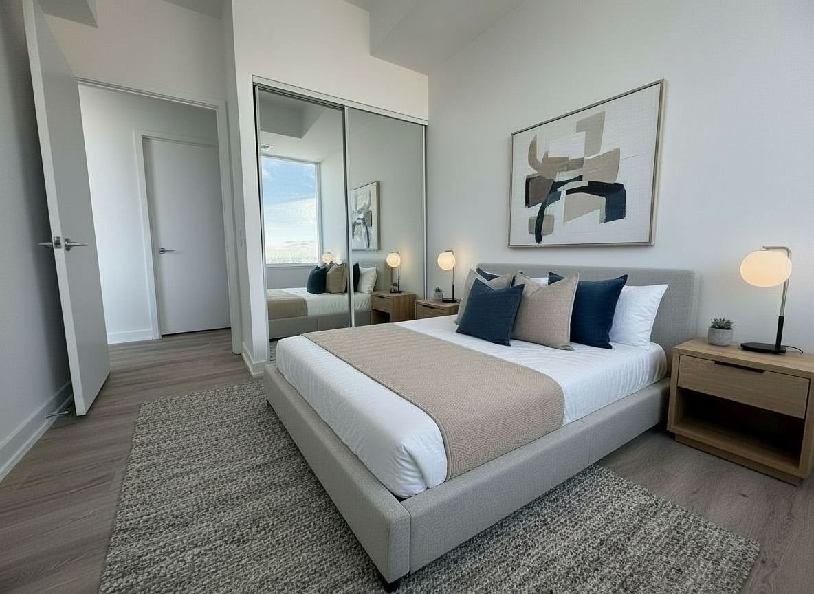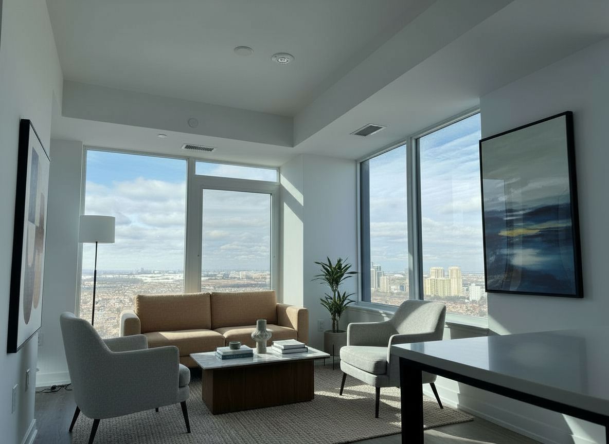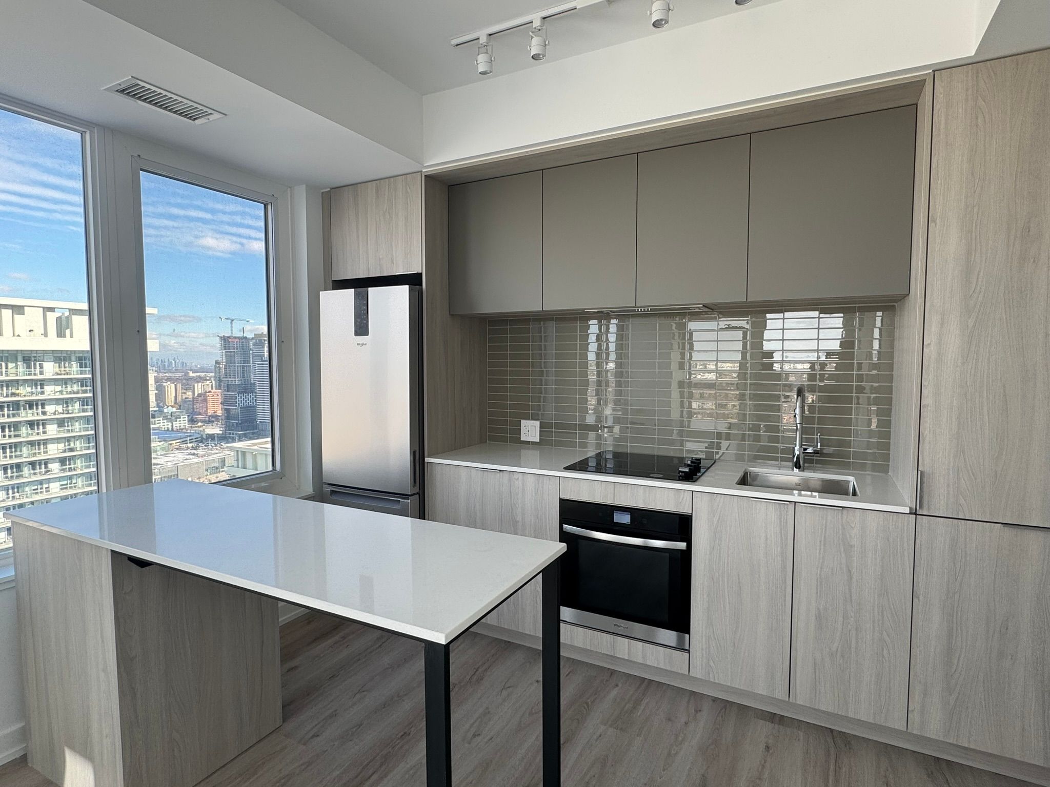 Welcome to this brand-new, sun-filled 2-bedroom, 2-bath corner suite on the 31th floor at the luxurious Daniels development in the heart of Mississauga's City Centre. Prepare to say wow the moment you enter the unit. This thoughtfully designed split-bedroom layout provides excellent privacy and comfort, complemented by high-end finishes throughout. The bright open-concept living and dining area features a walkout to a spacious balcony with unobstructed city skyline views and abundant natural light. The modern kitchen is equipped with quartz countertops, a centre island, and built-in appliances-perfect for everyday living and entertaining. Enjoy resort-style living with 5-star amenities, including a fully equipped fitness centre, outdoor terrace, full basketball court, rock climbing wall, pet spa, sauna, private meeting rooms, children's playroom, and 24-hour concierge. Ideally located in the vibrant Square One District, you're just steps from Square One Shopping Centre, Sheridan College, T&T Supermarket, YMCA, dining, parks, GO Transit, MiWay, and the library, with quick access to UofT Mississauga. Pictures with furniture are virtual staged, for illustration purpose.