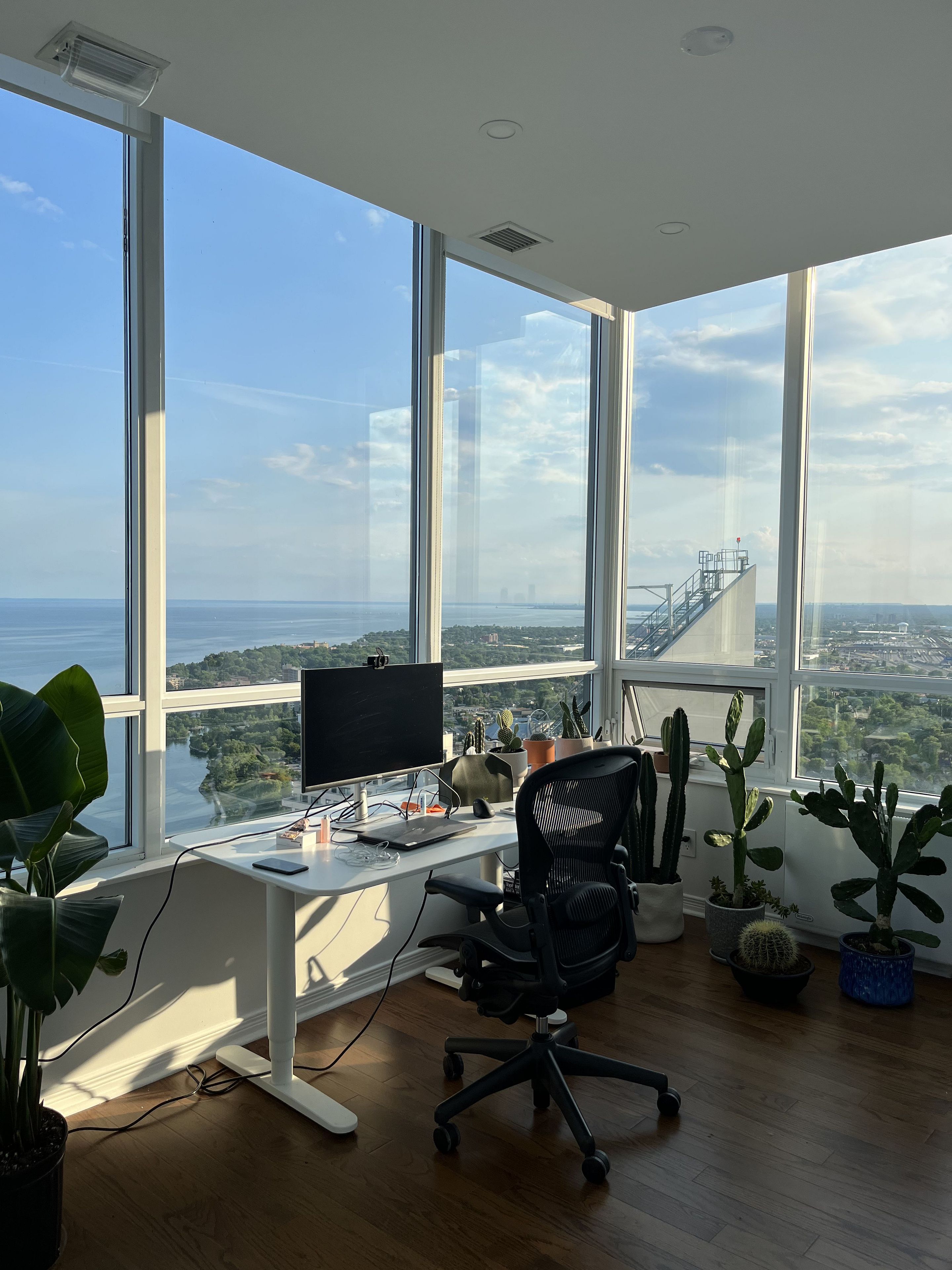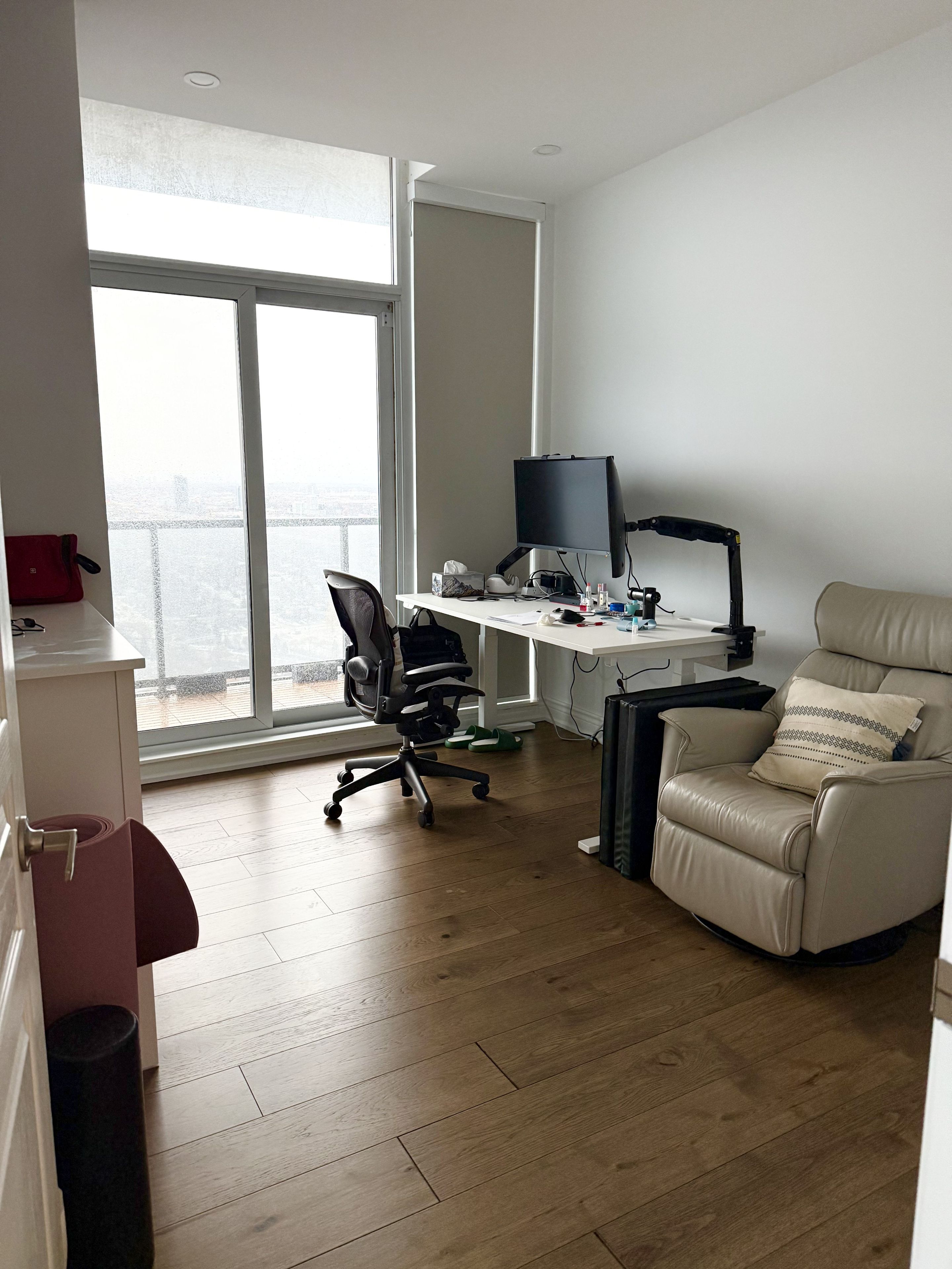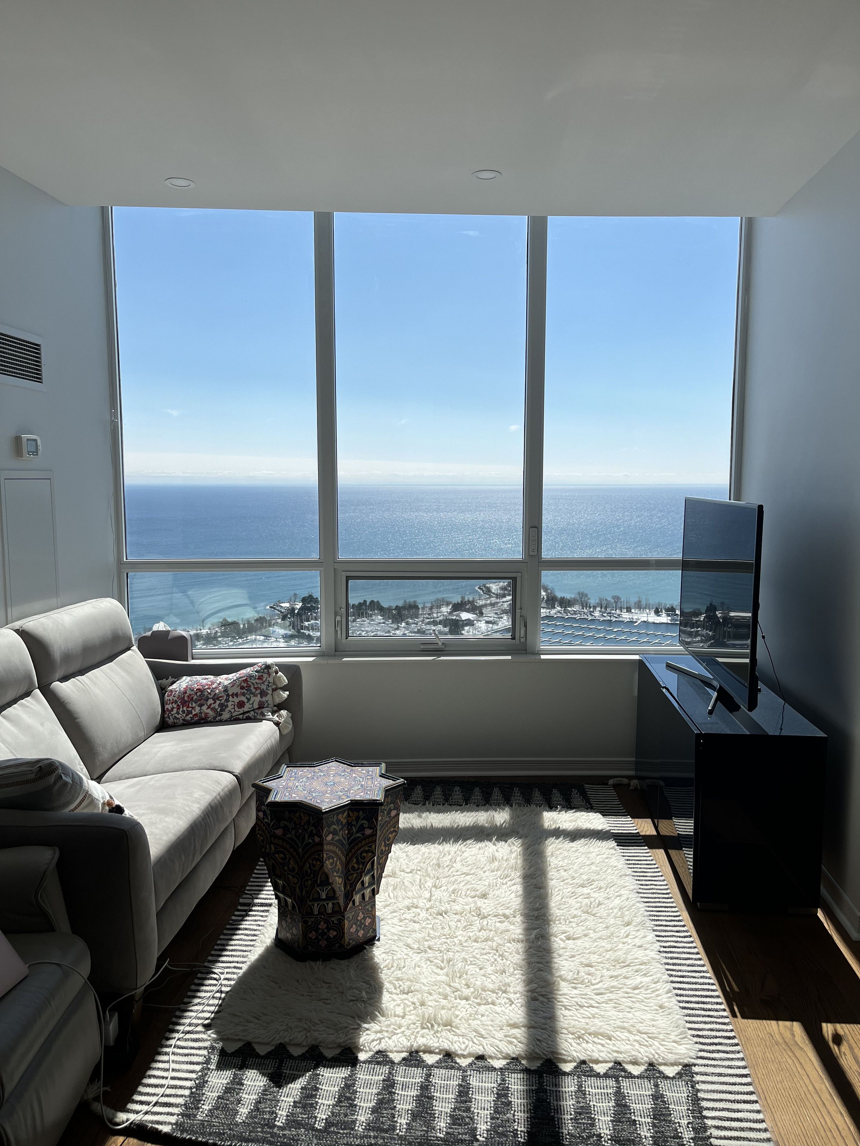 Luxury newly renovated Corner Penthouse - Stunning Lake & City Views. Breathtaking 270 unobstructed views of Lake Ontario and CN Tower. High end (Miele) appliances. Sun-filled corner unit with two large balconies offering south & west exposure. Features 9-ft ceilings, pot lights, hardwood floors, custom blackout blinds, split-bedroom layout plus large den/3rd bedroom. Primary bedroom with walk-in closet and glass-enclosed shower. Private floor with only a few units. 20min drive to downtown. Steps to transit, Humber Bay Park, waterfront trails, restaurants, Go Station, and highways. Completely move-in ready with resort-style privacy and luxury.