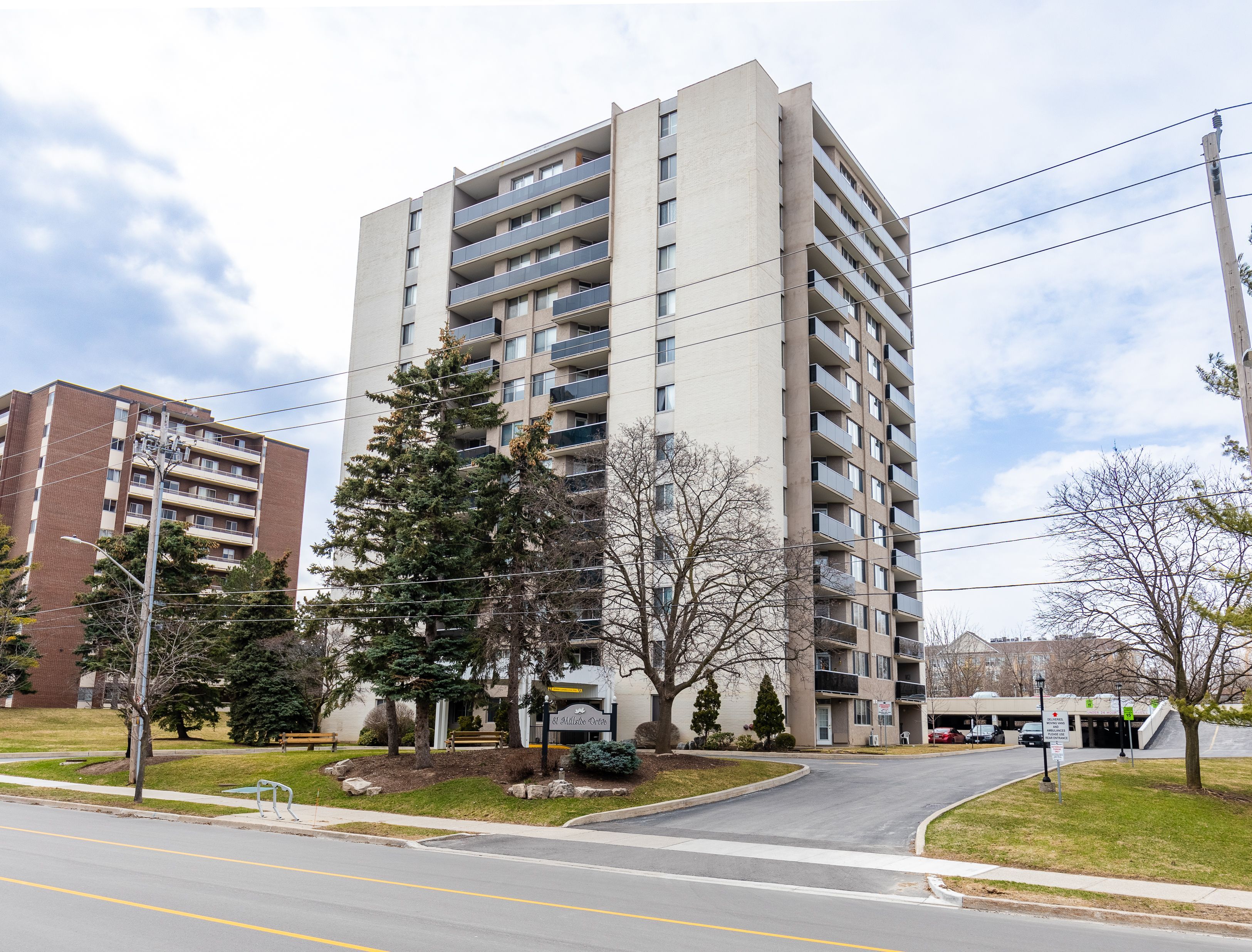 Welcome to 81 Millside Drive. This spacious and bright corner-unit condo on the 6th floor, offers over 1,090 sq. ft. of comfortable living space, ideally located just steps from Milton's vibrant downtown core and the scenic walking trails of Mill Pond. Situated on a quiet, mature street, this well-appointed 3-bedroom, 2-bathroom suite provides exceptional walkability to restaurants, shopping, street festivals, the farmers' market, and parks. The open-concept living and dining area is ideal for entertaining family and friends. The primary bedroom features a private 2-piece ensuite, while two additional generously sized bedrooms offer flexible living space. Enjoy outdoor living on the oversized balcony with stunning sunset and Escarpment views. A separate laundry room provides excellent additional storage and includes a chest freezer. The maintenance fee covers hydro, heat, water, sewage, building insurance and general maintenance. Pet-friendly building with a warm friendly community feel. Amenities include a party and games room. The unit includes one undercover parking space (exclusive use #35) and there is ample visitor and common use parking. This well-maintained building offers easy commuting with quick access to GO Transit and highways 401, 407, and QEW. Recent building upgrades include parking garage renovations (2025), generator and plumbing drain repairs (2025), and balcony railing and roof replacement (2023).