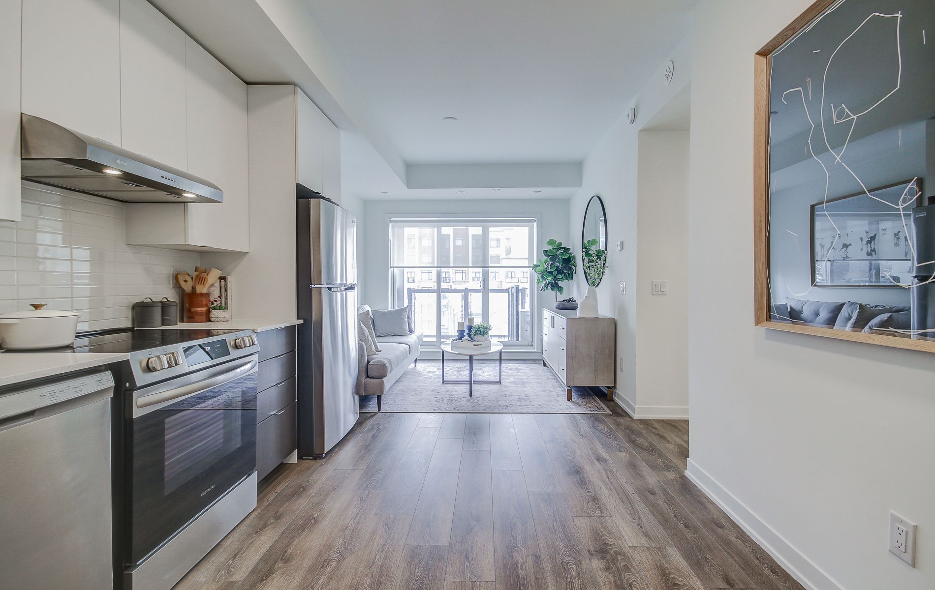 Move-In Ready, Spacious 2-Bedroom, 2-Bathroom Suite with parking the newly complete Keelesdale community Built By Daniels. Located Near Keele and Eglinton, A 6 Min Walk To The Eglinton LRT. Steps from Walking And Cycling Trails And New City Park. Dedicated 2 Storey Amenity Bldg. With Fitness Centre, Party Room, Co-Working Space, BBQ Area, Pet Wash Station And Gardening Plots. **EXTRAS** Includes 30" Stainless Steel Fridge, Stove, And Dishwasher. Stackable Washer and Dryer. 1 Parking is included.