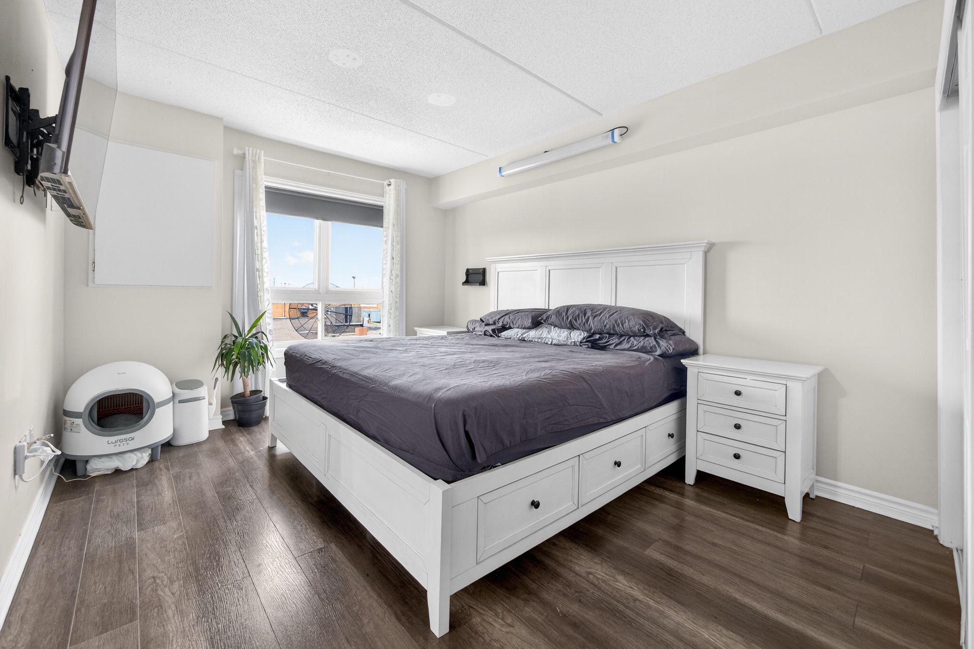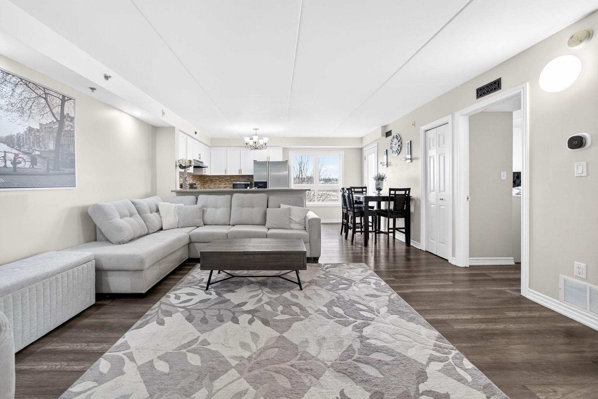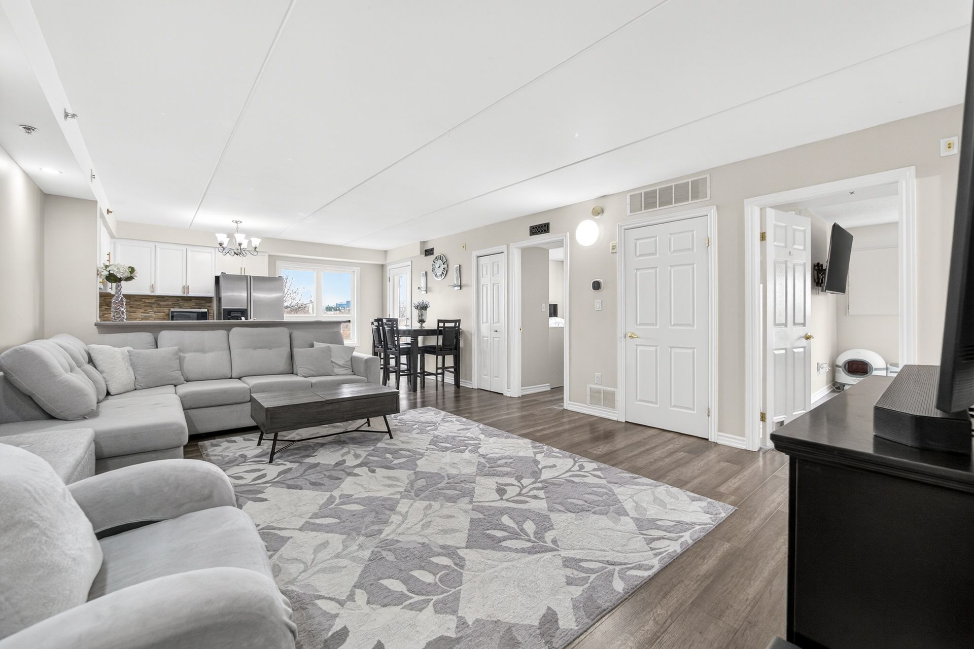 Rare Find - Sun-Drenched 2 Bed with 2 Full Baths ! Step into this meticulously maintained, one-of-a-kind suite offering Over 1000 SqFt of sophisticated carpet-free interior living space + private covered balcony. Nestled in oneof BurLington's most sought-after vibrant neighborhoods, this unit defines "open-concept" living featuring a Rare Two-Full-Bathroom configuration-perfect for guests or a roommate. Be inspired by the seamless flow, neutral designer palette, & Grand-scale windows that flood the Condo with natural light. Designed for the culinary enthusiast, the kitchen boasts Lots of Counter Space, stainless steel appliances and extensive taller cabinetry providing a wealth of storage without compromising on style and a versatile breakfast bar perfect for morning coffee or evening entertaining. Ensuite Primary Bedroom Is Spacious and Welcoming. Maximize your productivity in the oversized Second Bedroom - Be it a Guest Bedroom - A Child's room Or Make it serve as a premier executive home office, offering a private, quiet workspace without sacrificing the suite's open and airy aesthetic. Surrounded by elite dining, seamless transit, and boutique shopping, this Condo offers the pinnacle of urban living.From the vibrant energy of the street to your private sanctuary above, this is truly A Must-See Property.