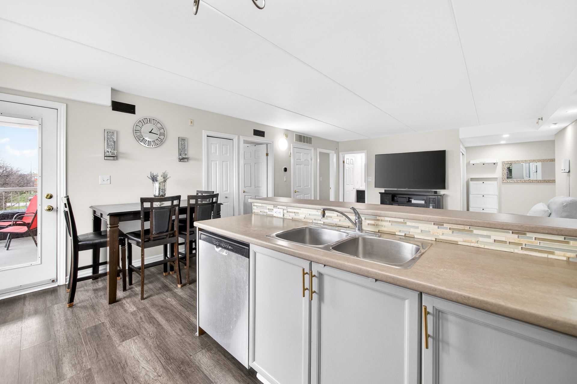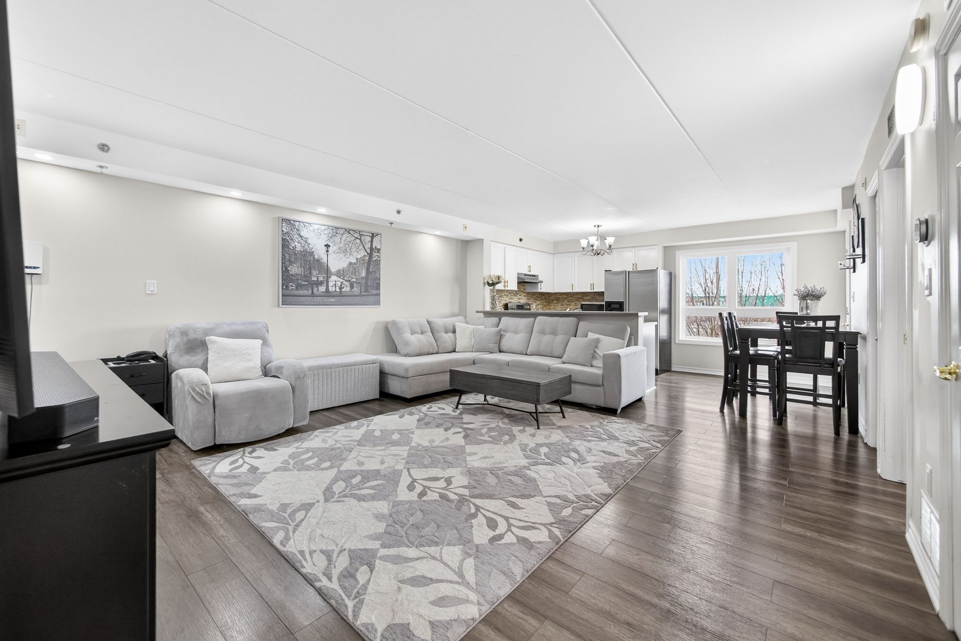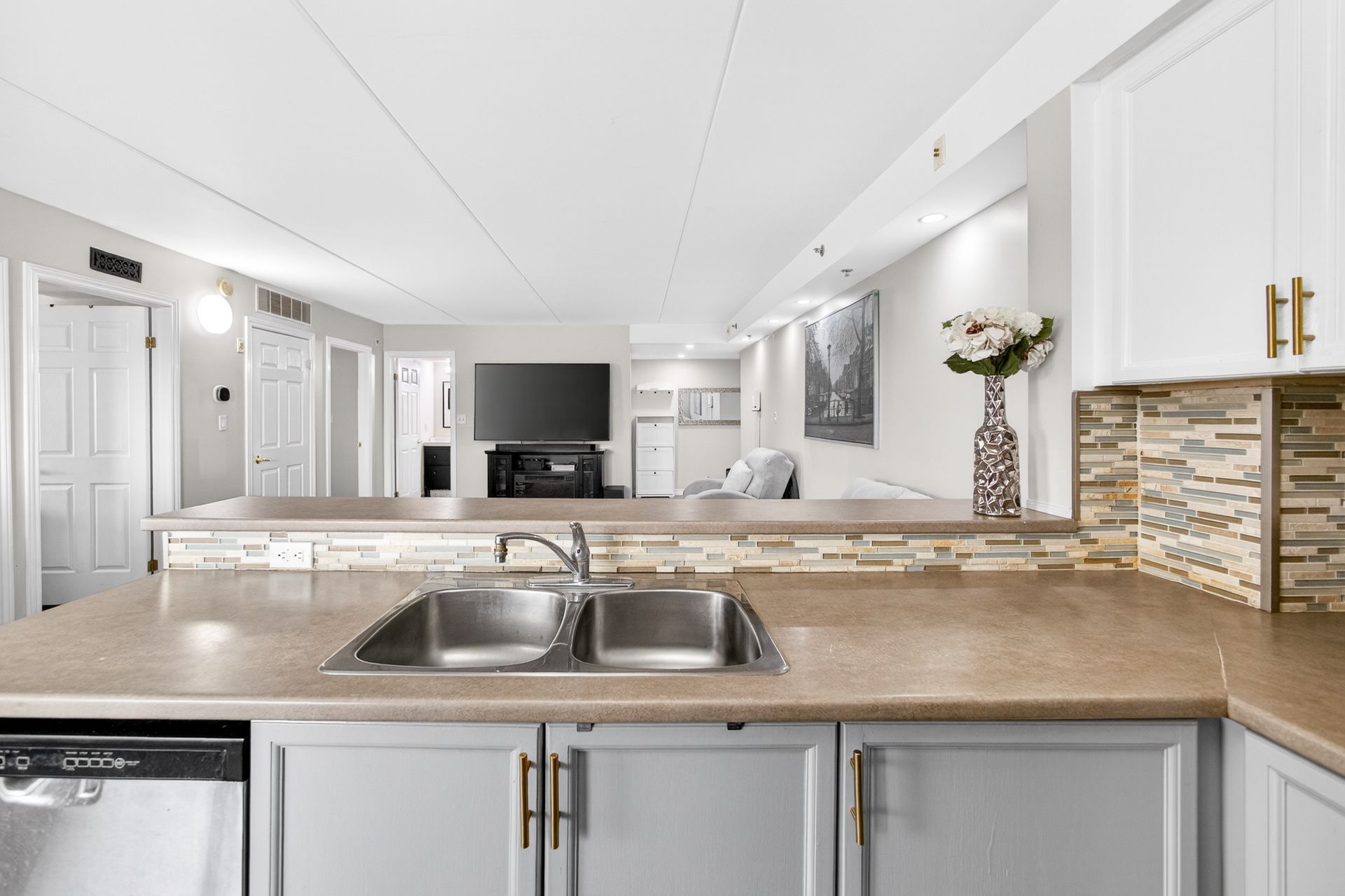 Rare Find - Sun-Drenched 2 Bed with 2 Full Baths ! Step into this meticulously maintained, one-of-a-kind suite offering Over 1000 SqFt of sophisticated carpet-free interior living space + private covered balcony. Nestled in oneof BurLington's most sought-after vibrant neighborhoods, this unit defines "open-concept" living featuring a Rare Two-Full-Bathroom configuration-perfect for guests or a roommate. Be inspired by the seamless flow, neutral designer palette, & Grand-scale windows that flood the Condo with natural light. Designed for the culinary enthusiast, the kitchen boasts Lots of Counter Space, stainless steel appliances and extensive taller cabinetry providing a wealth of storage without compromising on style and a versatile breakfast bar perfect for morning coffee or evening entertaining. Ensuite Primary Bedroom Is Spacious and Welcoming. Maximize your productivity in the oversized Second Bedroom - Be it a Guest Bedroom - A Child's room Or Make it serve as a premier executive home office, offering a private, quiet workspace without sacrificing the suite's open and airy aesthetic. Surrounded by elite dining, seamless transit, and boutique shopping, this Condo offers the pinnacle of urban living.From the vibrant energy of the street to your private sanctuary above, this is truly A Must-See Property.