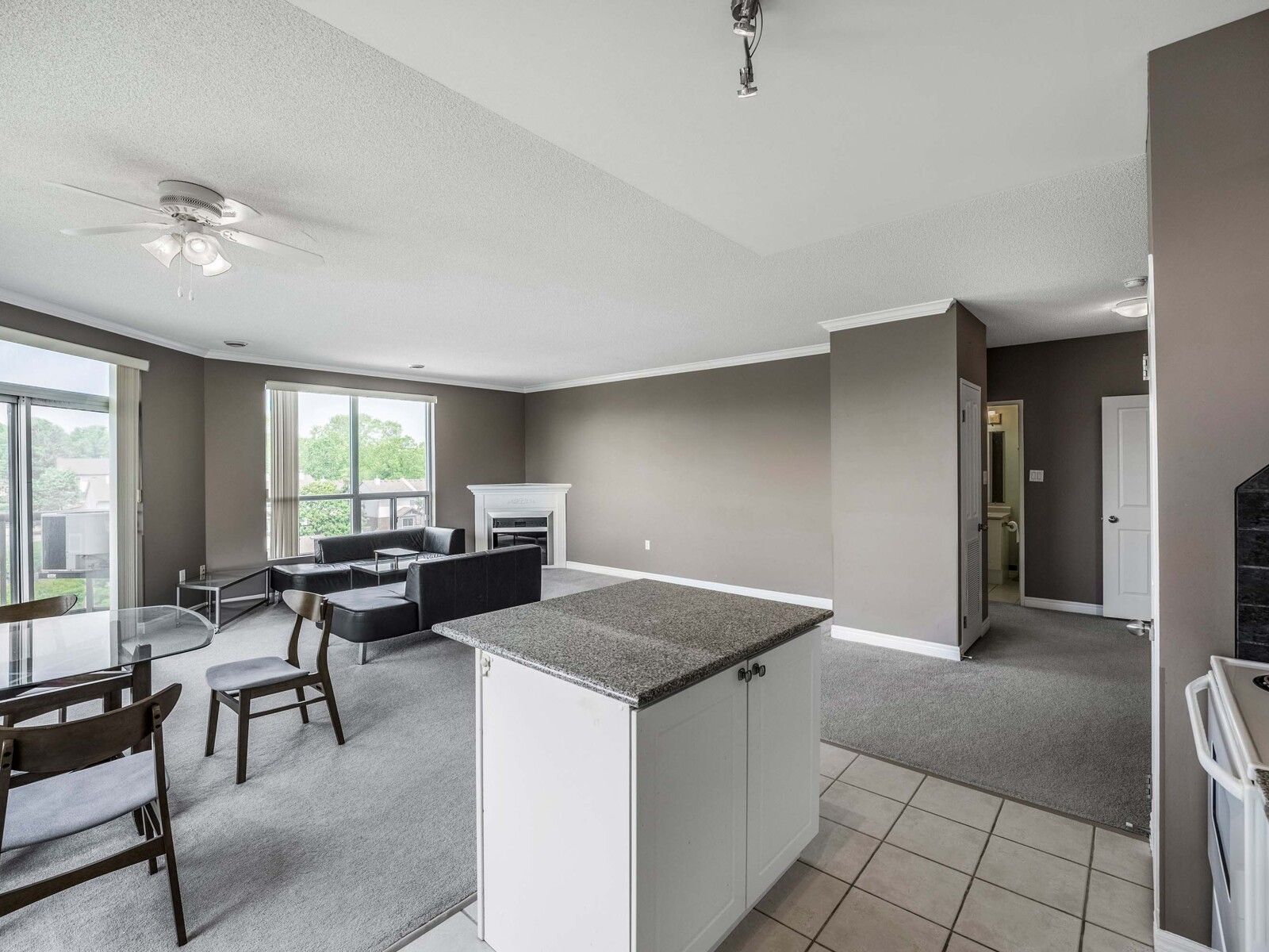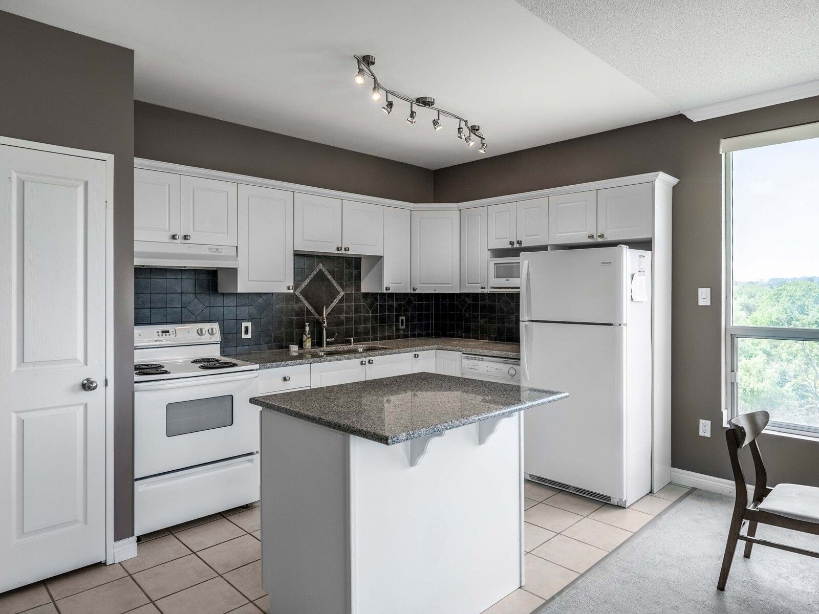 Prestigious Keats Way on the Park 2 bedroom suite offers a modern open concept floor plan with updated kitchen with ceramic backsplash, granite counters, track lighting overlooking dining area amidst the expansive panoramic views from the living room featuring a corner "RusticCrafts International" Rustic Flame Deluxe Electric Fireplace w/mantle. The master features a large window, a walk-in closet w/organizer shelving, master ensuite bathroom w/low-basefibre glass shower stall. Ceramic tiles. 2nd full bathroom adjacent to 2nd bedroom. In-suitelaundry & full balcony w/view. Just minutes walk to U of Waterloo. Available for immediate possession. Walking distance to schools, both universities, bus routes, grocery stores, parks,Uptown Waterloo and more! One underground parking included.