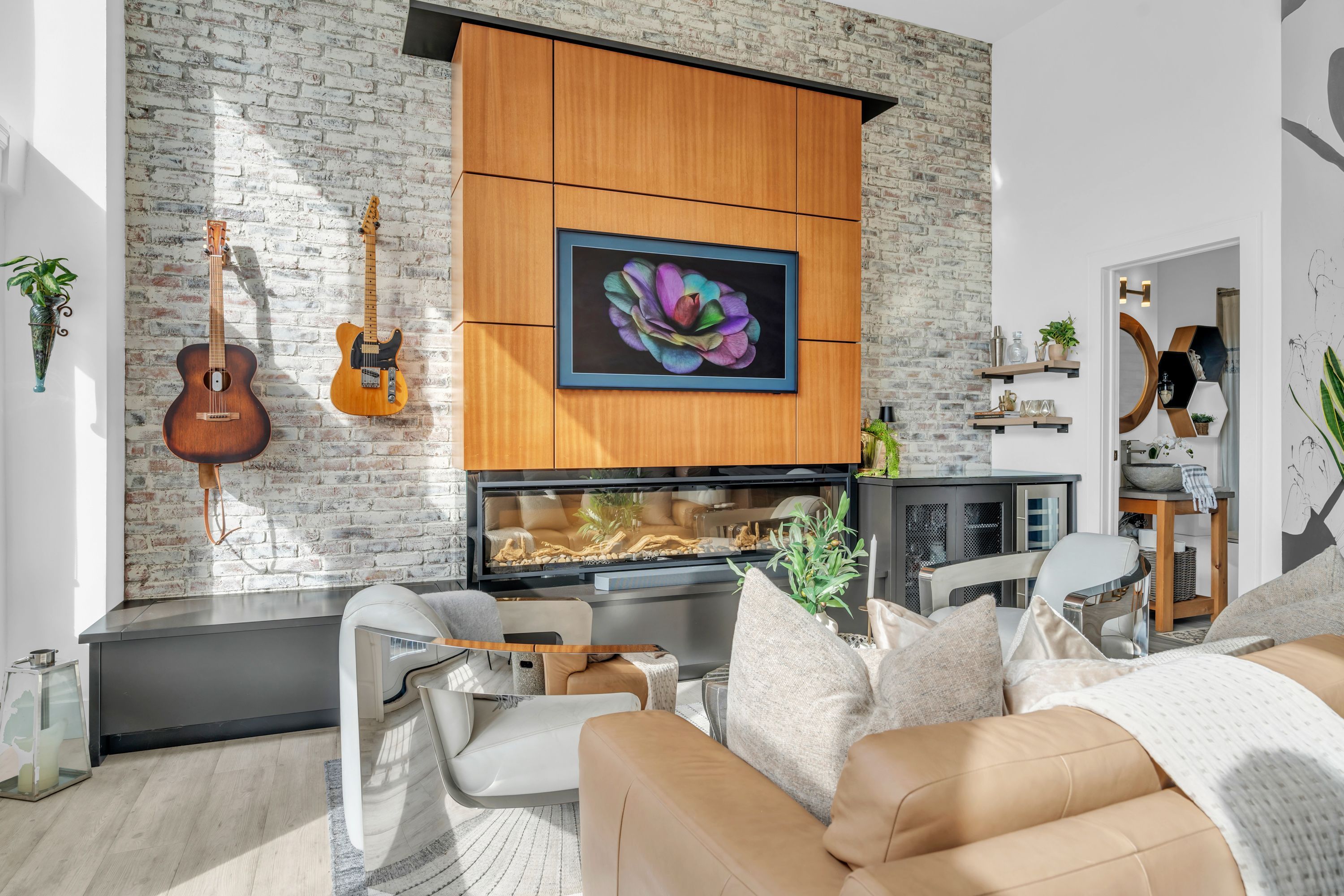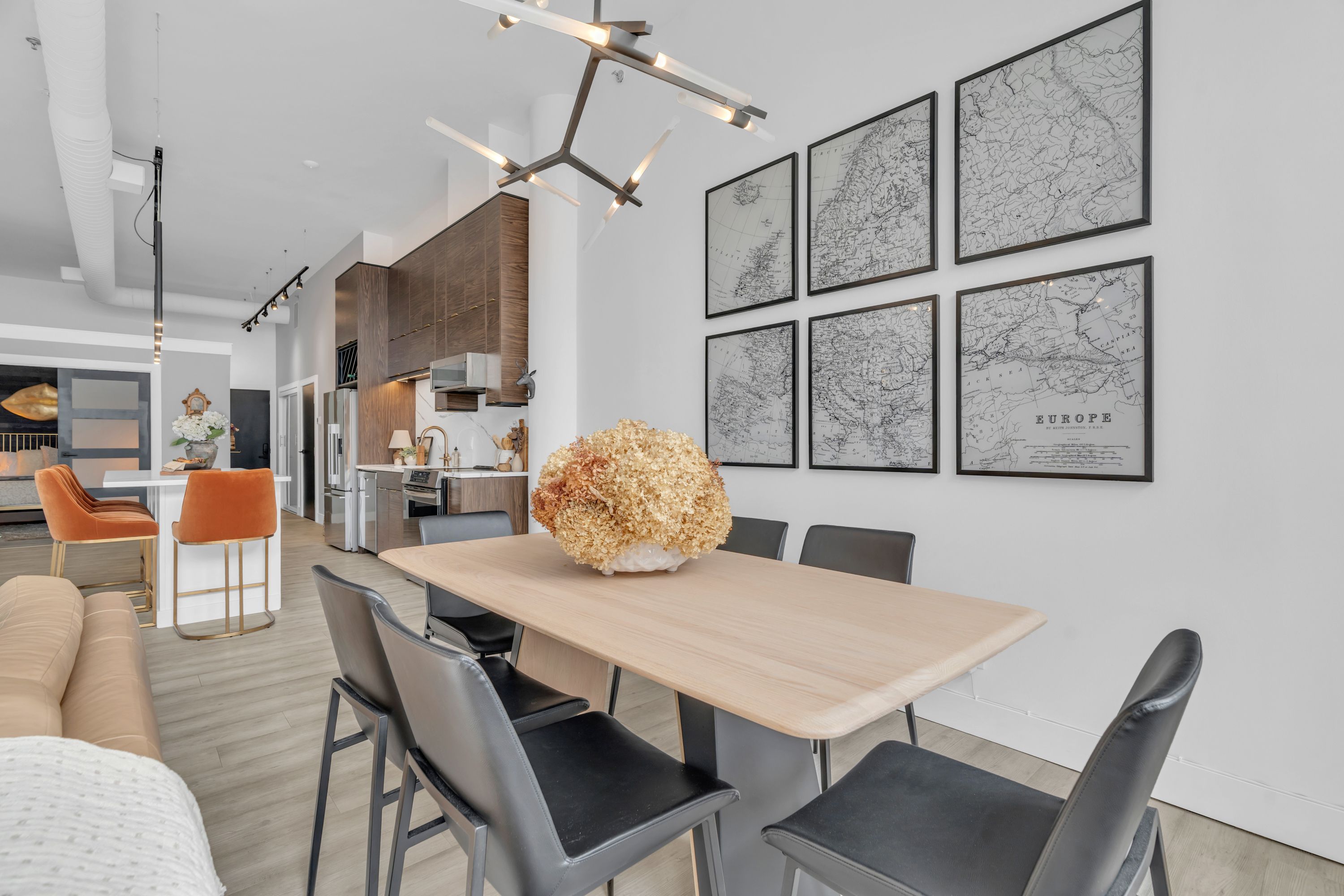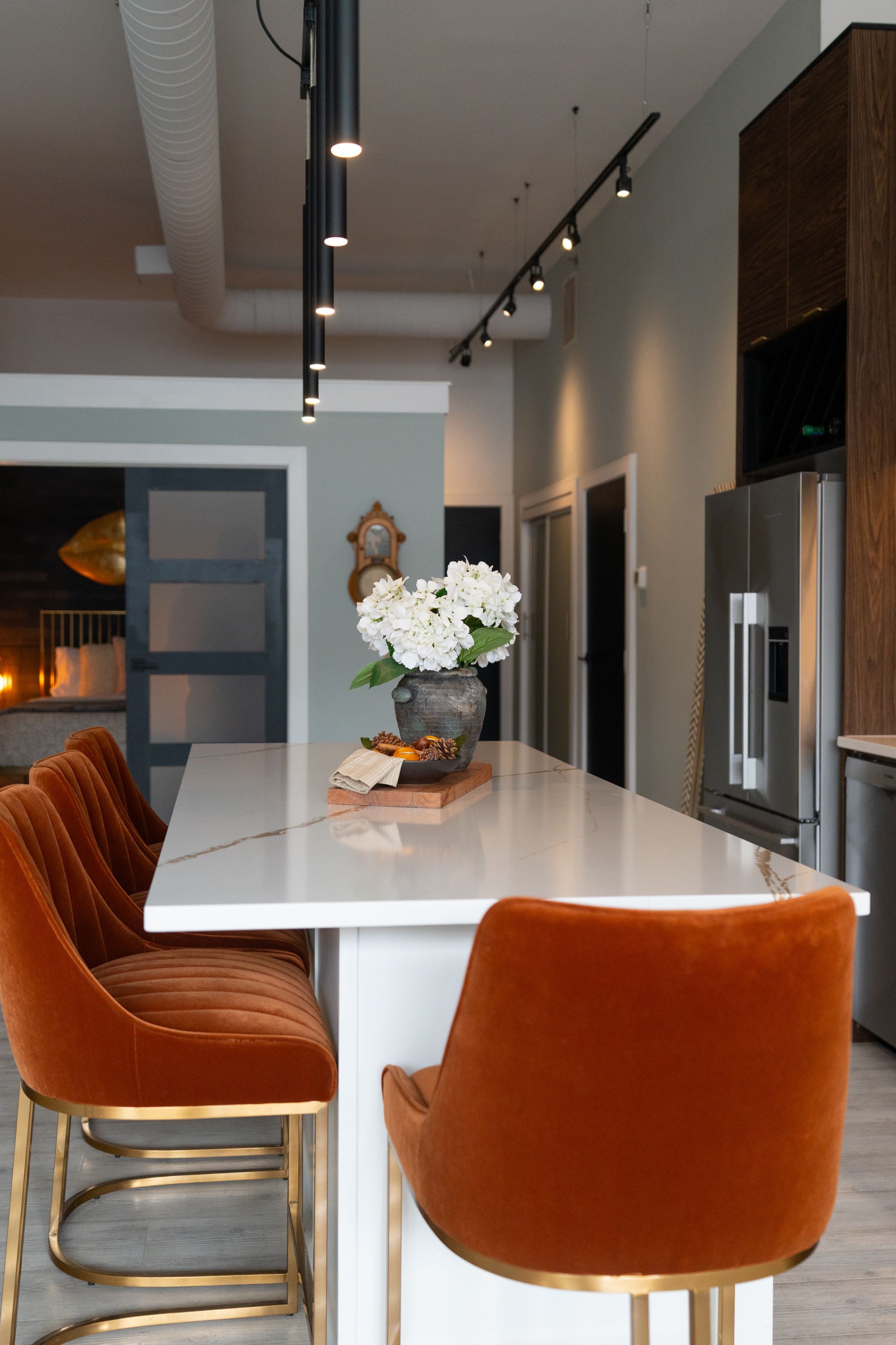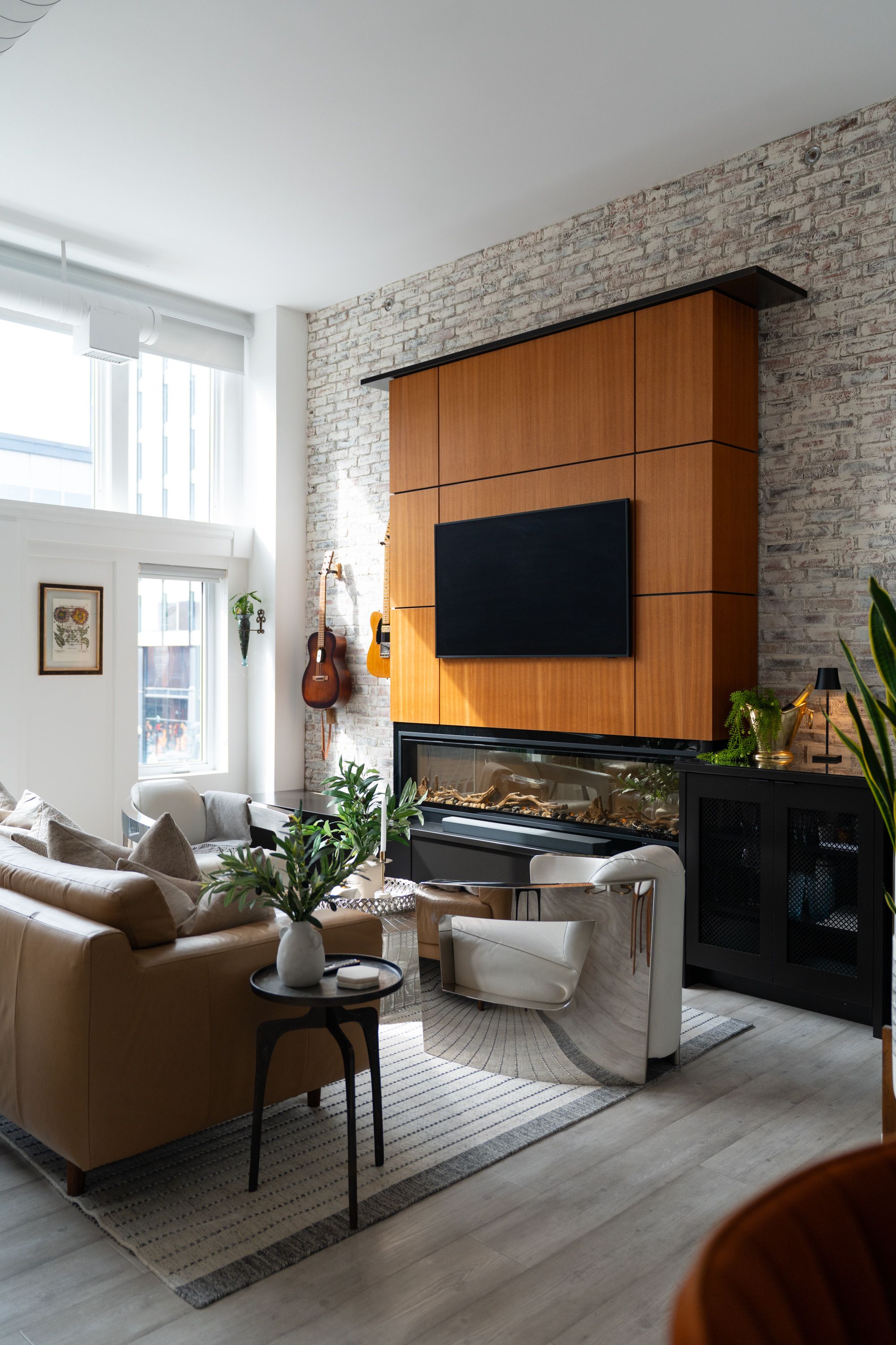 One-of-a-Kind Loft in the Heart of Downtown Kitchener. Welcome to Unit 205 at The Lofts at 276, a stunning, modern, 1-bedroom, 2-bathroom suite that seamlessly blends industrial charm with luxurious finishes. This exceptional, one-of-a-kind space, offers soaring 12-foot ceilings, floor-to-ceiling windows, and garden doors that flood the open-concept living and dining area with natural light. Every detail has been thoughtfully curated, from the wide plank vinyl flooring to the custom design elements throughout. The gourmet kitchen is a chefs dream, featuring rich dark wood cabinetry, veined quartz countertops and backsplash, an oversized island with breakfast bar, custom wine rack, statement lighting and an eye-catching feature wall with built-in buffet. The expansive living area is perfect for both entertaining and relaxing, anchored by a custom fireplace surround with integrated dry bar, wine fridge, and complemented by a warm brick accent wall that adds character and texture. Elegant garden doors open to a Juliette balcony, adding a touch of European charm. The dining space comfortably accommodates family gatherings, offering the perfect setting for special occasions.The main bathroom offers a stylish vanity with a stone vessel sink and a tub with textured tile surround. Additional features include in-suite laundry, underground parking, and an oversized storage locker located just steps from your vehicle. Retreat to the primary suite through double doors to find a wood accent wall, sliding closet barn doors, a custom closet organizer, and a private ensuite. The spa-inspired bathroom includes a walk-in shower with striking black-framed glass doors, wood-look tile, and a generous niche with accent details. Set in a beautifully converted loft building with modern lobby, this home places you in the heart of vibrant Downtown Kitchener just steps from cafés, restaurants, transit, schools, entertainment, and Victoria Park. Urban luxury and everyday convenience await.