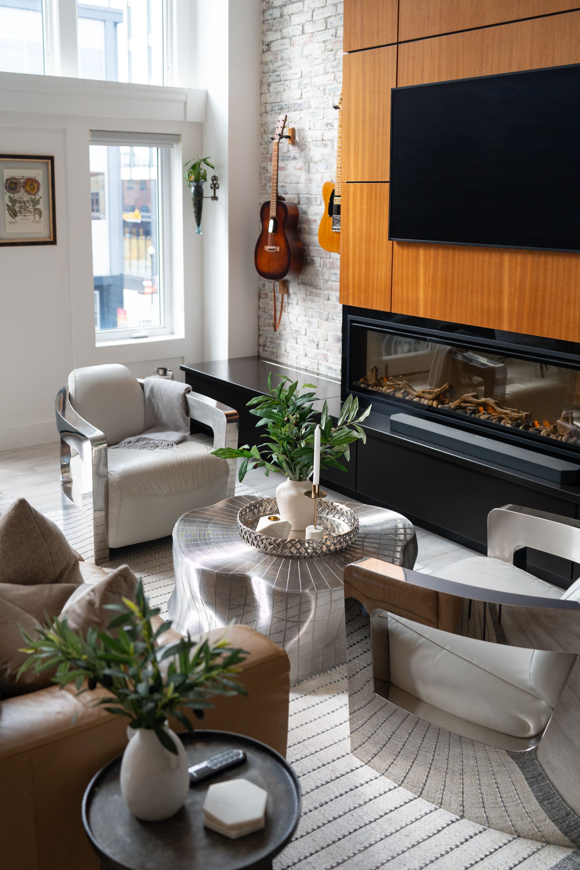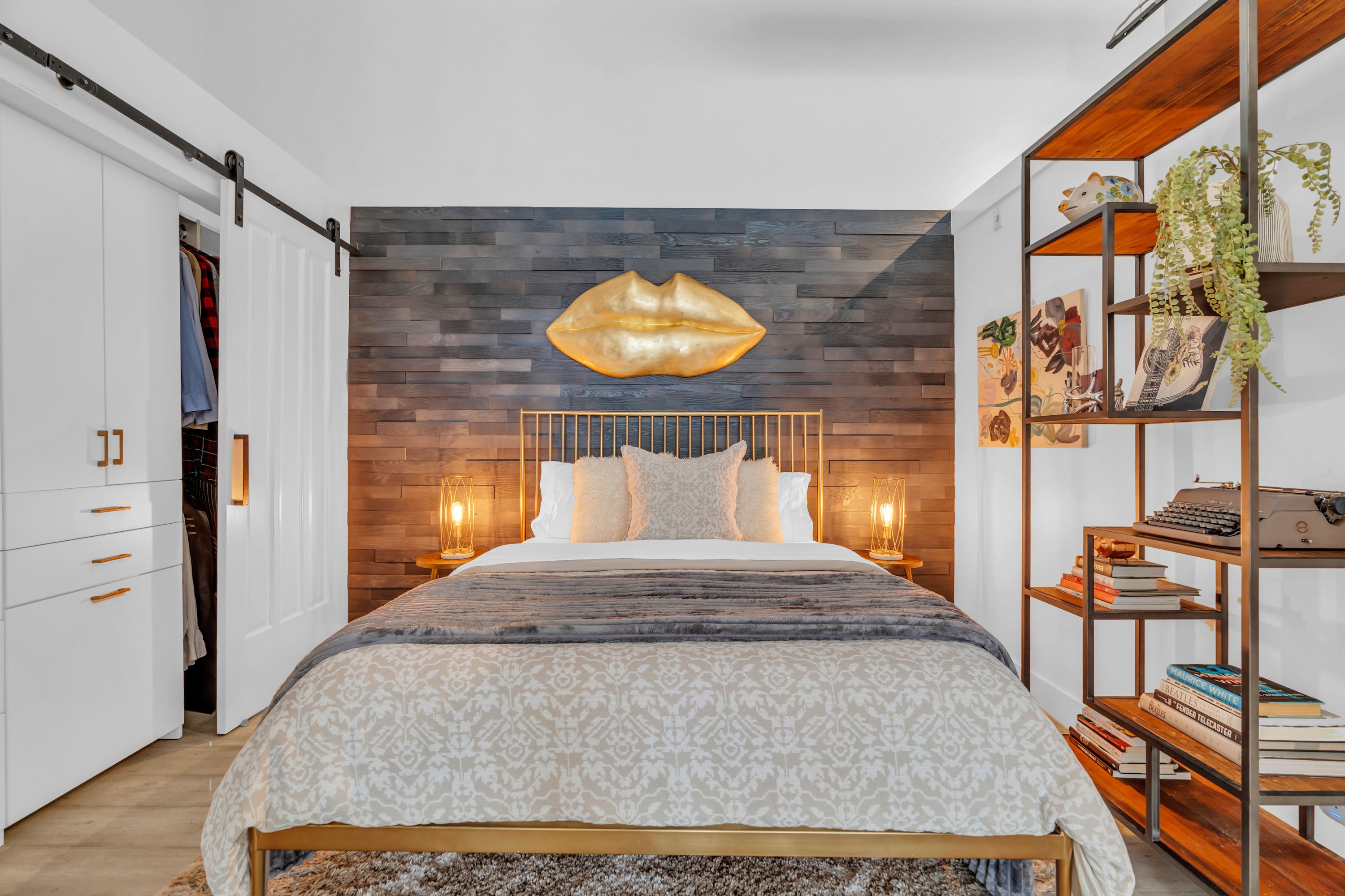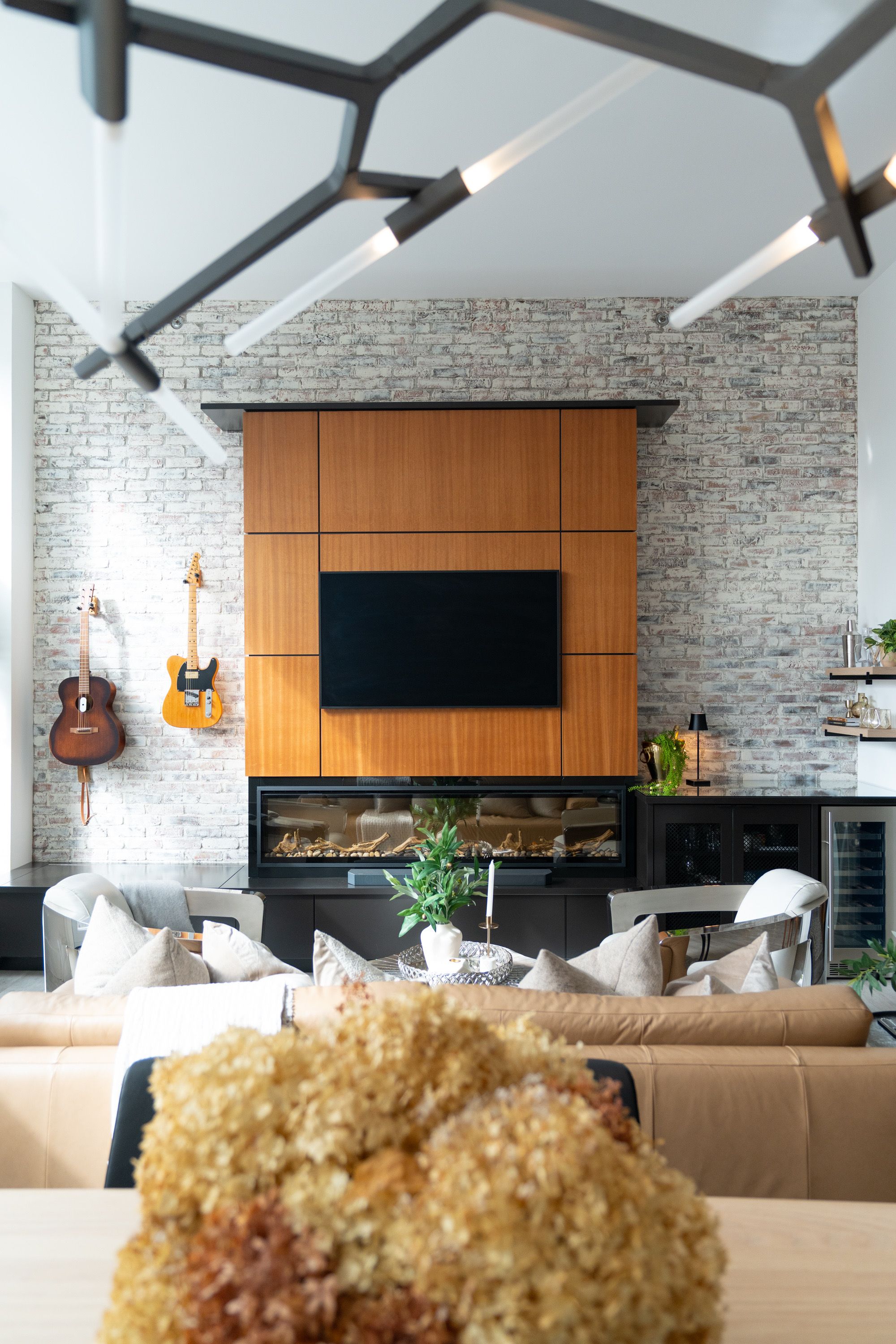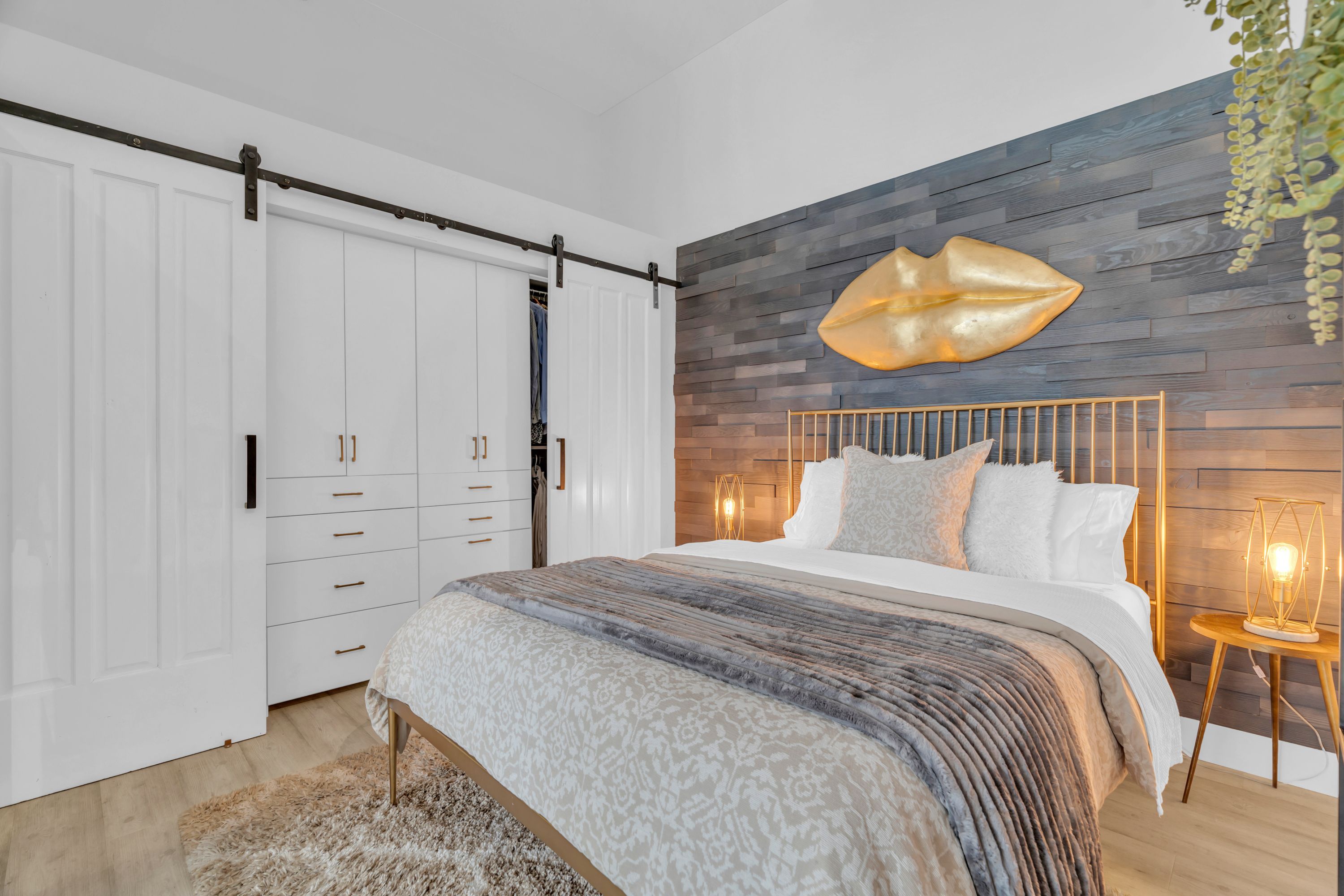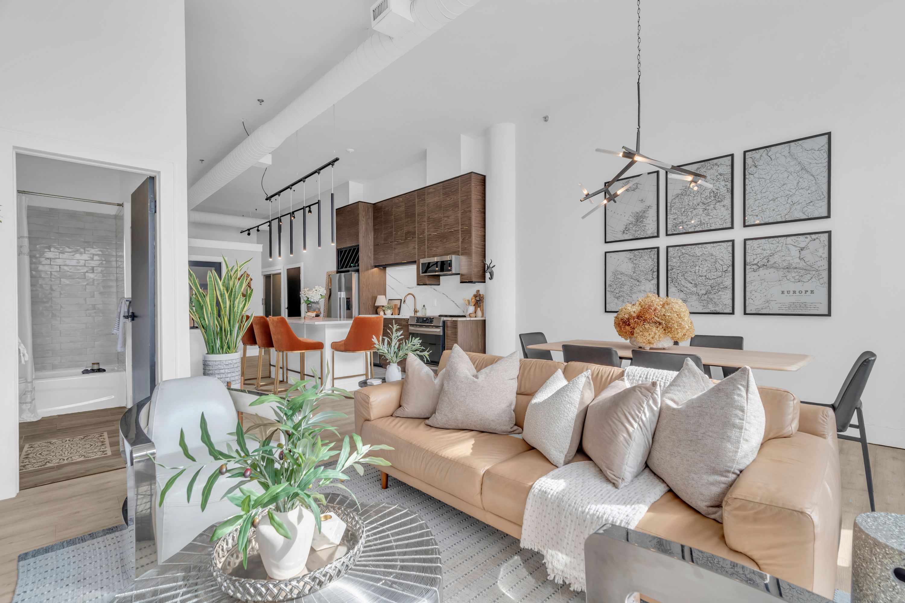 One-of-a-Kind Loft in the Heart of Downtown Kitchener. Welcome to Unit 205 at The Lofts at 276, a stunning, modern, 1-bedroom, 2-bathroom suite that seamlessly blends industrial charm with luxurious finishes. This exceptional, one-of-a-kind space, offers soaring 12-foot ceilings, floor-to-ceiling windows, and garden doors that flood the open-concept living and dining area with natural light. Every detail has been thoughtfully curated, from the wide plank vinyl flooring to the custom design elements throughout. The gourmet kitchen is a chefs dream, featuring rich dark wood cabinetry, veined quartz countertops and backsplash, an oversized island with breakfast bar, custom wine rack, statement lighting and an eye-catching feature wall with built-in buffet. The expansive living area is perfect for both entertaining and relaxing, anchored by a custom fireplace surround with integrated dry bar, wine fridge, and complemented by a warm brick accent wall that adds character and texture. Elegant garden doors open to a Juliette balcony, adding a touch of European charm. The dining space comfortably accommodates family gatherings, offering the perfect setting for special occasions.The main bathroom offers a stylish vanity with a stone vessel sink and a tub with textured tile surround. Additional features include in-suite laundry, underground parking, and an oversized storage locker located just steps from your vehicle. Retreat to the primary suite through double doors to find a wood accent wall, sliding closet barn doors, a custom closet organizer, and a private ensuite. The spa-inspired bathroom includes a walk-in shower with striking black-framed glass doors, wood-look tile, and a generous niche with accent details. Set in a beautifully converted loft building with modern lobby, this home places you in the heart of vibrant Downtown Kitchener just steps from cafés, restaurants, transit, schools, entertainment, and Victoria Park. Urban luxury and everyday convenience await.