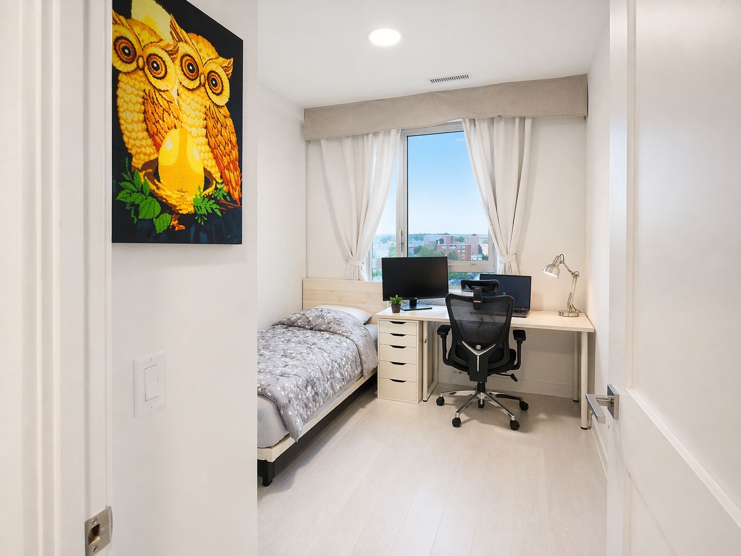 Discover this bright, north-facing 1+Den condo in the sought-after community on Main Street. The versatile den features a door, seamlessly functioning as a second bedroom, and the unit offers the option to rent fully furnished with all essential living pieces for effortless move-in. Enjoy clear, unobstructed views from this prime location, ideal for students or working professionals commuting to downtown Hamilton's vibrant offices, dining, and amenities, with easy GO Bus access right nearby. Nestled in a walkable neighbourhood boasting free street parking-typically unrestricted overnight and outside peak hours-this boutique building impresses with a grand two-storey lobby, high-speed internet, rooftop terrace, gym, study rooms, party room, dog-washing station, and community garden. Close to Mohawk College's IAHS campus via Main Street West and Hwy 403, it's also convenient for McMaster students, blending urban convenience with serene living. Perfect for those seeking transit-friendly, low-maintenance luxury without car dependency-schedule your viewing today!
