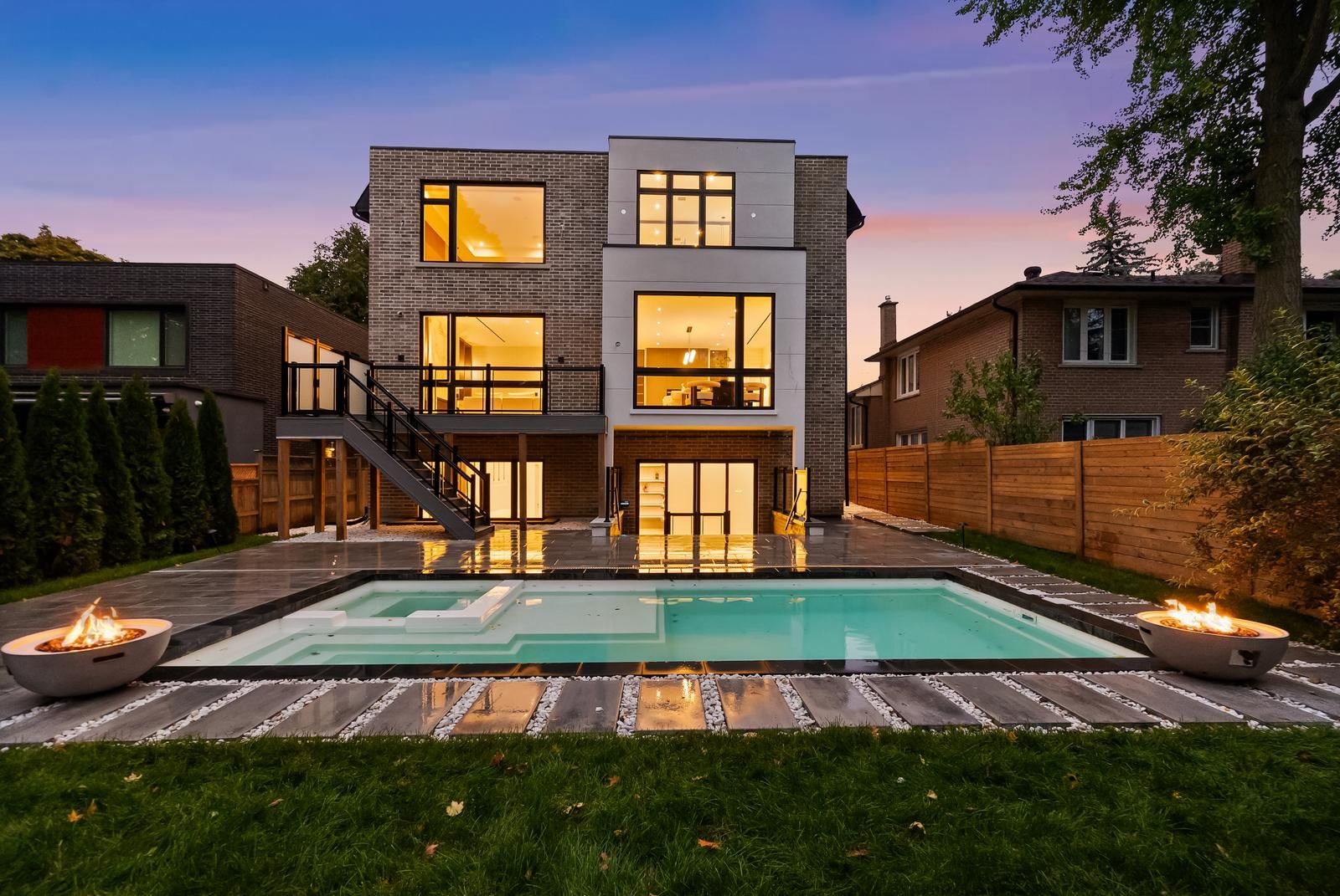 **TARION WARRANTY** 38 Howard Drive presents a rare combination of every desired factor, in a single luxury property: located in the sought-after Bayview Village neighborhood, with 5000 sq ft above grade, a stunning swimming pool, 3-car garage (2+1; can fit 3 large SUV's), heated driveway, elevator w/ 4 stops, dog wash, mudroom, dirty kitchen, top of the line automation & appliances, and designer-selected finishes. Nestled on a quiet and private street, enter this marvelous 5+1 bedroom home, equipped to surpass every need. Main floor includes heated foyer, living & dining area, knockout kitchen w/ full-sized, exceptional Subzero & Wolf appliances, 30" fridge & 30" freezer, 48" gas cooktop, dirty kitchen, servery w/ sink & drink cooler, and breakfast area that walks out to deck; EXPANSIVE fam room & kitchen are larger than that of any other home on a similar frontage, w/ ravine view, outlooking the serene landscaped backyard. Office w/ own ensuite can be used as fifth bedroom. Four sizeable bedrooms upstairs including the primary w/ HUGE his & hers walk-in closets, and 6 pc ensuite w/ heated slab floors & steam shower. Every bedroom w/ its own ensuite. Additional features incl. heated front steps & porch, heated basement w/ walkout, fire bowls outside, 10' ceiling in basement & second floor, 10'6" ceiling on main, 2 furnaces, 2 ACs, 2 steam humidifiers, 2 HRVs, 2 laundry rooms, 3 gas fireplaces, 8 skylights, Control4 automation throughout, cove lighting, LED strip lights & pot lights, track lighting; extensive use of slabs; paneled walls on main, second floor hallway & stairs. Basement w/ recreation room, wet bar, center island, and additional bedroom w/ ensuite. Catchment area for highly-ranked Bayview Middle & Earl Haig Secondary schools; close to Bayview Village mall, North York General Hospital, and only minutes to 401 and Sheppard subway station. Walking distance to parks, ravines, shops, transit, library, coffee, amenities, and much more.