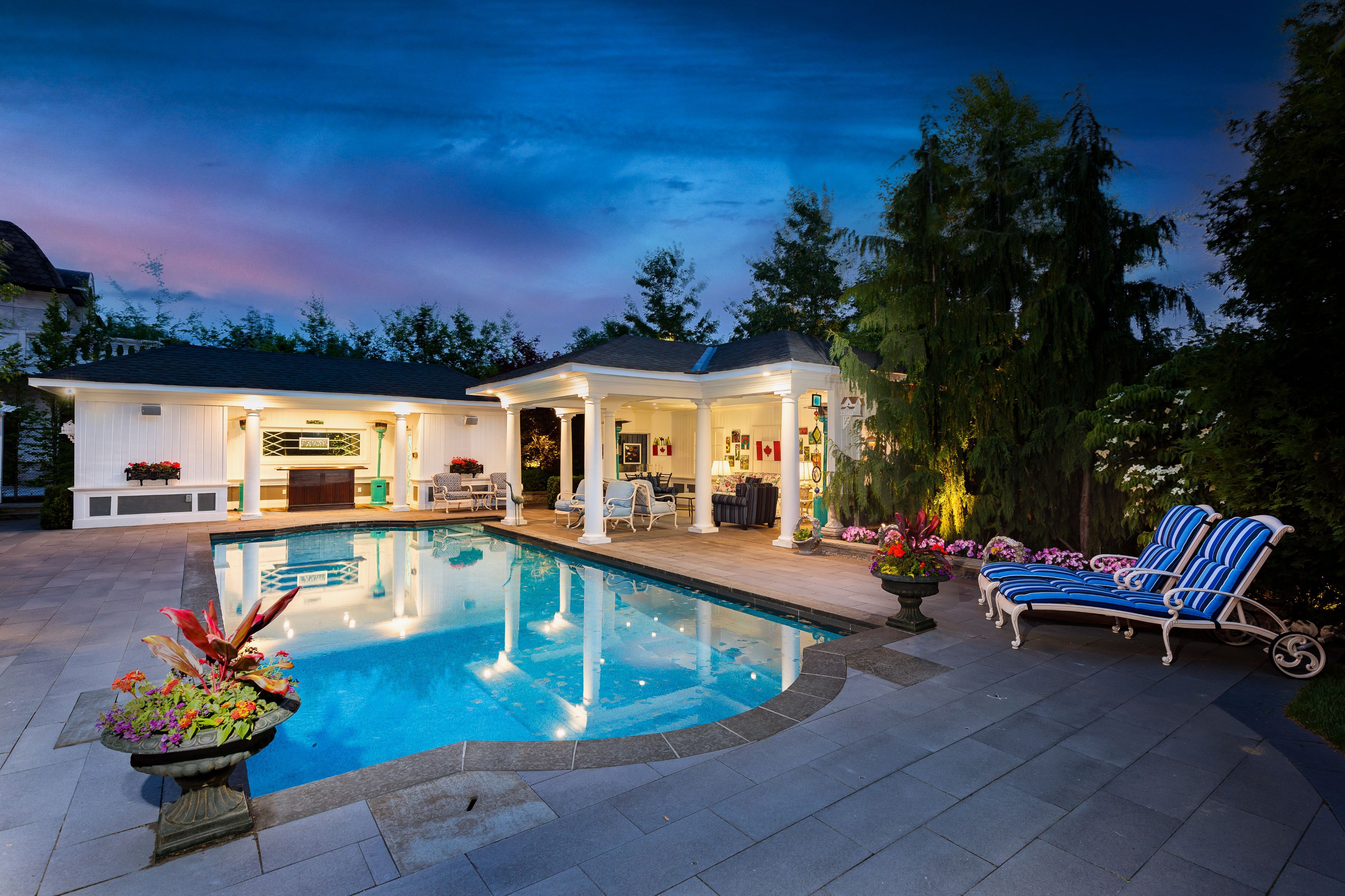 Exceptionally situated within a secluded cul-de-sac on nearly a half-acre of manicured grounds, this custom-built 2017 estate represents the pinnacle of quality and refinement. Offering over 8,000 square feet of above-grade living space, the residence showcases meticulous craftsmanship and design inspiration drawn from the world's most prestigious 5-star hotels and global resorts; an ideal setting for family gatherings and high-level entertaining. The dramatic 2-storey grand foyer sets the tone, complemented by a private passenger elevator to access to all levels. Interior finishes reflect international influence, including a dining room inspired by The George V in Paris, an Orangerie greenhouse room reminiscent of a Relais & Châteaux estate, and a distinctive 2-storey office and study with a hidden connecting staircase modelled after an historic University of Toronto library. Designed for both sophisticated entertaining and daily living, the home features a double kitchen configuration with a sun-filled main kitchen and an enclosed back pantry kitchen for heavy cooking and catering. These spaces flow seamlessly into the breakfast area and majestic great room. Personal accommodations include two lavish primary suites with couture-style dressing rooms and ensuite bathrooms inspired by Japanese luxury. The fully finished lower level adds over 4,400 square feet dedicated to wellness and recreation, including a comprehensive fitness centre, spa, media room, games room, and a private guest or nanny's suite. Outdoors, the backyard transforms into a Caribbean-style pool retreat. Practical features include a heated circular driveway, heated triple-car garage, and state-of-the-art mechanical and security systems. This estate is a rare offering-an architectural statement of elegance, comfort, and master craftsmanship. Feng Shui certified by Master Paul Ng, with high life cycle for wealth. Three wealth centres, plus powerful energy for health, studies and relationships.