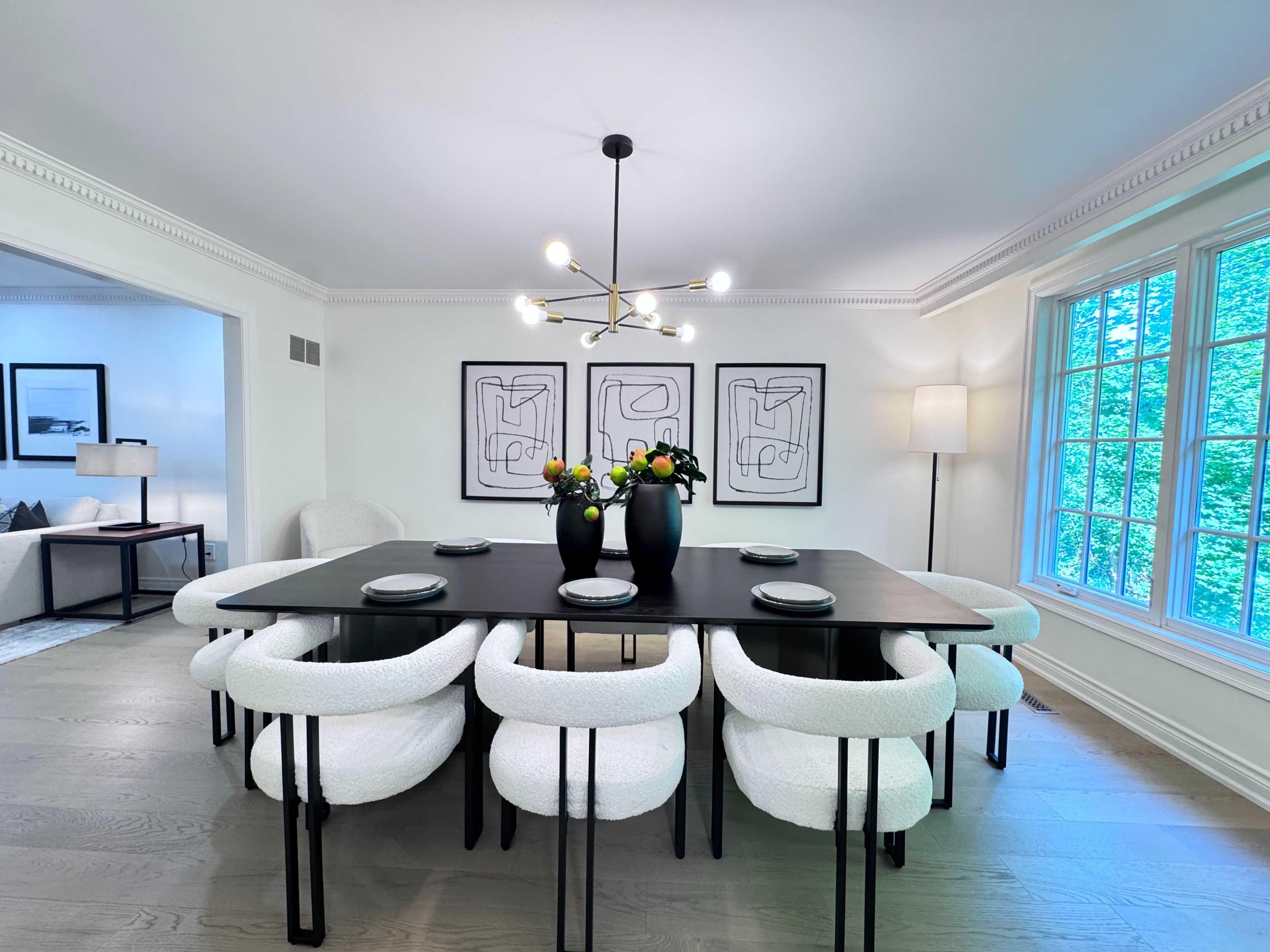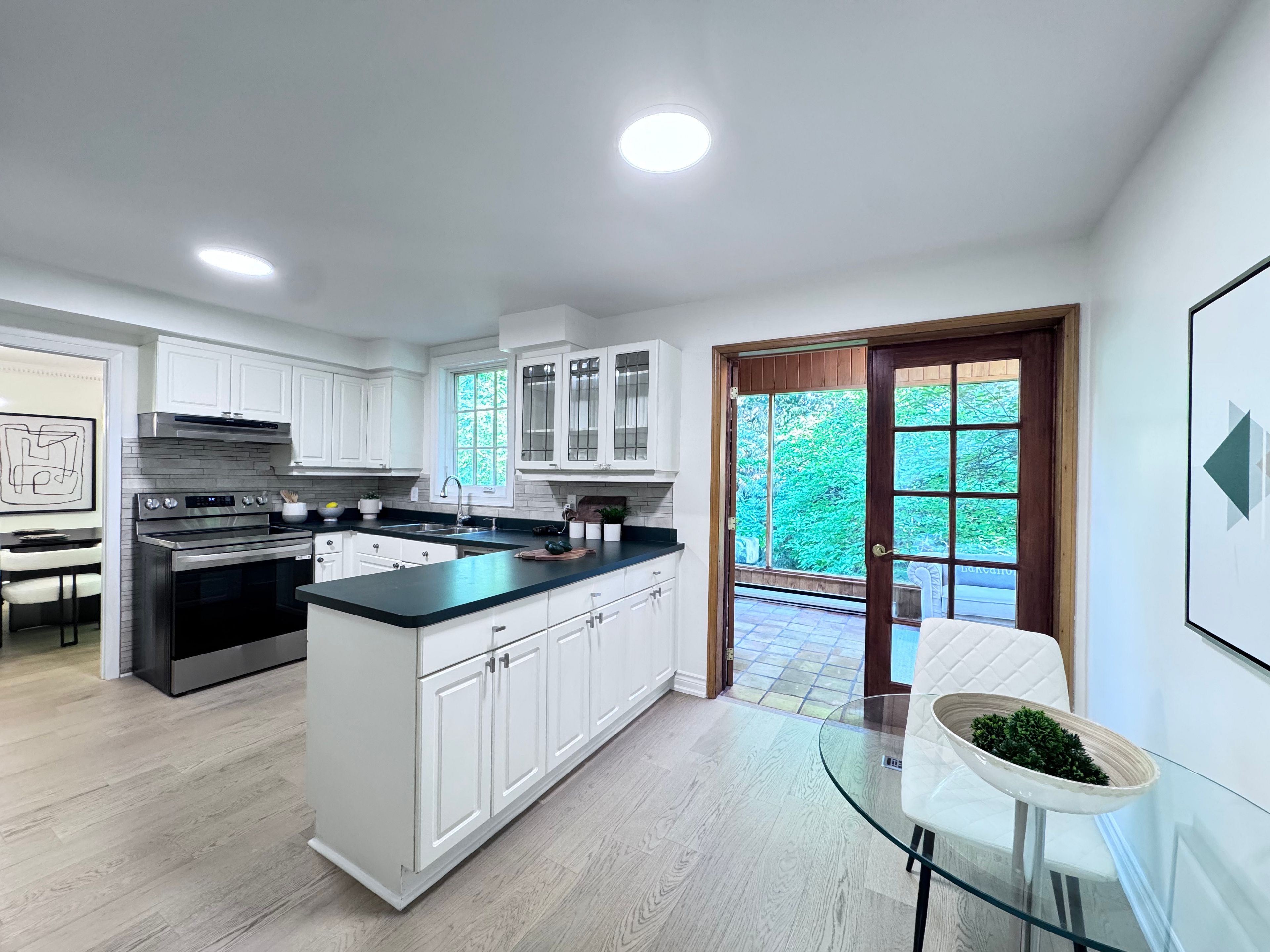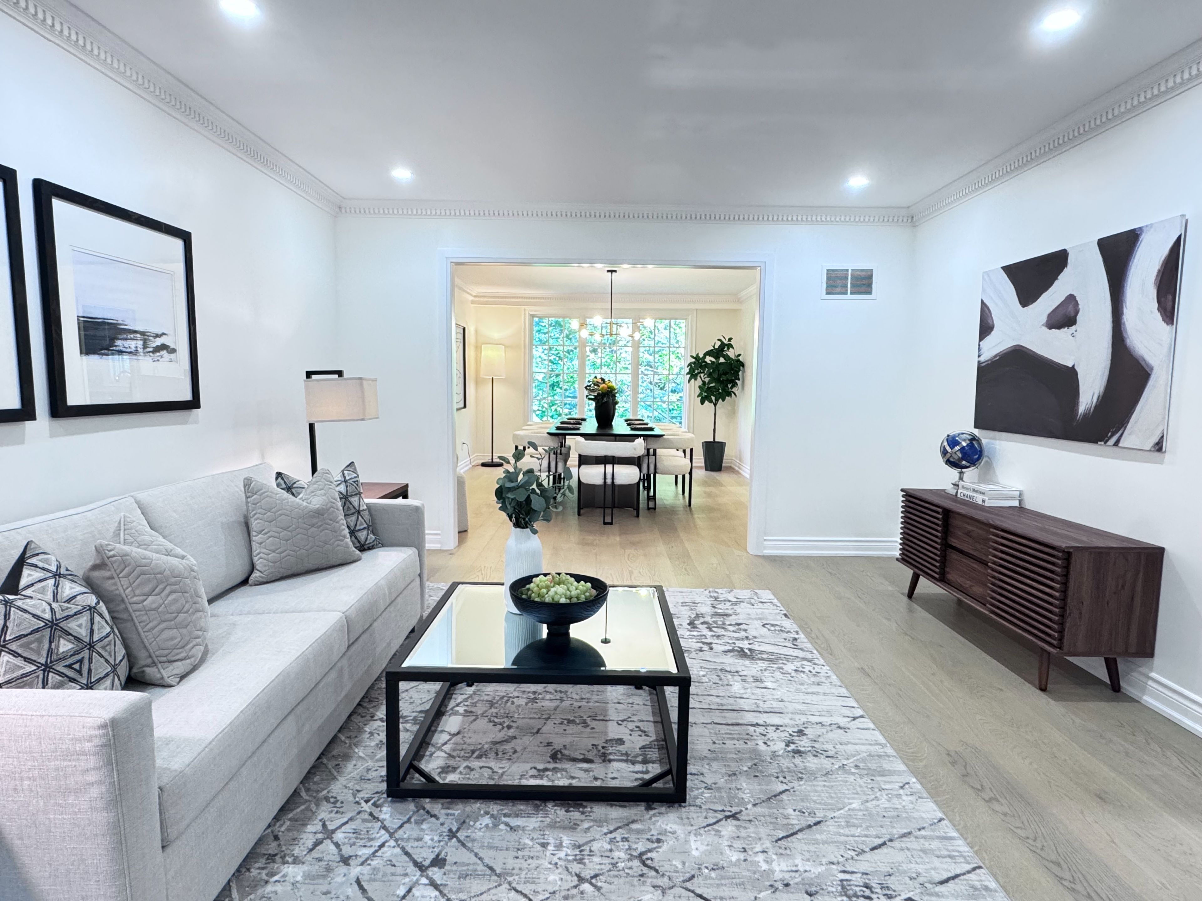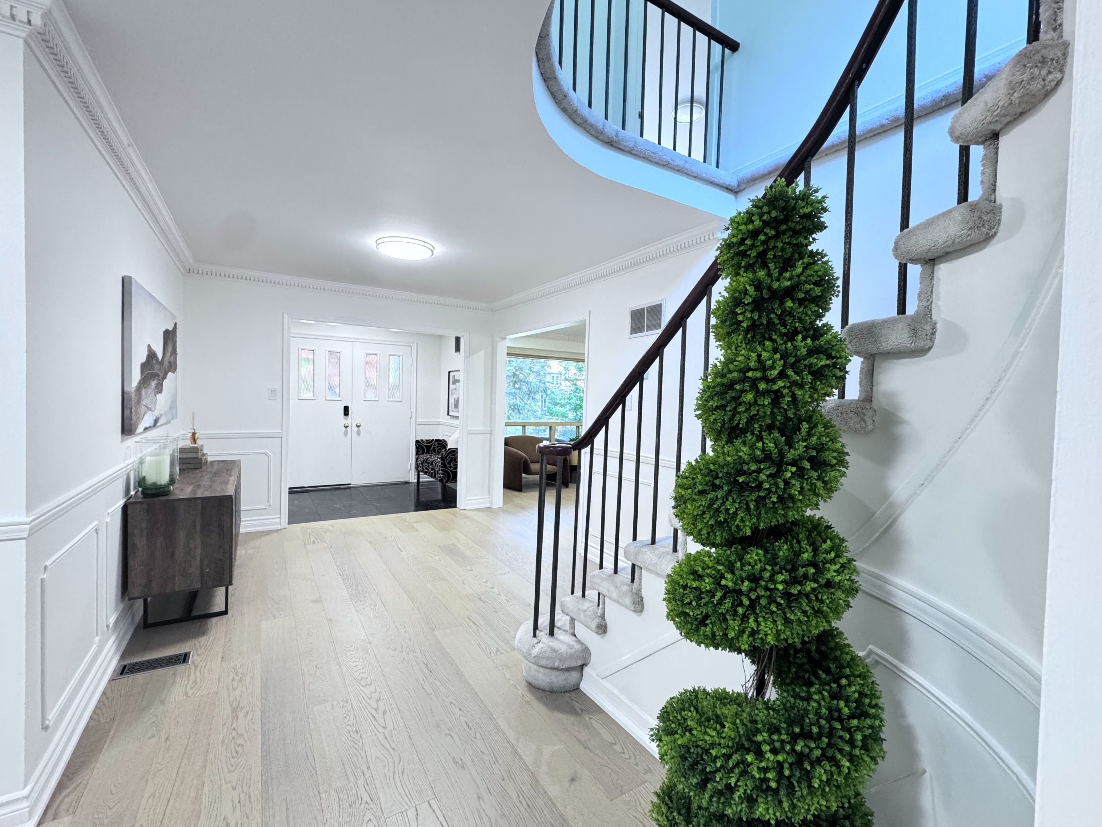 Situated in the prestigious Banbury-Don Mills neighbourhood, this exceptional family residence sits on a generous pie-shaped lot with an impressive 60.28-foot rear width. For both comfort and entertaining, the practical two-storey layout offers 4+2 spacious bedrooms, 4 bathrooms, and a bright ground-level walk-out basement. A standout feature is the large, cottage-inspired all-season sunroom, overlooking a private, treed, resort-like backyard. This peaceful and secluded outdoor setting offers exceptional privacy and a true sense of escape, evoking the feel of country living while remaining in the heart of the city. The functional interior has been freshly painted throughout and features newer Engineered wood flooring on the main and second levels. The home includes a convenient main-floor laundry room witha side entrance, a generous primary bedroom with a 5-piece ensuite and walk-in closet, and three additional well-proportioned bedrooms. The lower level features a large recreation room, a separate games room, and ample storage space. Located within a highly sought-after school district (Denlow PS and York Mills CI), and close to top private schools. Recent upgrades and inclusions include: newer double-door refrigerator, new LG stainless steel stove (2025), newer stainless steel hood fan and built-in dishwasher, existing washer and dryer, fireplace, upgraded electrical amperage, new furnace and central air conditioning, newer hardwood flooring (2025), freshly painted interior (2025), and new pot lights in the living room. The staging pictures are virtual staging.