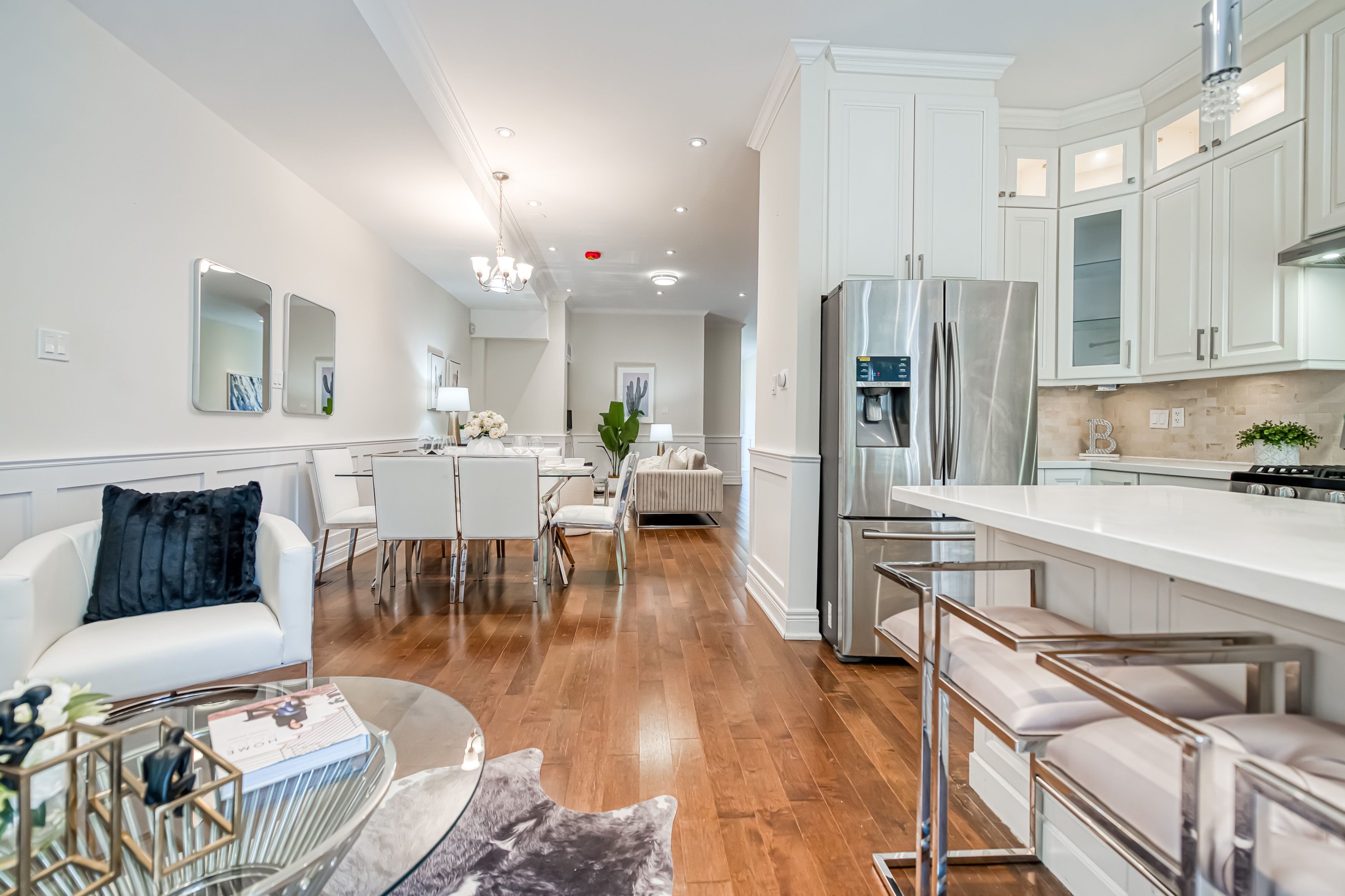 Move into this gorgeous custom built 4-bedroom executive home! Top to bottom upgrades. All LED lights, Smart tech w/ 4-camera internet/recording surveillance and Smart thermostat. Open concept Main Floor W/10 Ft Ceiling. Double Layer Solid Wood Kitchen Cabinet W/Quarta Top & Center Island. Canadian A-Grade Hardwood Floor.Family Rm W/ Gas Fireplace.Tampered Glass Railing. Ensuite W/Jacuzzi,Skylight, Frameless Glass ShowerAll, 2nd FL toilets w/ BI power outlets ready for bidet install.Finished walk-up basement with separate entry suitable for tenants. Very deep backyard suitable for in-laws suite, w/ Bbq gas line and total privacy behind trees. Entry Door Fm Garage. Quiet & friendly area w/ front facing green playground. Steps to school, 20 Minutes To Downtown & 2 Minutes Walk To Ttc & Shopping. Minutes of driving to beach, parks & major retailers.