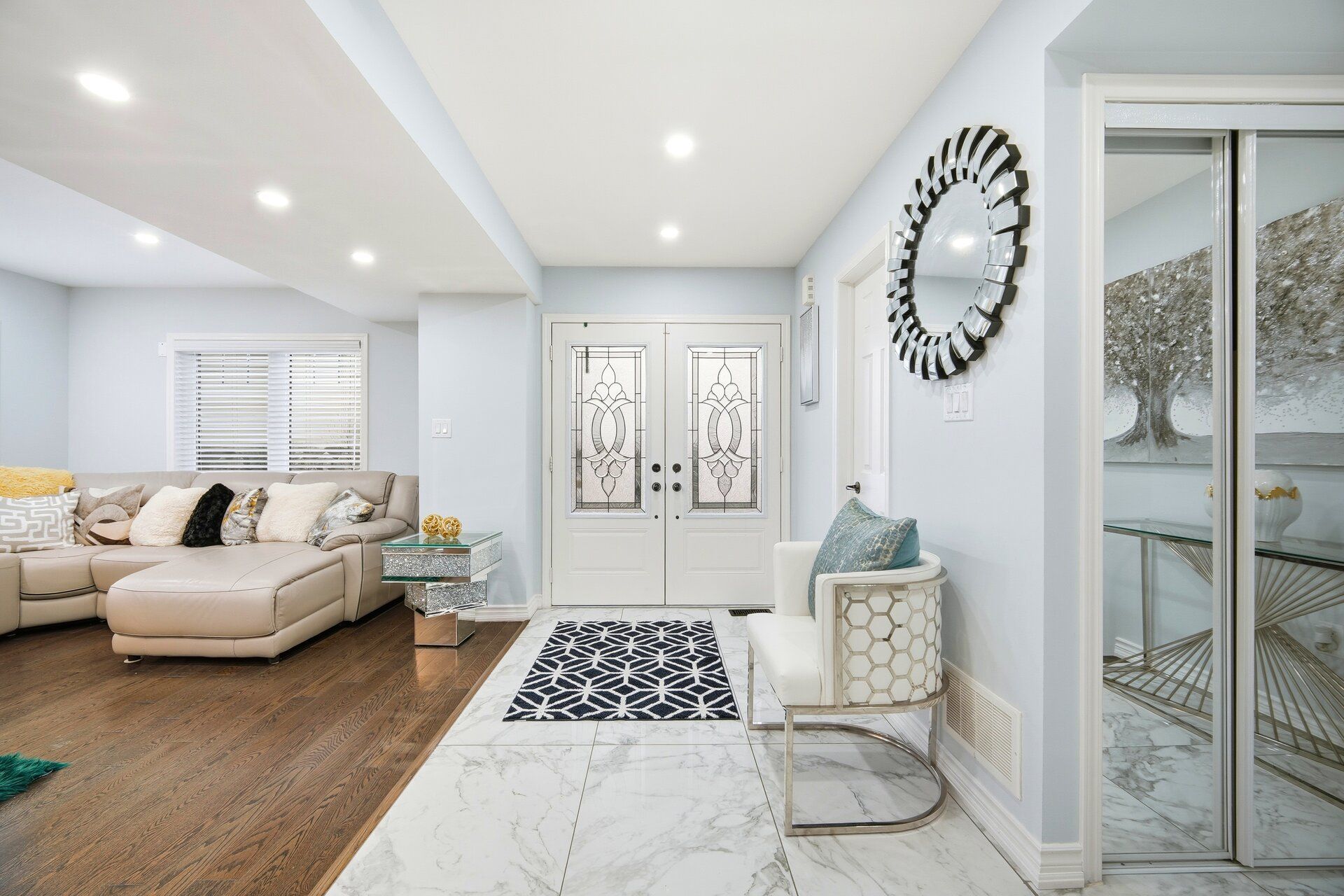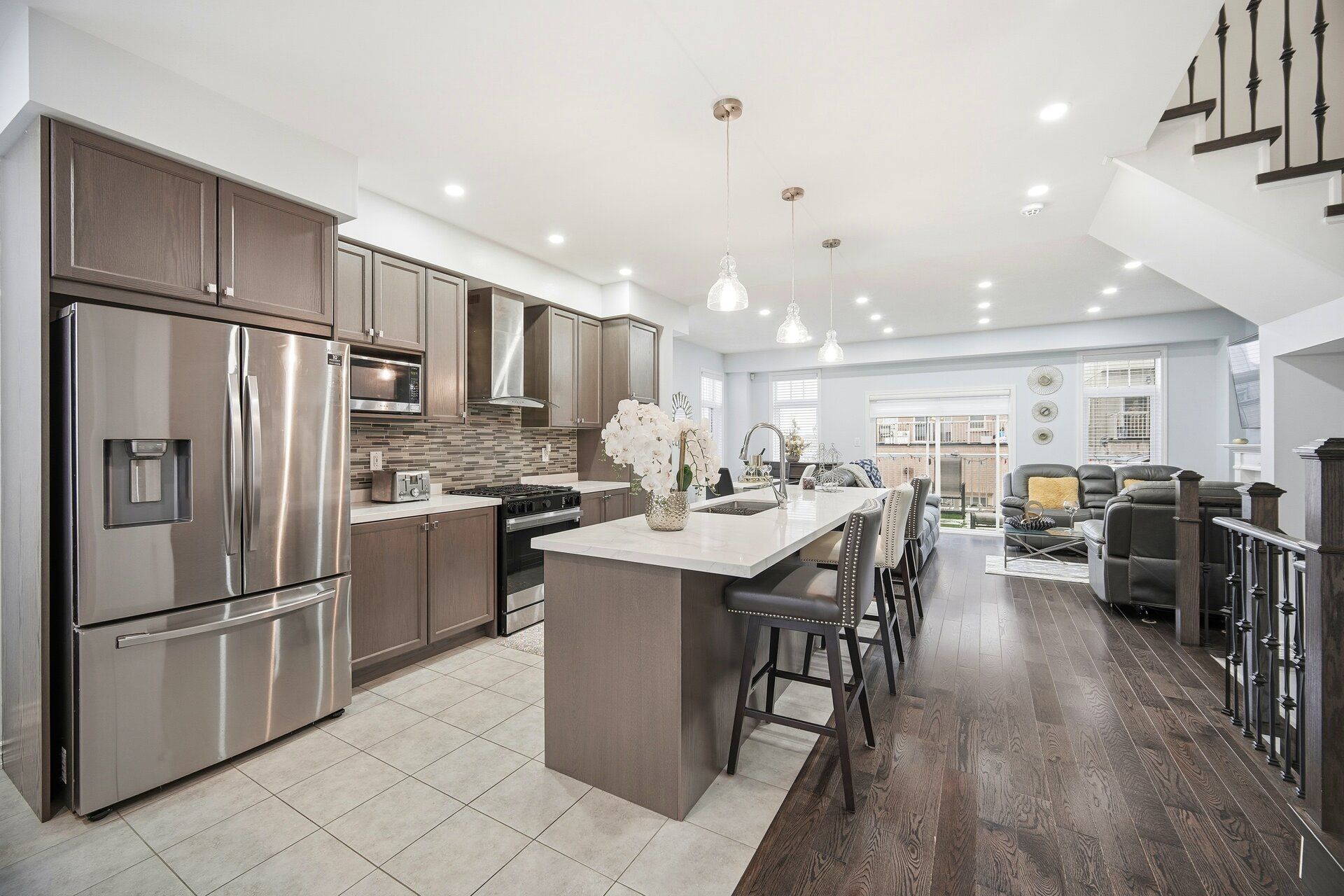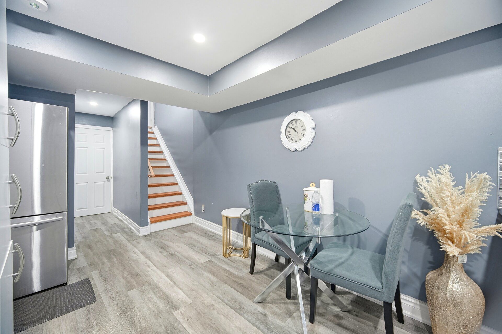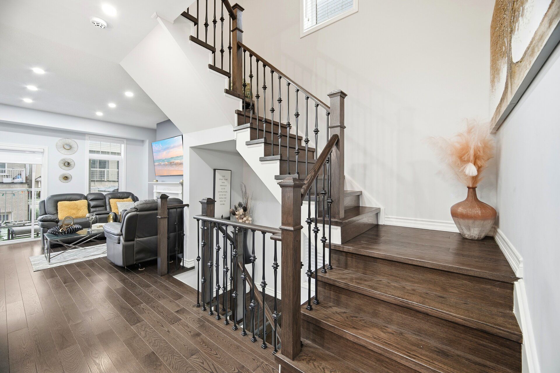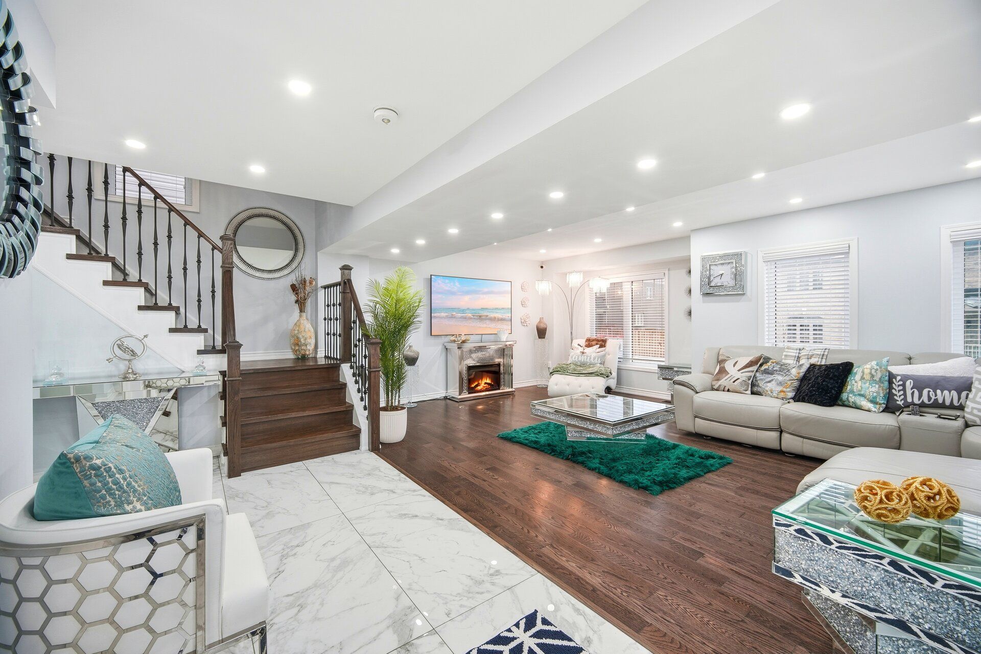 Rare to find, move-in-ready luxury on a premium corner lot: elegant three-storey, detached residence with rear laneway access and over 3,000 sq ft of total living space. Comprehensive upgrades exceed $100K, including engineered hardwood floors, 9-ft ceilings, modern pot lighting, and a chef-worthy kitchen with granite countertops and stainless steel appliances. The finished basement adds a private guest room and full bath. Ground level hosts a large family room with direct garage/basement access and a powder room. The main level is ideal for entertaining with a flexible room, open-concept living/dining, a bright breakfast nook off the upgraded kitchen, and an additional powder room. The second floor offers three generous bedrooms, including a luxurious primary retreat with ensuite, and a convenient second-floor laundry. Rear laneway access to a garage plus additional interlocking side parking. Excellent Ajax locale near schools, parks, transit, and amenities. A unique opportunity to own thoughtfully designed luxury.