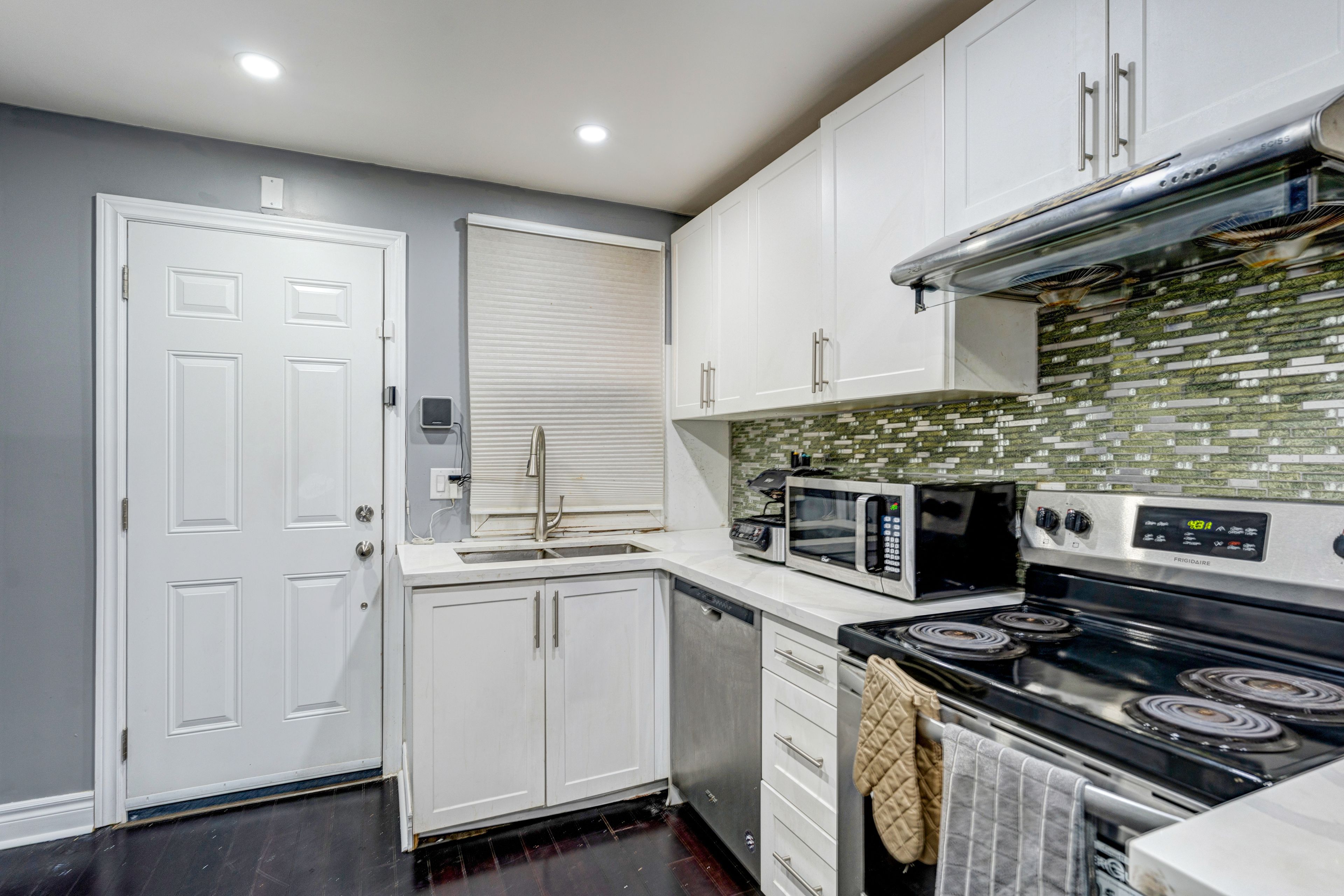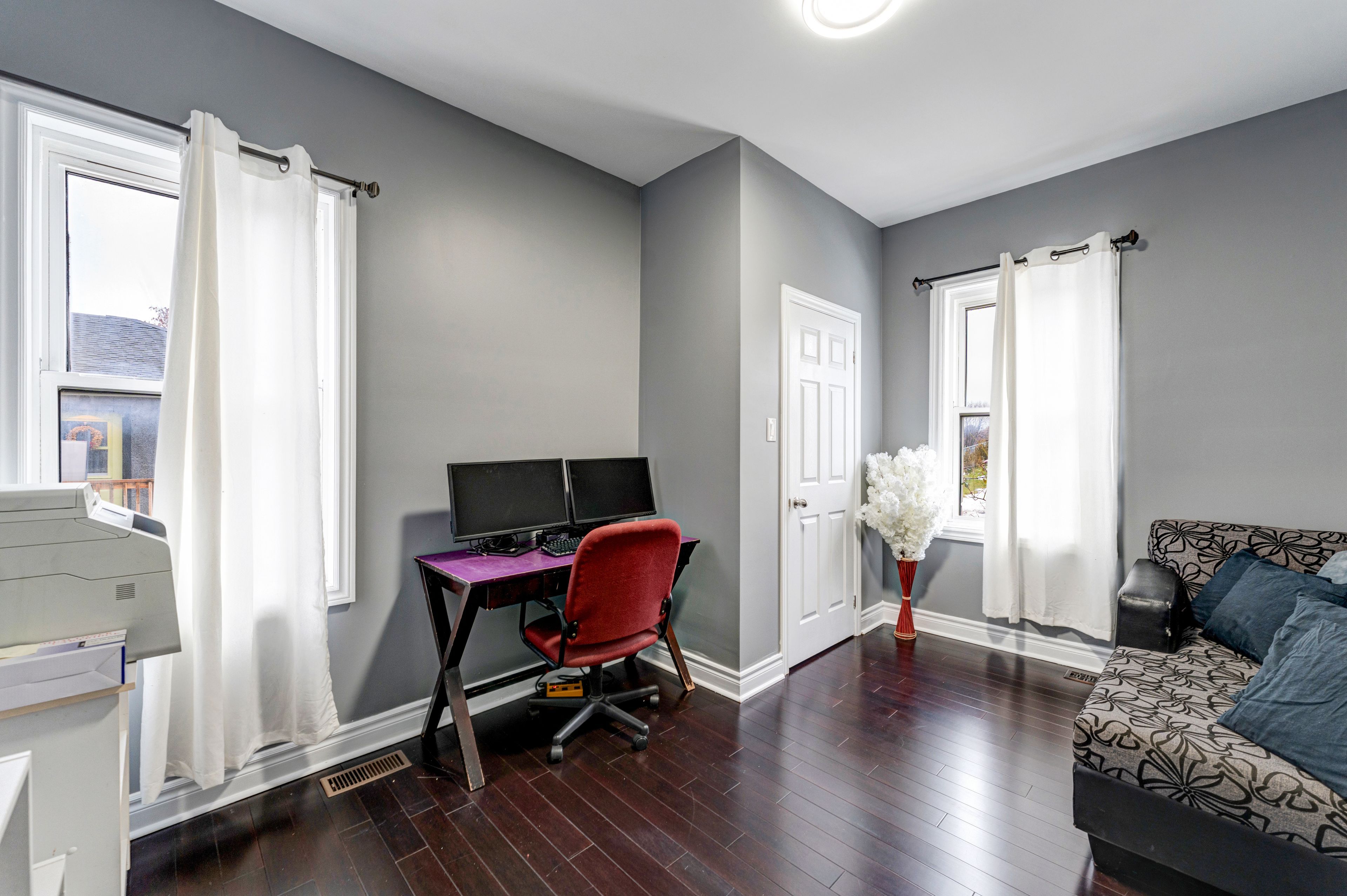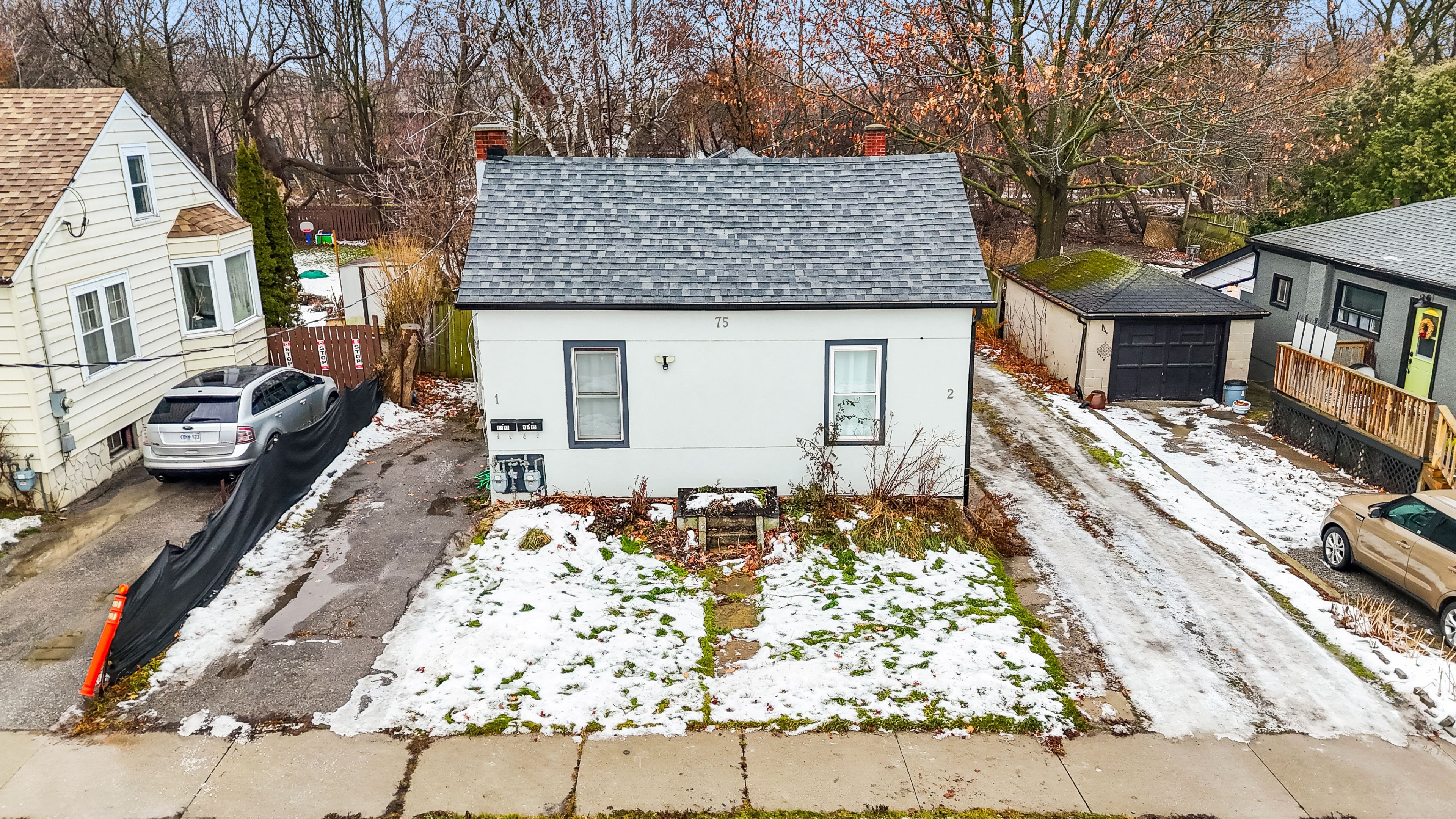 Investor opportunity! Bungalow duplex located in downtown Oshawa just minutes from the 401, shopping mall and walking distance to GO train. R2 zoning, located on a quiet dead end street in front of a small park for kids. Front Unit 1# offers 2 bedrooms,1 4pc bath 1 parking. Back Unit #2 offers 2 bedrooms,1 4pc bath space for 4parking. Great sized detached 12 X 20 garage. Front unit was used as Air B&B with city approved License. House was fully renovated in 2021 ready to move in. New roof, new floor, Newly runned electrical wiring upto date 200 AMP breakers, new pecs water line. Both units have their own hydro meter, Gas and water meter. Architect drawing available for future development for two townhomes,allowed by the city.