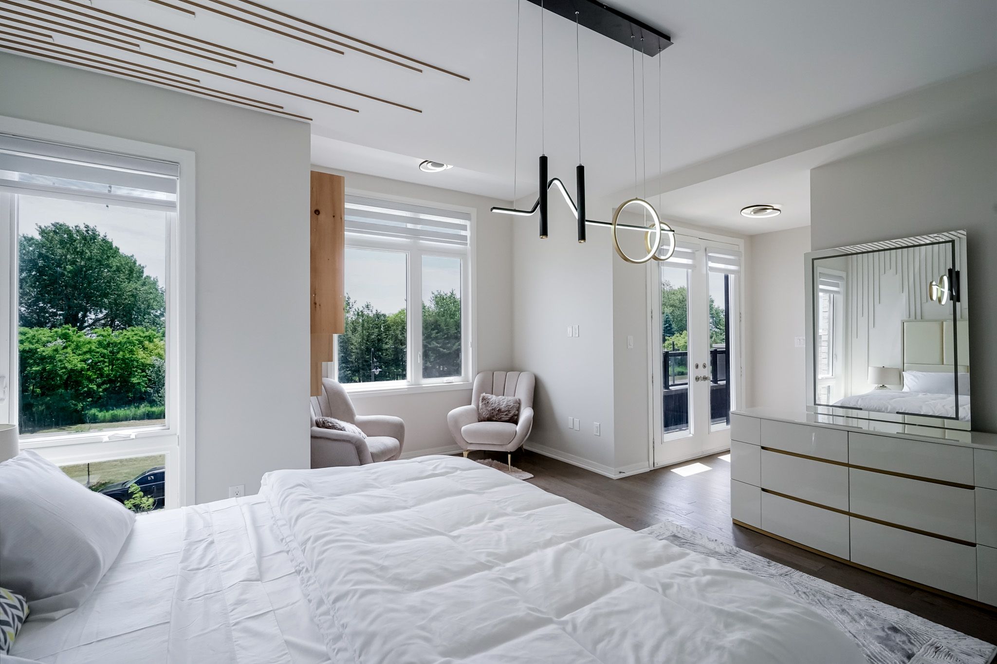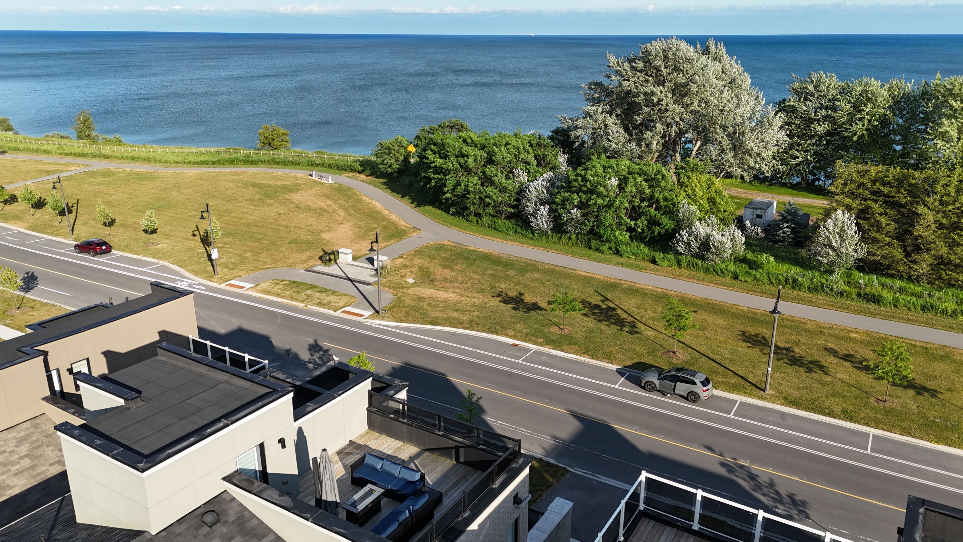 Experience refined lakeside living in the GTA's premier waterfront enclave overlooking Lake Ontario. Offering over 4,100 sq. ft. of impeccably designed living space, this distinguished residence features 4+1 bedrooms and 6 luxurious washrooms, thoughtfully crafted to deliver both elegance and functionality.A spectacular private rooftop terrace with gas line for BBQ provides the perfect setting for outdoor entertaining while enjoying unobstructed panoramic views of Lake Ontario. The home also features balconies on multiple levels and the convenience of a built-in elevator servicing all floors.Enhanced by soaring 10+ ft ceilings on the main level and 9 ft ceilings on the second floor, expansive windows, and premium hardwood flooring throughout, the home offers bright and sophisticated interiors. The chef-inspired gourmet kitchen showcases exquisite cabinetry with soft-close mechanisms, quartz countertops, a generous centre island, and integrated built-in appliances, seamlessly flowing into an inviting great room anchored by a gas fireplace-ideal for refined entertaining.The opulent primary retreat features a luxurious 5-piece ensuite and an expansive walk-in closet, along with a private balcony. The additional bedrooms are appointed with walk-in closets and private en-suites, ensuring exceptional comfort and privacy.The finished walk-out lower level includes a 1-bedroom suite with a full bath, ideal for an in-law suite or potential additional income opportunity.Additional highlights include 3-car garage parking and a fully newly fenced backyard, offering privacy and excellent outdoor space.An extraordinary opportunity to experience luxury waterfront living with breathtaking lake views.