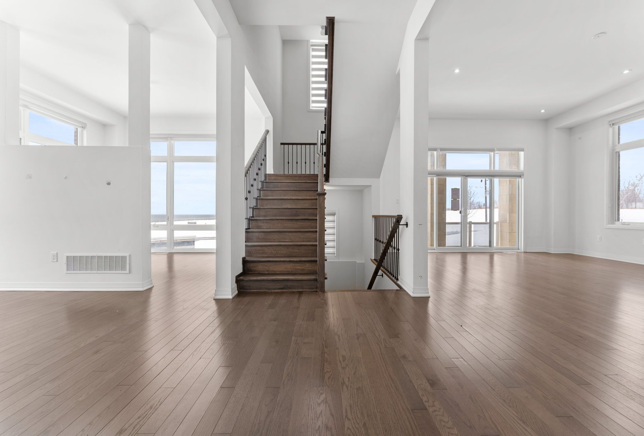Spacious waterfront residence offering breathtaking Lake Ontario views and contemporary design. Located in a growing lakeside community, this impressive home features 5 bedrooms and6 bathrooms, including a fully finished basement with an additional bedroom and multiple recreation areas. An elevator provides convenient access to every level. The open-concept interior showcases soaring ceilings-11 ft on the main floor and 10 ft upstairs-along with large windows and hardwood flooring throughout, creating a bright and inviting living space. Enjoy stunning lake views from balconies on the main and upper levels, or relax on the rooftop terrace, perfect for summer evenings overlooking the water. Close to Wilmot Creek, golf courses, parks, scenic trails, and the Newcastle Marina, with convenient access to Highway 401, the future GO Station, shopping, and restaurants. Property being sold under Power of Sale and priced to sell, offering a rare opportunity to secure a waterfront home with exceptional potential.