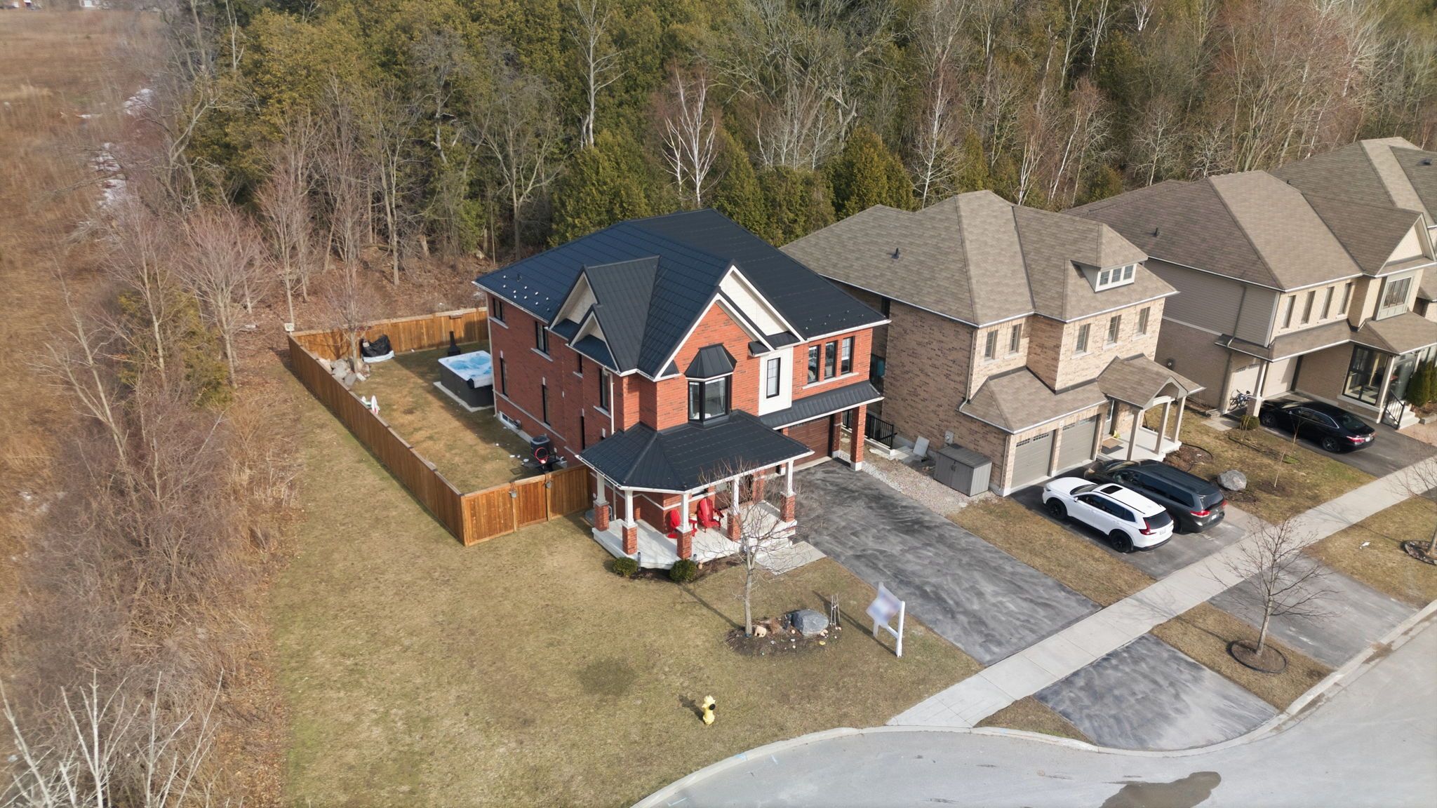Welcome to this absolutely stunning executive residence, perfectly positioned on a premium ravine lot at the end of a quiet cul-de-sac, offering exceptional privacy with only one neighbouring home. This impressive Jeffrey-built home showcases striking curb appeal with a durable metal roof, a spacious driveway and a double car garage. Step inside to a beautifully appointed main level where rich hardwood flooring flows throughout the principal rooms, beginning with a sophisticated formal dining room enhanced by a custom board and batten feature wall and large windows that flood the space with natural light. The heart of the home is the exquisite kitchen, complete with quartz countertops, a large centre island and a breakfast bar, seamlessly connecting to the bright breakfast area with a walkout to the backyard. The inviting living room is anchored by a gas fireplace and large windows. Upstairs, the primary suite is a true retreat, overlooking the serene ravine and featuring a luxurious 5 piece ensuite and a custom walk-in closet system. Additional bedrooms offer semi-ensuite or private bath access and walk-in closets, while a convenient second floor laundry room adds to the home's practical design. The fully finished basement extends the living space with a complete in-law suite, offering incredible versatility. This level features a stylish second kitchen with quartz counters and a recreation area, both with pot lights and durable flooring, along with a full bathroom and a fifth bedroom with above-grade windows. A convenient stackable laundry area completes the space. Step outside to your private backyard oasis, where a large composite deck overlooks the tranquil ravine setting. Enjoy seamless outdoor living with steps leading down to a luxurious swim spa and a beautifully crafted metal gazebo. The landscaped yard is lush and inviting, creating a peaceful escape right at home. This exceptional home blends luxury, comfort, and an unbeatable location!