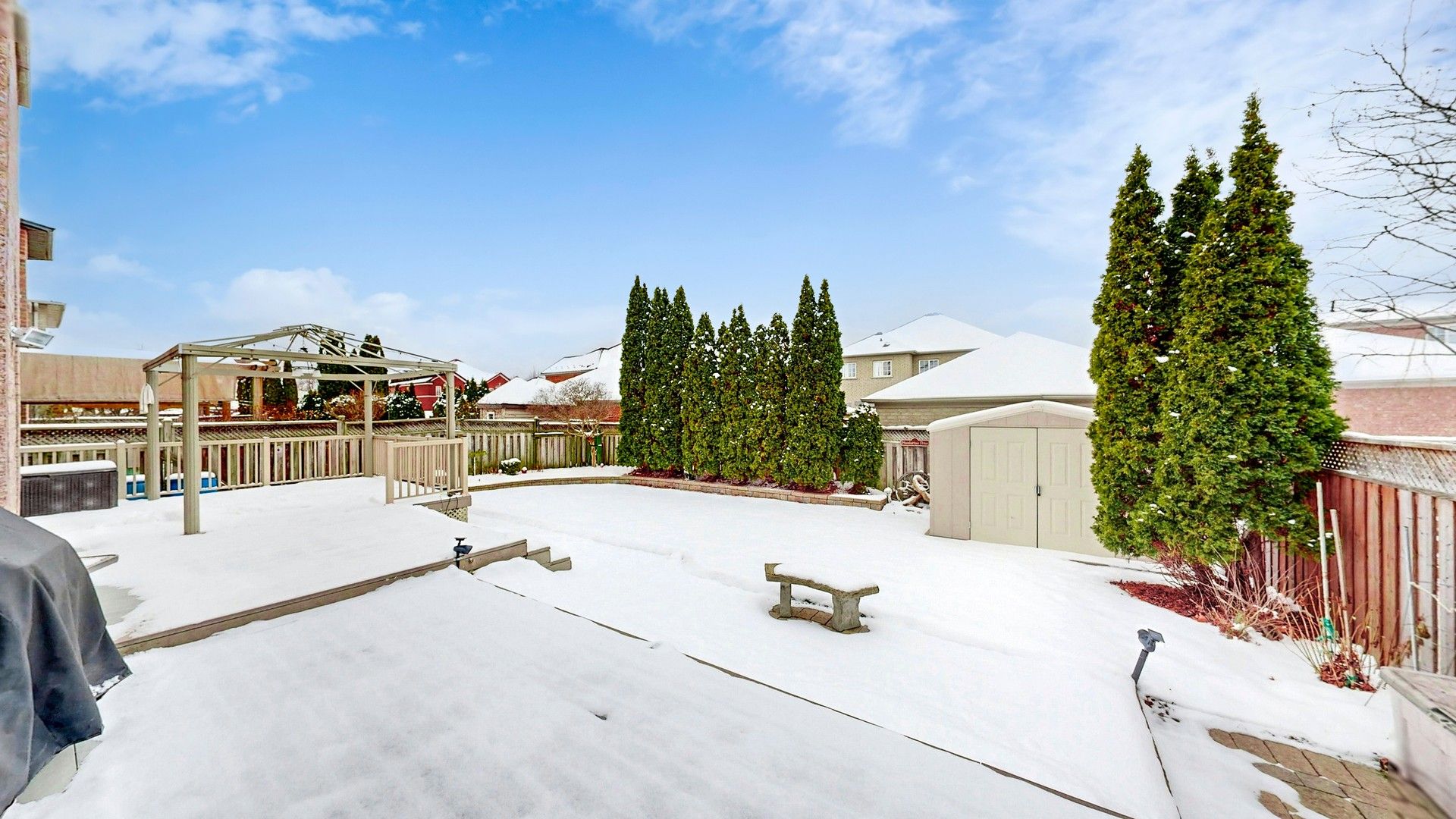 This home is a quality Greenpark Home, Glendale Model with 3770 square feet of above grade living space as per builder's floor plan. The house is a detached residence with 4 + 1 bedrooms, a library, and 5 bathrooms, including a spa-like 5-piece ensuite. The house features 9 foot ceilings on the main floor and a two storey family room. The large family eat in kitchen has upgraded maple cabinets with a large wall pantry with broom closet, pot drawers, microwave shelf, wine rack, and one cabinet with two glass inserts. The elegant attached living and dining room has crown moulding and is perfect for large family gatherings. The main floor library provides ample office space and is comfortable for working from home. The house has 200 amp service. The finished basement offers a recreation room, an additional bedroom, and rough-ins for a kitchen and laundry room. The exterior features front and backyard interlocking stone, a large composite deck, a gazebo, and a garden with shed. The house is located in the desirable Wismer neighborhood, near top ranking schools, the Go train and various amenities.