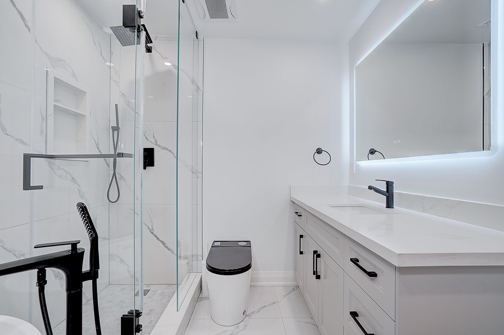 Completely reimagined in 2025 by permit, this exceptional Markham Village residence is ideally situated on a private cul-de-sac and boasts a rare 50-foot frontage. The 3109 Sq Ft above ground home features a sun-filled open concept living area, a contemporary kitchen appointed with all-new appliances and bespoke cabinetry and ample storage- ideal for both everyday living and entertaining. Four upper-level bedrooms are all ensuite, providing privacy and comfort for family and guests. The lower level is purposefully designed for modern living, combining a state-of-the-art media room, a fully outfitted gym and a dedicated dance studio - perfect for recreation, wellness and creative pursuits. Located steps from parkland, this home marries contemporary sophistication with unmatched convenience.