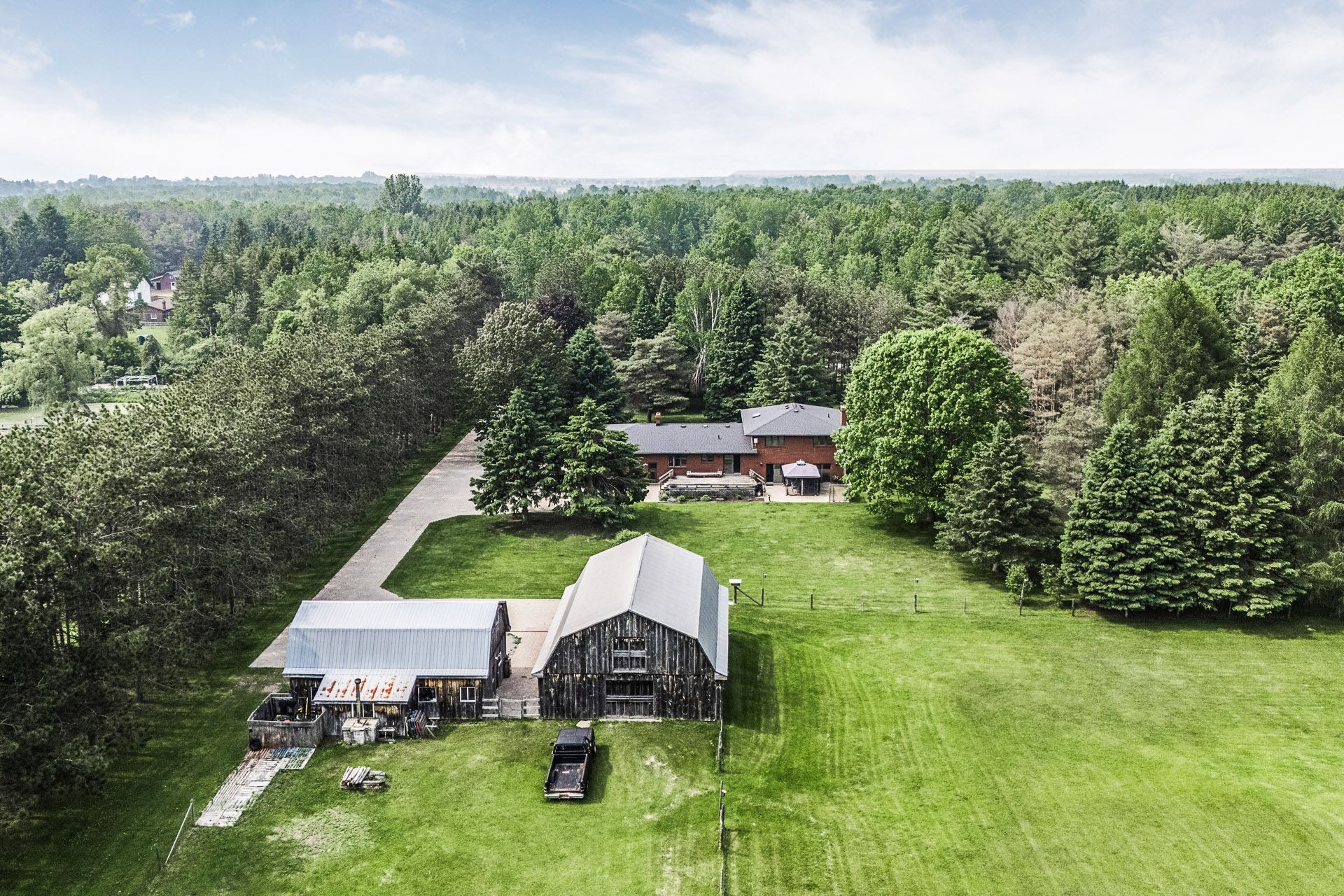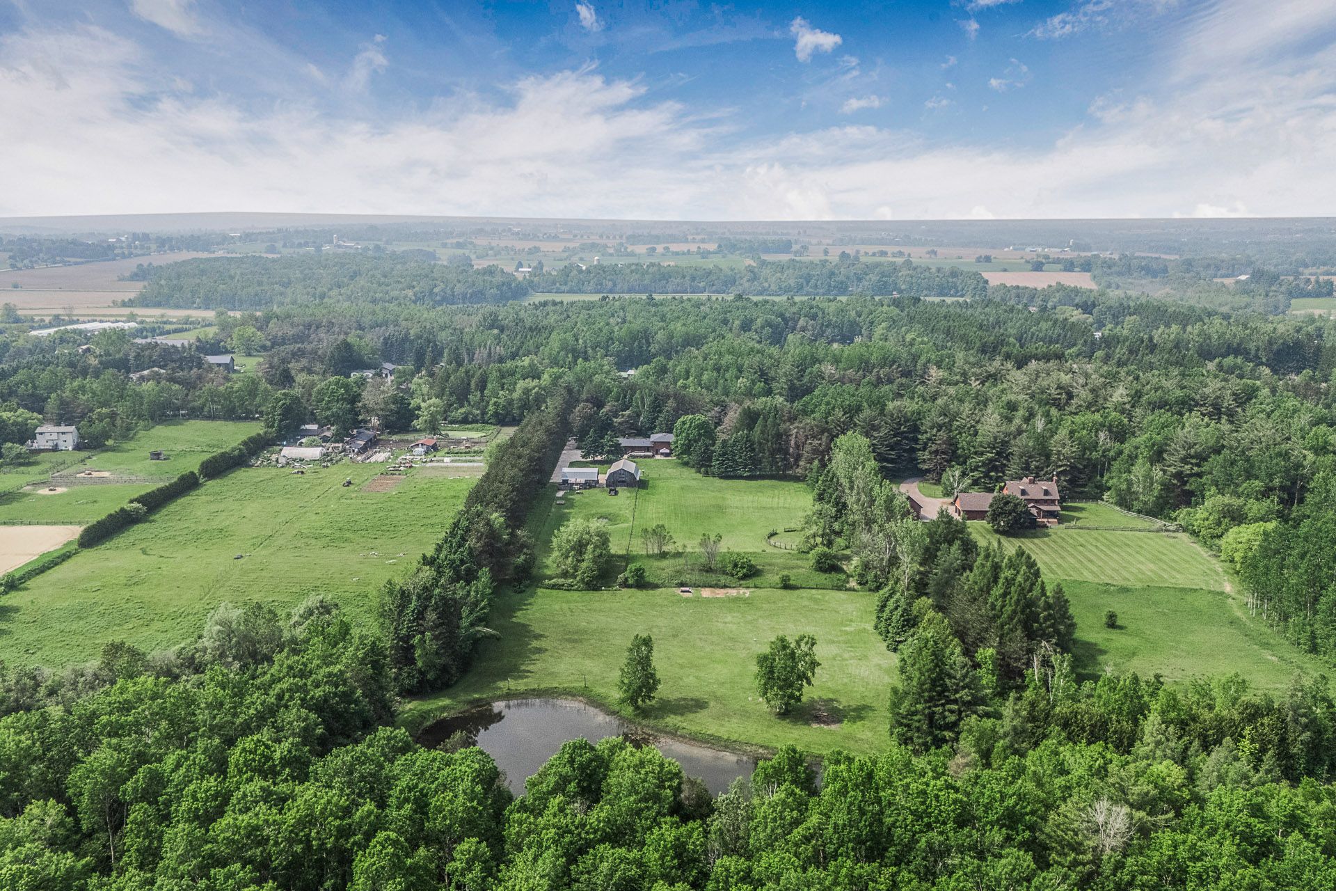 Rare Premium Private 10 Acre Parcel with Southern Exposure, Mature Trees, 2966 SQFT 5 Bedroom Home w/ 3 Car Garage + Storage Loft + Finished Basement, 3 Car 35x21 Detached Workshop + Loft, 6 Stall Barn + Hay Loft, 3 Paddocks, and Acre Pond on Desirable Feasby Road. Enter through the long tree-lined private driveway into your own country retreat. Custom built 2966 SQFT 5 Bedroom 4-Level Sidesplit offers large principal rooms, a covered front porch, a bright open-concept layout and two kitchens. Oversized Family Room with laminate flooring, wood stove and multiple walk-outs to the patio. Spacious Combined Dining/Living Room with laminate flooring. Primary Suite with walk-in closet and 3-piece ensuite. 5th Bedroom with 3 piece bathroom, kitchen and laundry room is ideal for multi-generational living. 3 Car Detached Garage/Workshop (1991) is insulated/heated with a wood stove, electric blower and propane heater as well as a storage loft. 6 Stall Barn w/ Hay Loft (1986), Tack Room, Shavings Storage Room, and Hydro. The majority of the lot is open and dry with the perimeter of the lot lined with mature trees enhancing the privacy and natural setting. Original Long-Time Owners. First Time Offered. Quiet Dead-End Section of Feasby Road Offers Privacy and Low Traffic.