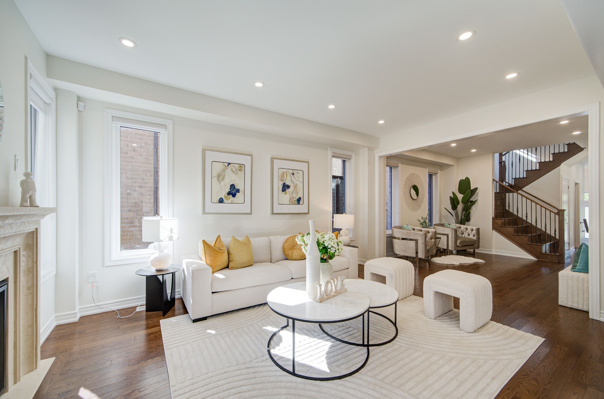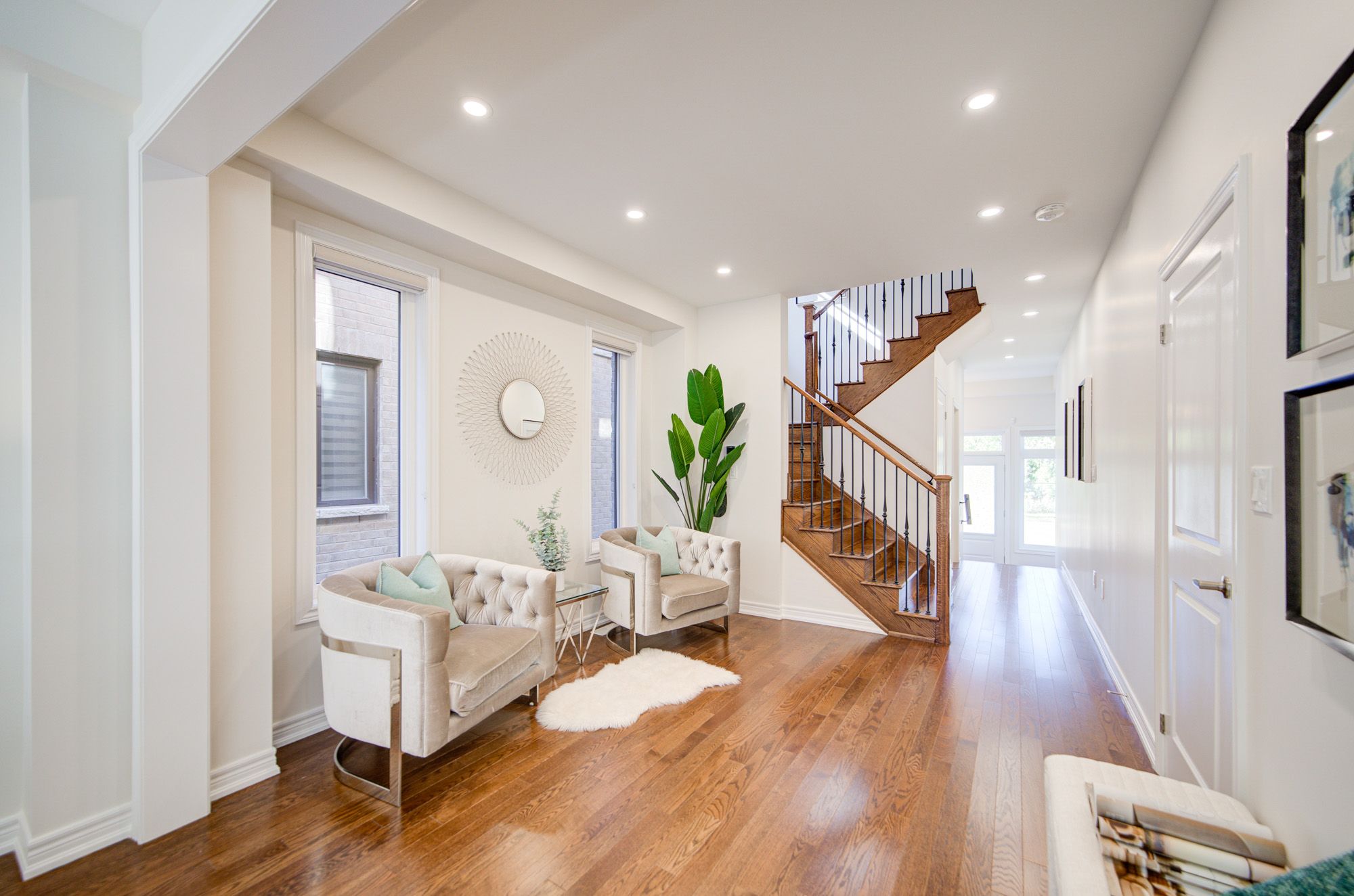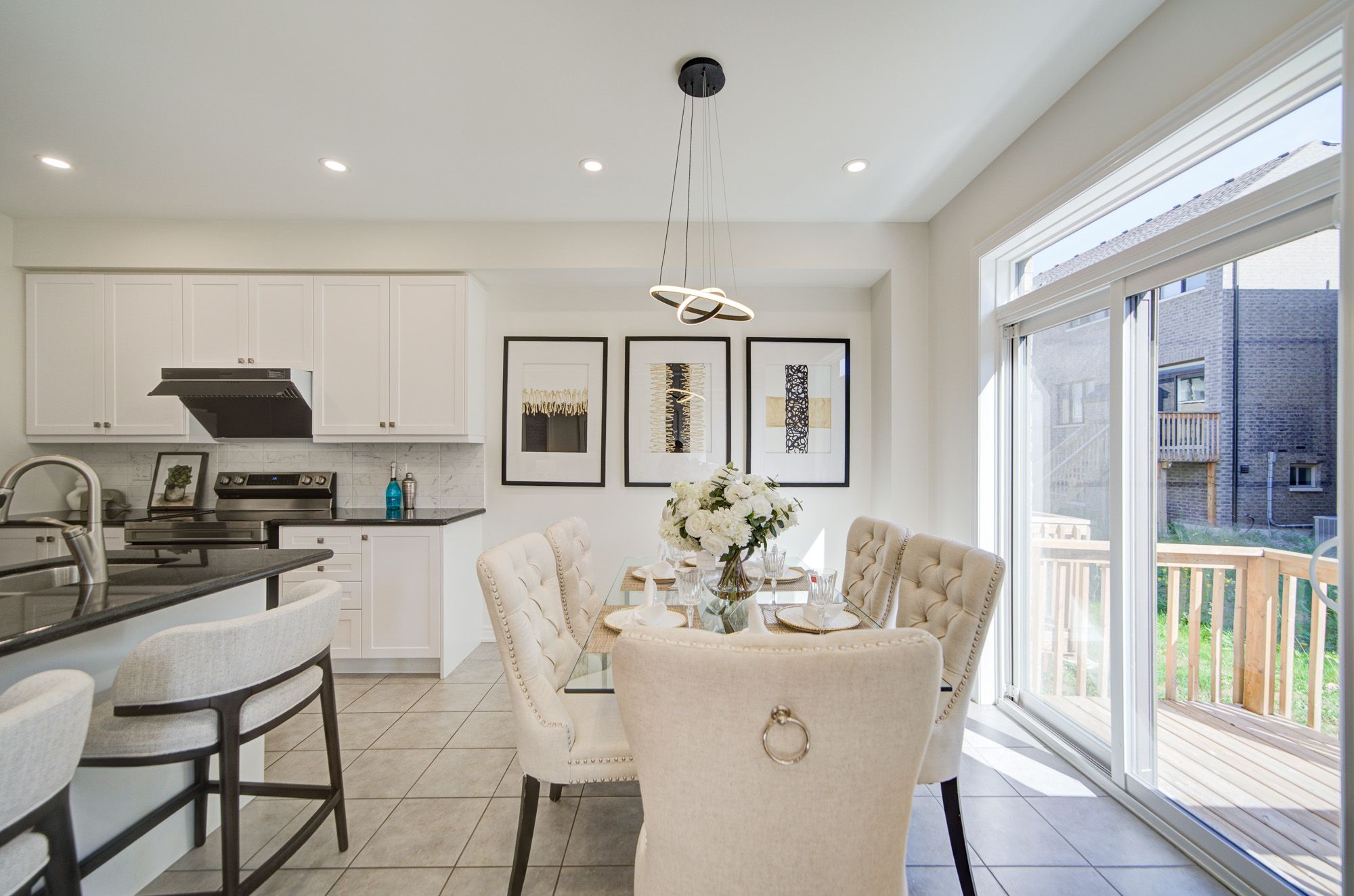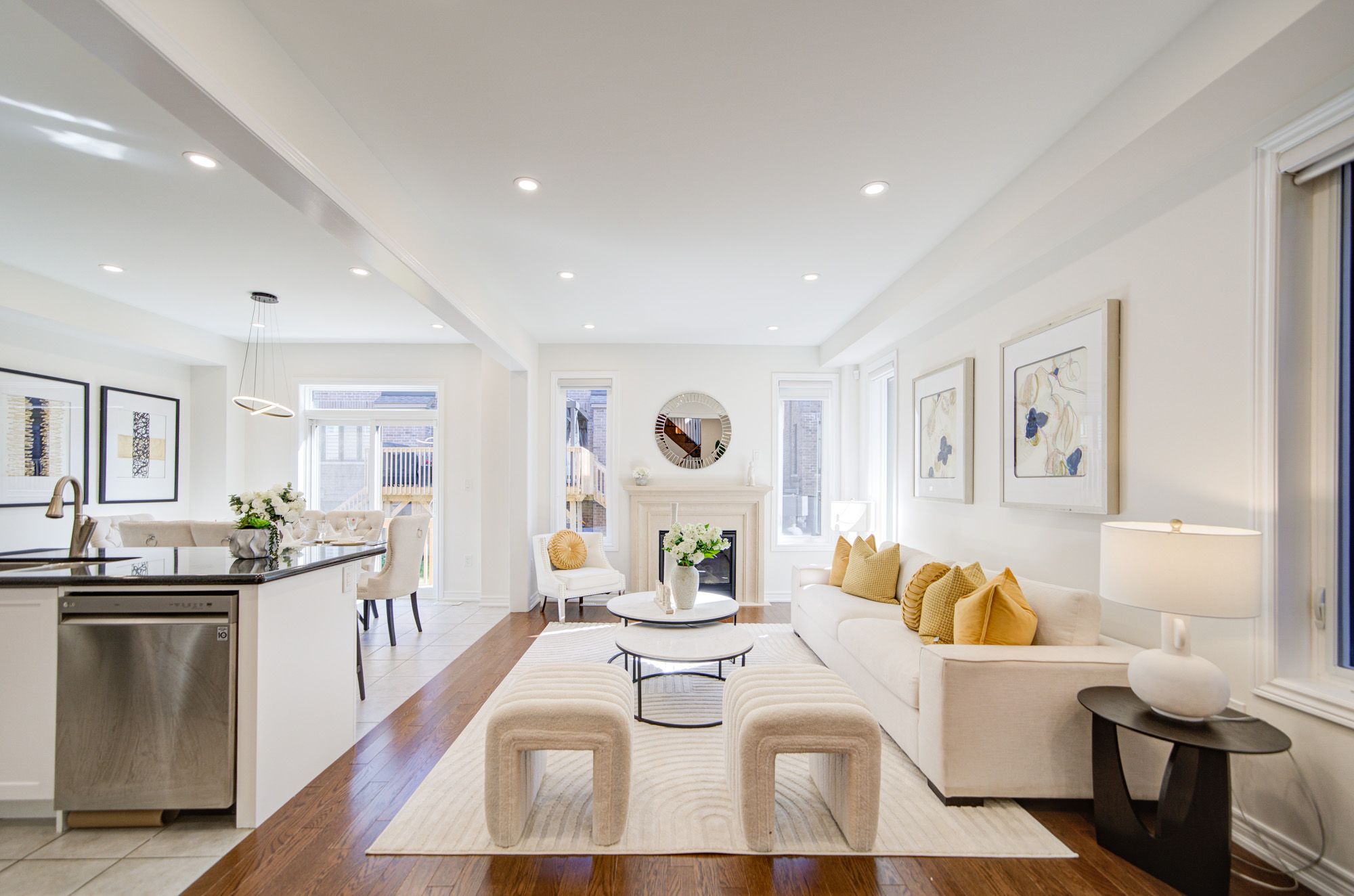 Stunning Arista Semi-Detached Home in the prestigious Richlands community of Richmond Hill, offering 2,135 sq. ft. of thoughtfully designed above-ground living space with an open-concept, functional layout that is both spacious and bright. This modern home features 4 generous bedrooms and 3 luxurious bathrooms, including a large primary suite complete with a 5-piece ensuite and walk-in closet for added comfort and privacy. Designed with a modern style, this home boasts 9' smooth ceilings on both floors, new pot lights, and hardwood flooring throughout, creating a refined and airy atmosphere. The main floor includes a cozy dining area with a gas fireplace and a gourmet kitchen outfitted with a large center island, sleek quartz countertops, stainless steel appliances, a stylish backsplash, a generous WALK-IN pantry, and ample cabinetry. Upstairs, oak stairs with iron pickets lead to well-appointed bedrooms, each offering comfort and natural light. A finished basement adds versatile space ideal for a home office, gym, or entertainment area. Enjoy outdoor living in the backyard with a deck, and take in tranquil, unobstructed views as the home faces a serene ravine. A prime location near top-ranked schools, beautiful parks, Costco, Home Depot, Richmond Green Park, shopping plazas and easy access to Hwy404.