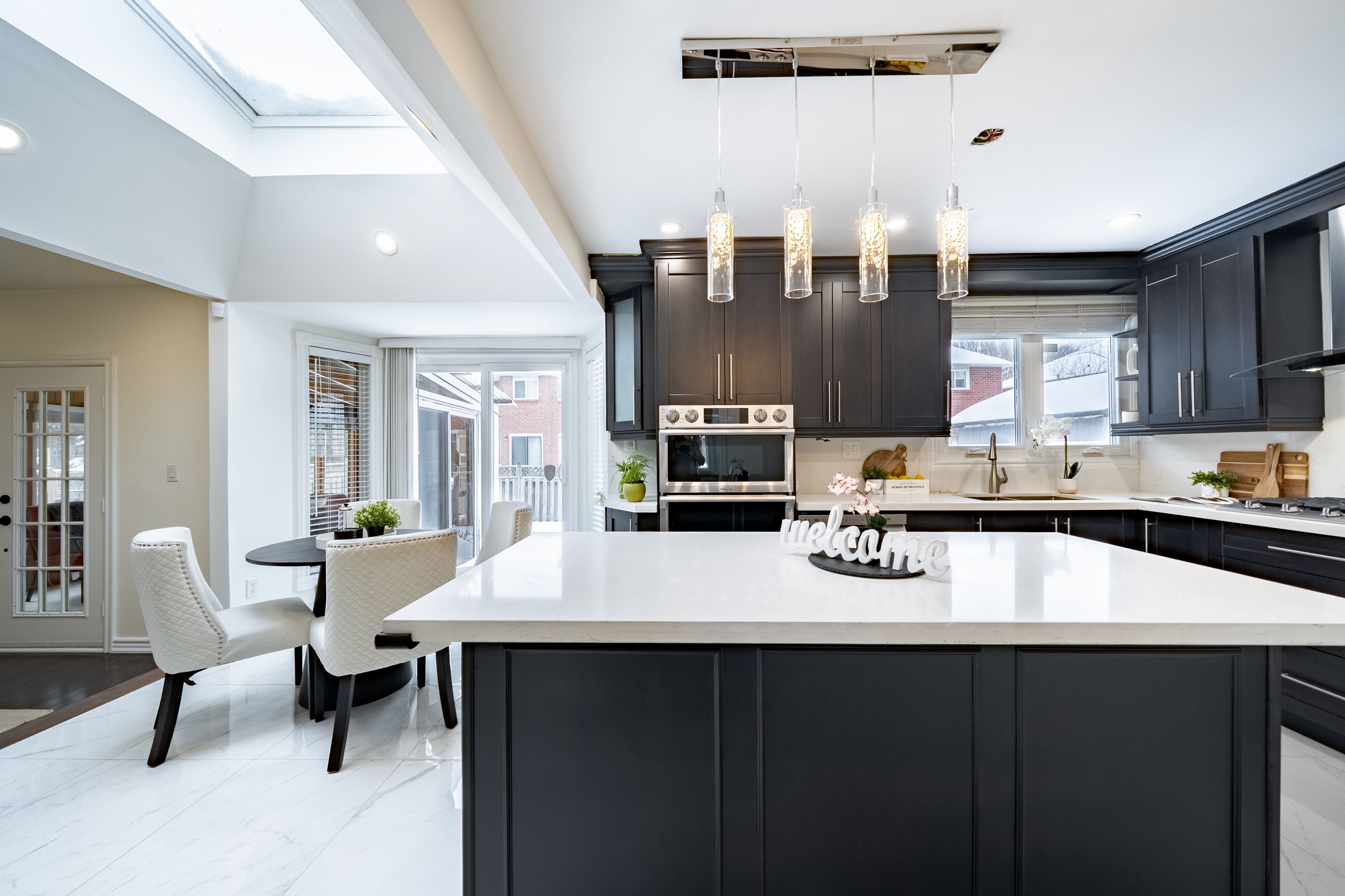 In the heart of sought-after Unionville, Markham, discover this spacious, beautifully updated, move-in ready family home offering approx. 4,200sf of meticulously finished living space (2818sf above grade MPAC) including a finished basement with a separate side entrance, ideal for extended family or future rental potential. Functional enclosed front porch, hardwood flooring throughout, pot lights, main-floor laundry, and direct garage access. Spacious living room with an east-facing bay window connects to a designer-lit dining room, perfect for entertaining; Chef-inspired kitchen with a large centre island, quartz counters, high-end built-in appliances, gas stove, soft-close cabinetry, plus a bright skylight over the breakfast area with a walk-out to a large backyard and wooden deck. Cozy up in the family room with fireplace and higher ceilings, flowing into a window-wrapped sunroom for an indoor-outdoor living/dining experience. Upstairs offers 4 bedrooms and 2 fully updated bathrooms; the primary retreat impresses with a grand vaulted ceiling, walk-in closet, and spa-like ensuite with double sinks, oversized glass shower, and modern standalone tub, while the other bedrooms are generously sized with large windows. The finished basement with Vinyl flooring adds a large open-concept space with 200-amp service, wet bar/kitchenette potential, an updated full bath with glass shower, an extra powder room, and 2 additional bedrooms. Steps to Main Street Unionville, close to York University Markham Campus, Downtown Markham, First Markham Place, parks/trails, and top rated schools such as Coledale P.S., Unionville H.S., St. Justin Martyr Catholic Elementary School and St. Augustine Catholic H.S.; Quick access to Unionville GO Station and Hwy 407, truly a commuter's dream! Do Not Miss!