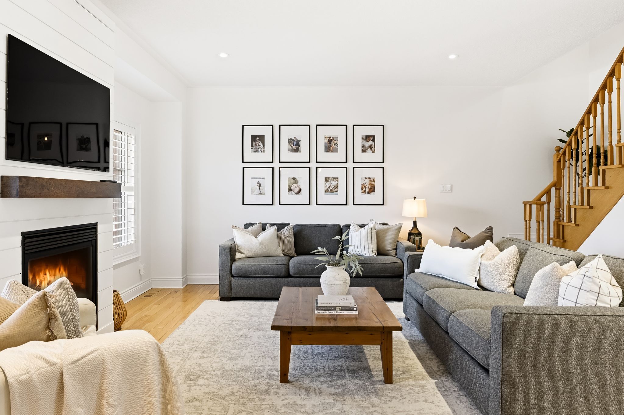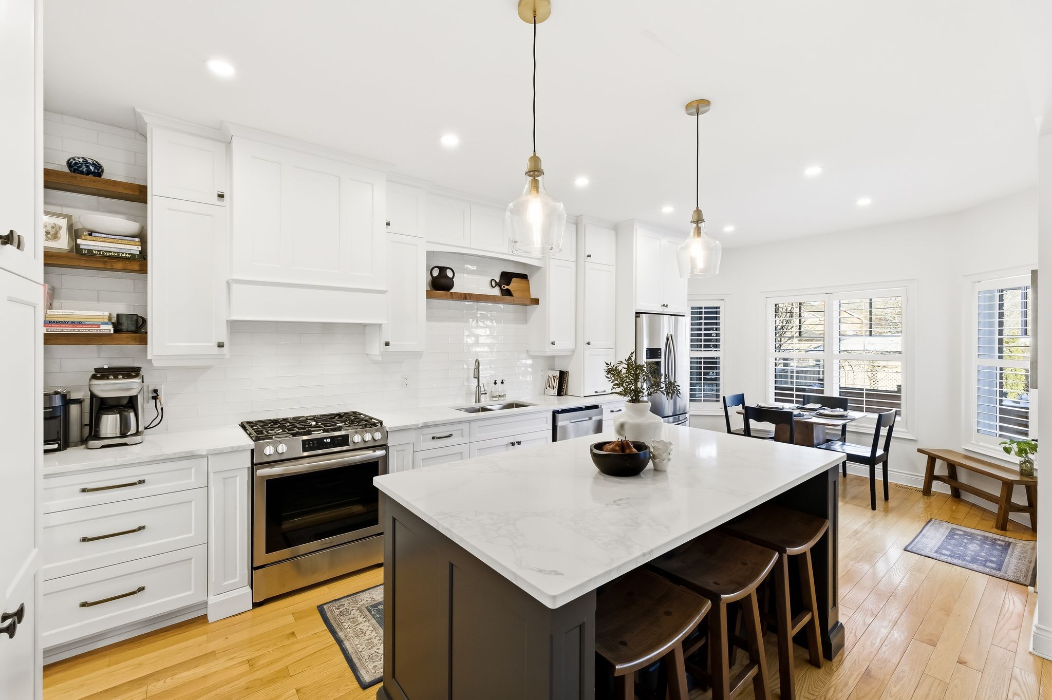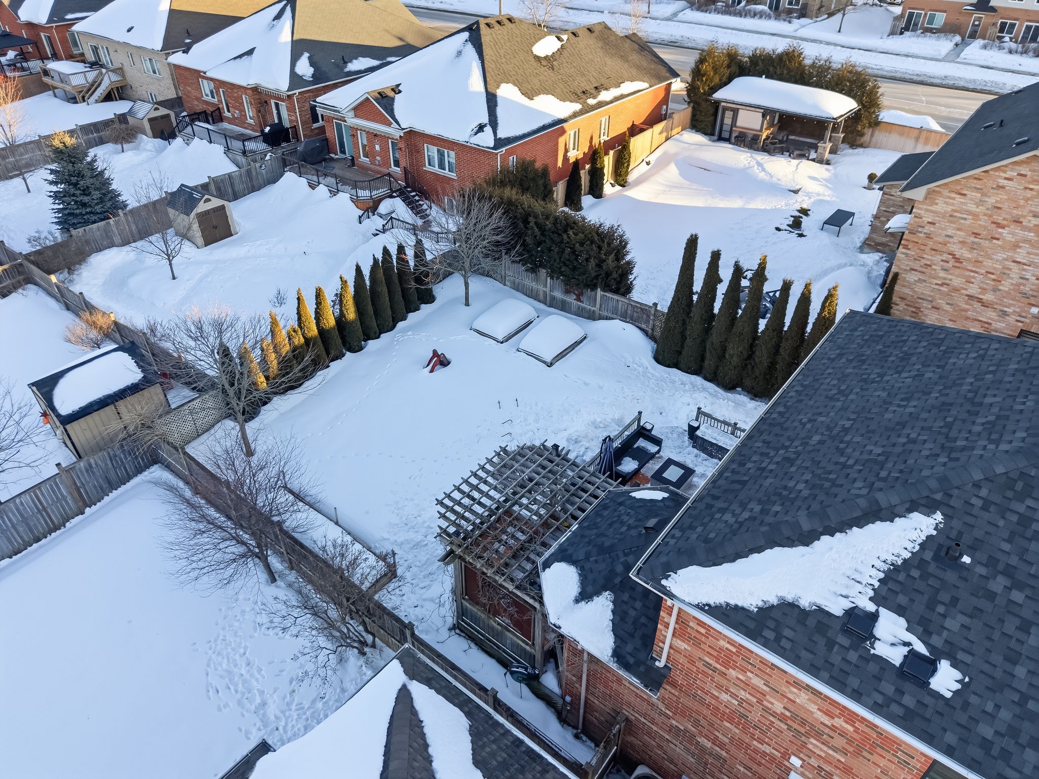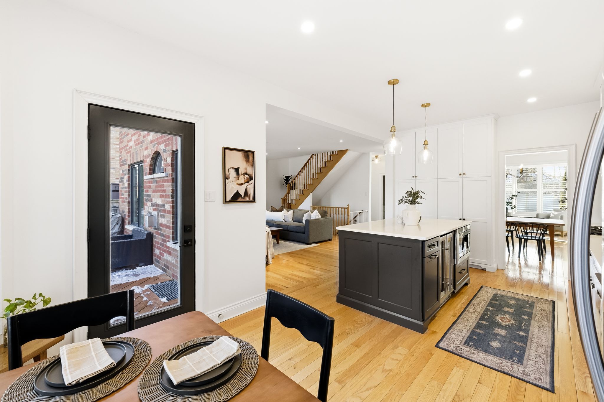 Extentensively upgraded with high-end custom finishes throughout, this 2,285 sq ft home offers beautiful natural light with generous flow across all three levels, and is set on a private 50x119 ft lot. The main floor features 9-ft ceilings and a stunning open-concept kitchen with S/S appliances, quartz countertops, custom cabinetry, large centre island, beverage fridge, and eat-in area, seamlessly connected to a spacious living room. A shiplap feature wall with gas fireplace and built-in extendable TV creates a striking focal point, while new windows with California shutters flood the space with light. Main floor and basement lighting are upgraded with Lutron dimmers. A professionally upgraded 2-car garage, fully brick veneered and finished with reclaimed beams, T&G ceilings, pot lights, heater, and new high-lift garage doors, is a true standout. Every bathroom has been fully updated with elevated finishes. The upstairs main bath features herringbone floor tile, while the primary suite includes a shiplap feature wall with fireplace and TV, his/hers closets, and a renovated ensuite with penny tile flooring and glass walk-in shower. Second-floor laundry adds everyday convenience. The fully finished basement extends the living space with a dedicated lounge/TV area and a wet bar featuring quartz countertops with dishwasher and fridge. A fourth bathroom adds convenience for guests or gatherings. Fully fenced backyard positioned for privacy, with no direct rear-facing neighbours. Significant exterior investments include a new roof (21), all new windows and doors (20), automated landscape sprinklers, and three raised garden boxes. The front landscaping is professionally finished with substantial armour stone steps and strong curb appeal - reflecting the same level of care and upgrade seen throughout the interior. Curated, refined, and finished to the highest standard - with an unmatched garage and a private lot. Turnkey perfection!