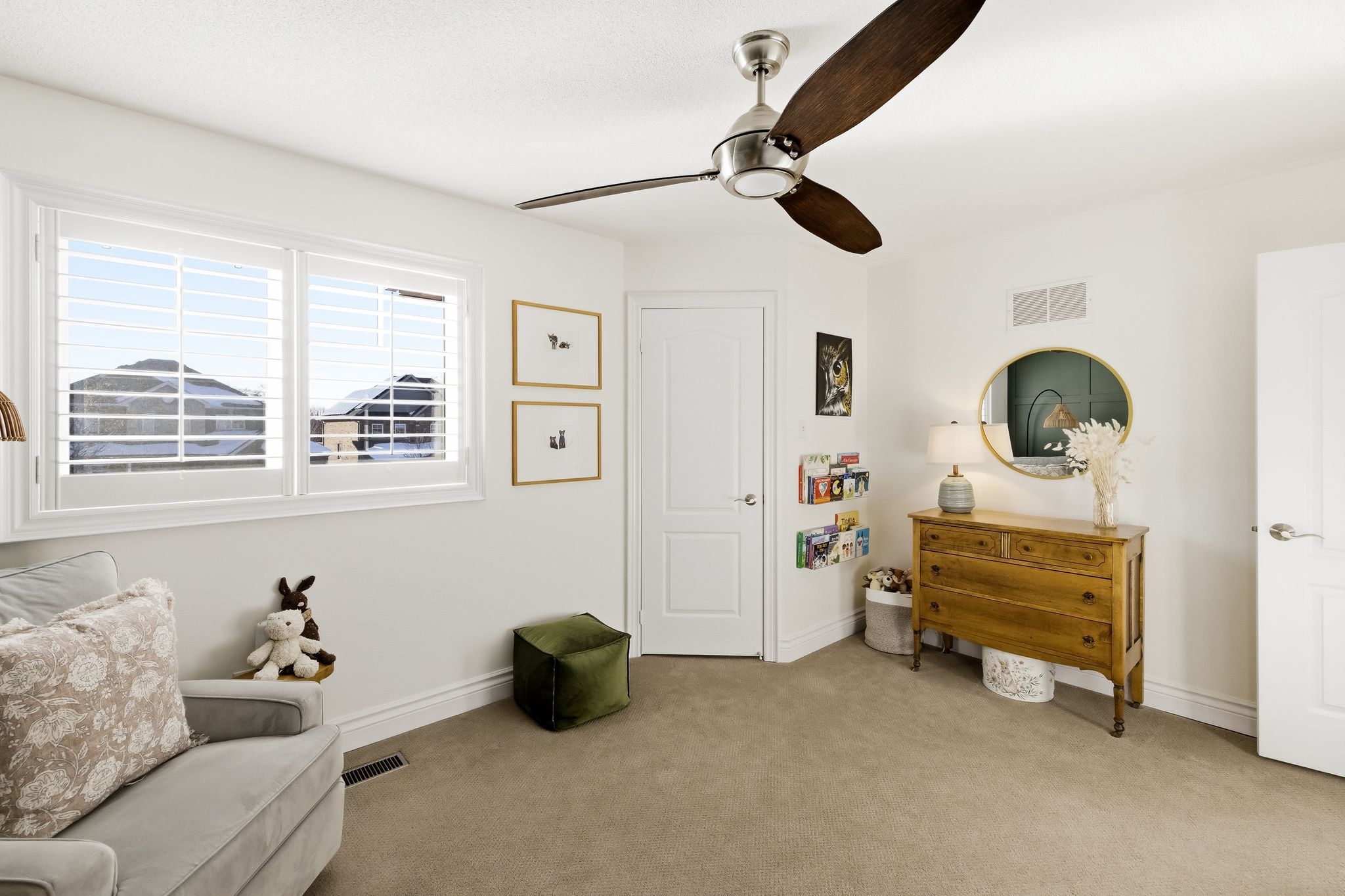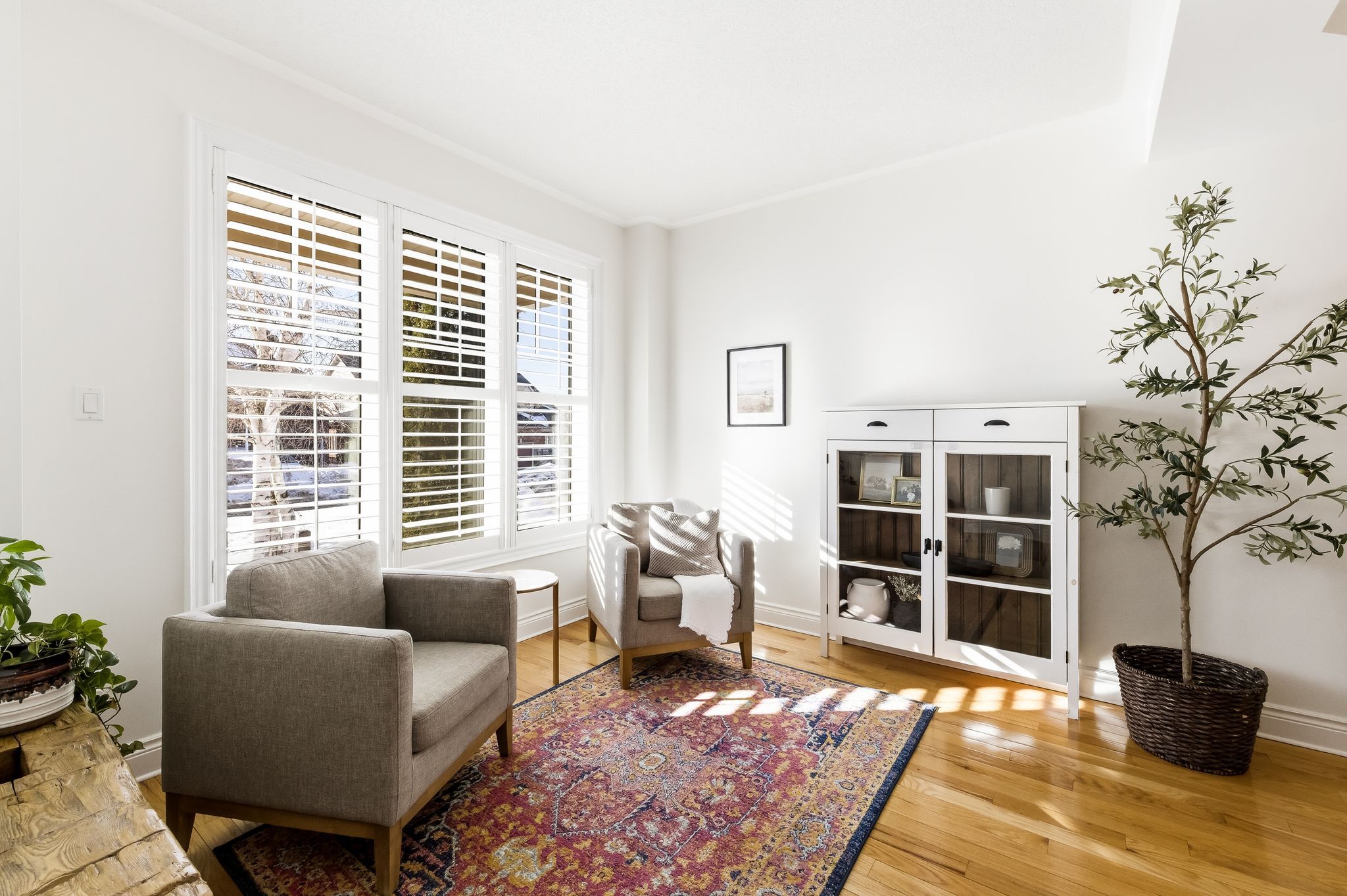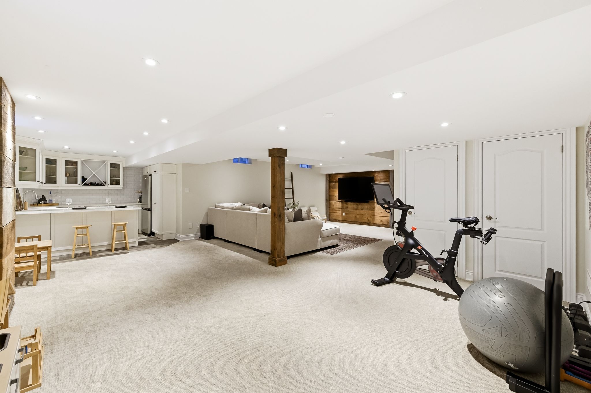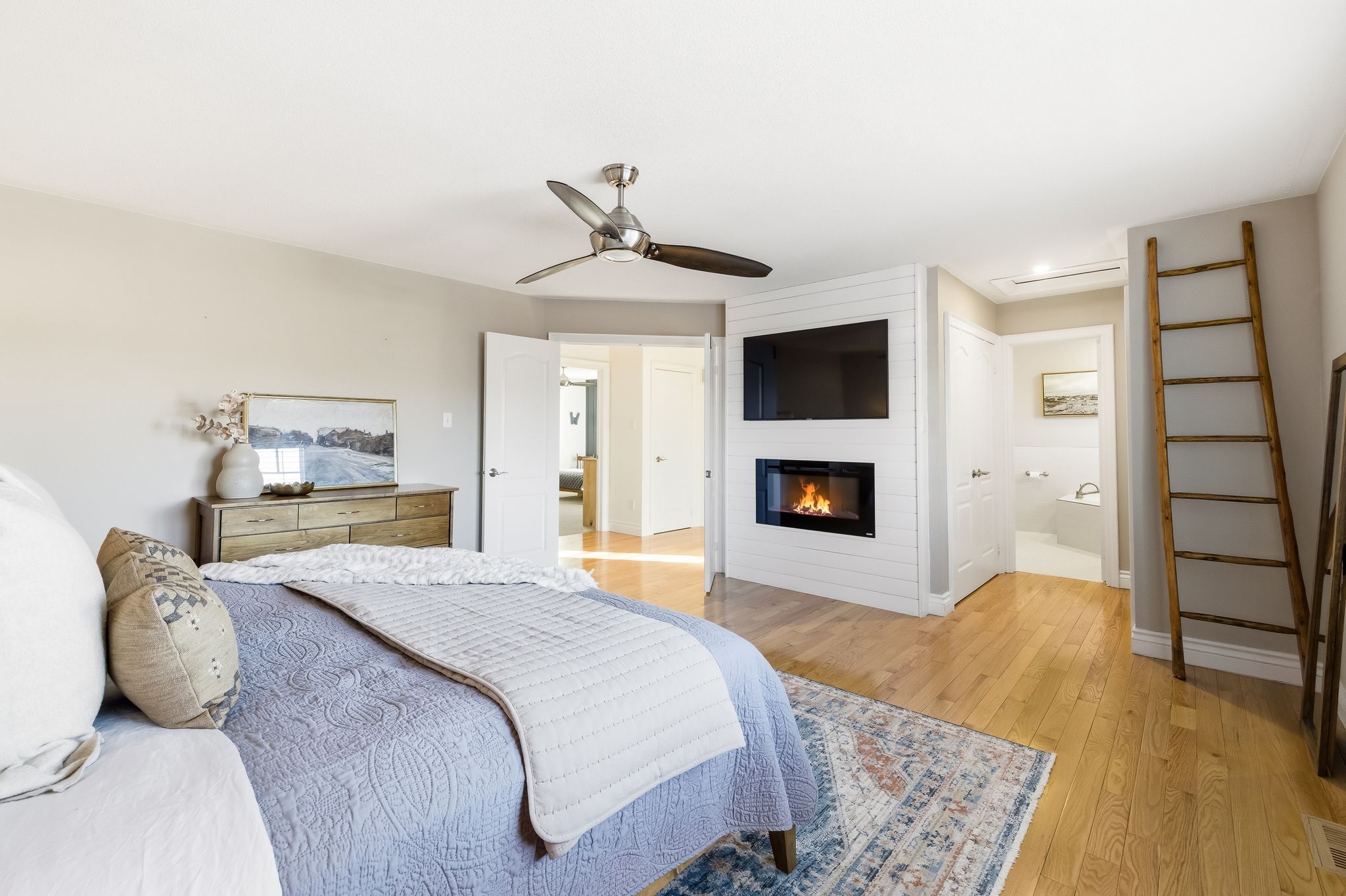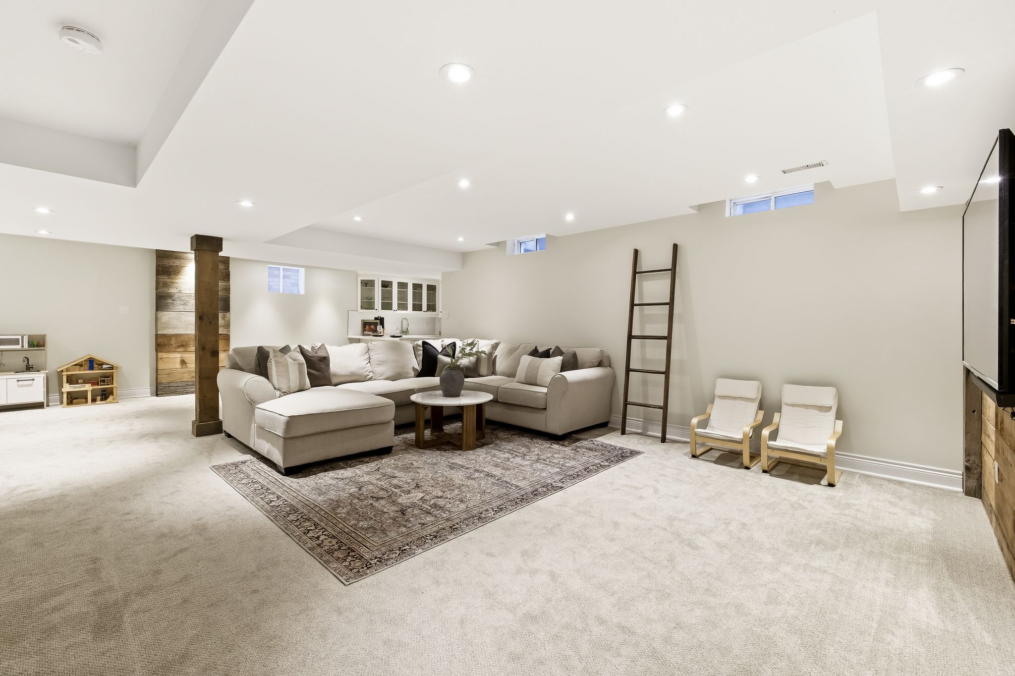 Extentensively upgraded with high-end custom finishes throughout, this 2,285 sq ft home offers beautiful natural light with generous flow across all three levels, and is set on a private 50x119 ft lot. The main floor features 9-ft ceilings and a stunning open-concept kitchen with S/S appliances, quartz countertops, custom cabinetry, large centre island, beverage fridge, and eat-in area, seamlessly connected to a spacious living room. A shiplap feature wall with gas fireplace and built-in extendable TV creates a striking focal point, while new windows with California shutters flood the space with light. Main floor and basement lighting are upgraded with Lutron dimmers. A professionally upgraded 2-car garage, fully brick veneered and finished with reclaimed beams, T&G ceilings, pot lights, heater, and new high-lift garage doors, is a true standout. Every bathroom has been fully updated with elevated finishes. The upstairs main bath features herringbone floor tile, while the primary suite includes a shiplap feature wall with fireplace and TV, his/hers closets, and a renovated ensuite with penny tile flooring and glass walk-in shower. Second-floor laundry adds everyday convenience. The fully finished basement extends the living space with a dedicated lounge/TV area and a wet bar featuring quartz countertops with dishwasher and fridge. A fourth bathroom adds convenience for guests or gatherings. Fully fenced backyard positioned for privacy, with no direct rear-facing neighbours. Significant exterior investments include a new roof (21), all new windows and doors (20), automated landscape sprinklers, and three raised garden boxes. The front landscaping is professionally finished with substantial armour stone steps and strong curb appeal - reflecting the same level of care and upgrade seen throughout the interior. Curated, refined, and finished to the highest standard - with an unmatched garage and a private lot. Turnkey perfection!