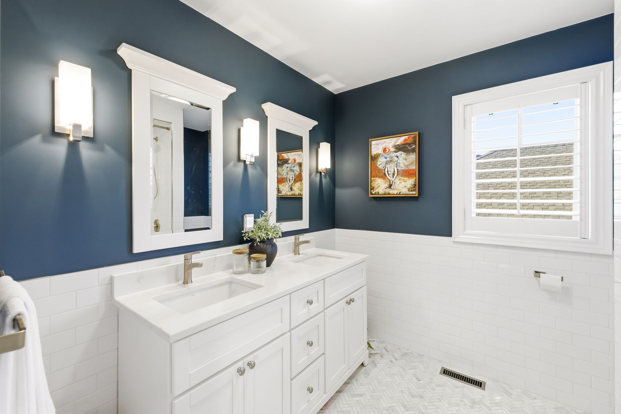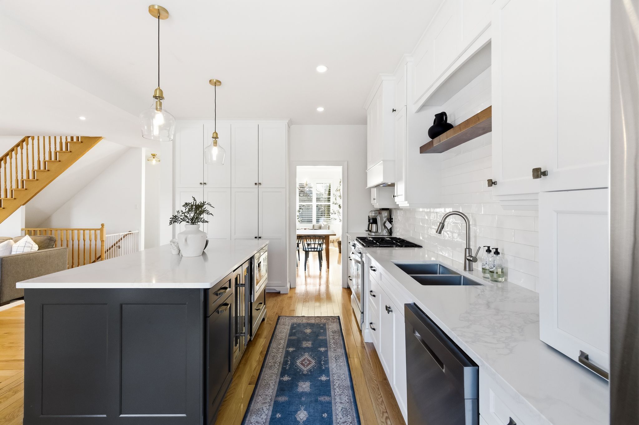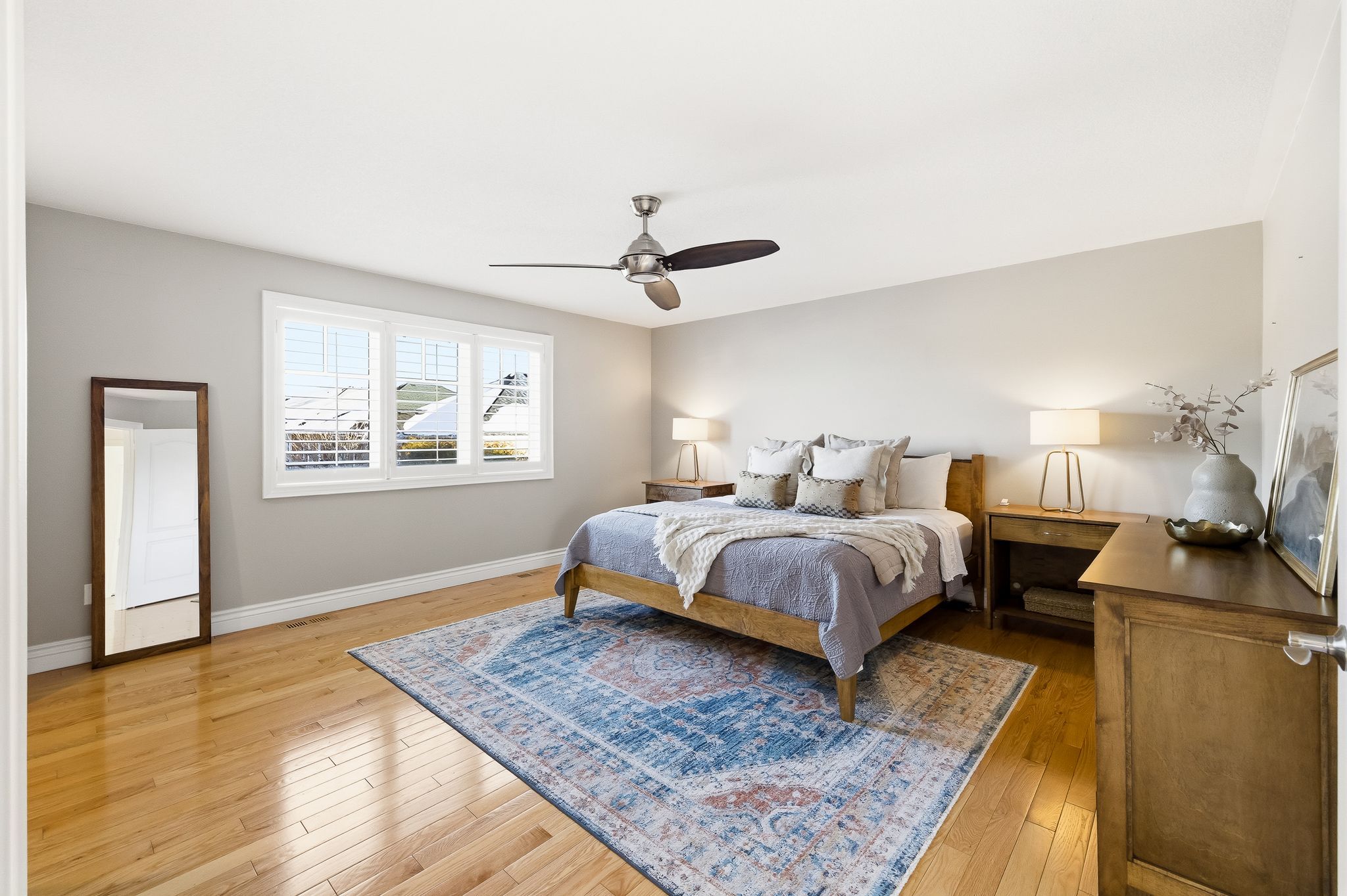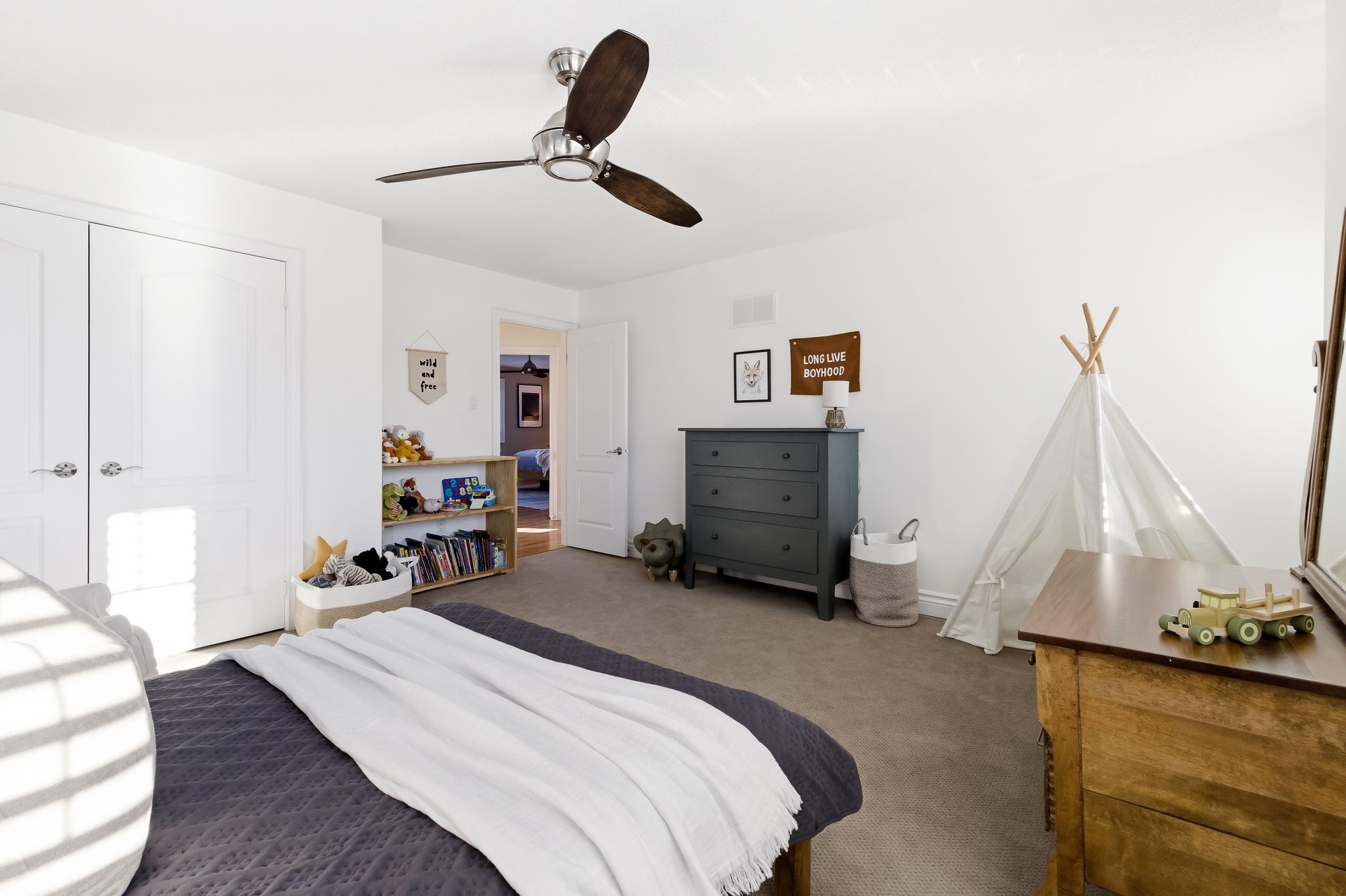 Extentensively upgraded with high-end custom finishes throughout, this 2,285 sq ft home offers beautiful natural light with generous flow across all three levels, and is set on a private 50x119 ft lot. The main floor features 9-ft ceilings and a stunning open-concept kitchen with S/S appliances, quartz countertops, custom cabinetry, large centre island, beverage fridge, and eat-in area, seamlessly connected to a spacious living room. A shiplap feature wall with gas fireplace and built-in extendable TV creates a striking focal point, while new windows with California shutters flood the space with light. Main floor and basement lighting are upgraded with Lutron dimmers. A professionally upgraded 2-car garage, fully brick veneered and finished with reclaimed beams, T&G ceilings, pot lights, heater, and new high-lift garage doors, is a true standout. Every bathroom has been fully updated with elevated finishes. The upstairs main bath features herringbone floor tile, while the primary suite includes a shiplap feature wall with fireplace and TV, his/hers closets, and a renovated ensuite with penny tile flooring and glass walk-in shower. Second-floor laundry adds everyday convenience. The fully finished basement extends the living space with a dedicated lounge/TV area and a wet bar featuring quartz countertops with dishwasher and fridge. A fourth bathroom adds convenience for guests or gatherings. Fully fenced backyard positioned for privacy, with no direct rear-facing neighbours. Significant exterior investments include a new roof (21), all new windows and doors (20), automated landscape sprinklers, and three raised garden boxes. The front landscaping is professionally finished with substantial armour stone steps and strong curb appeal - reflecting the same level of care and upgrade seen throughout the interior. Curated, refined, and finished to the highest standard - with an unmatched garage and a private lot. Turnkey perfection!