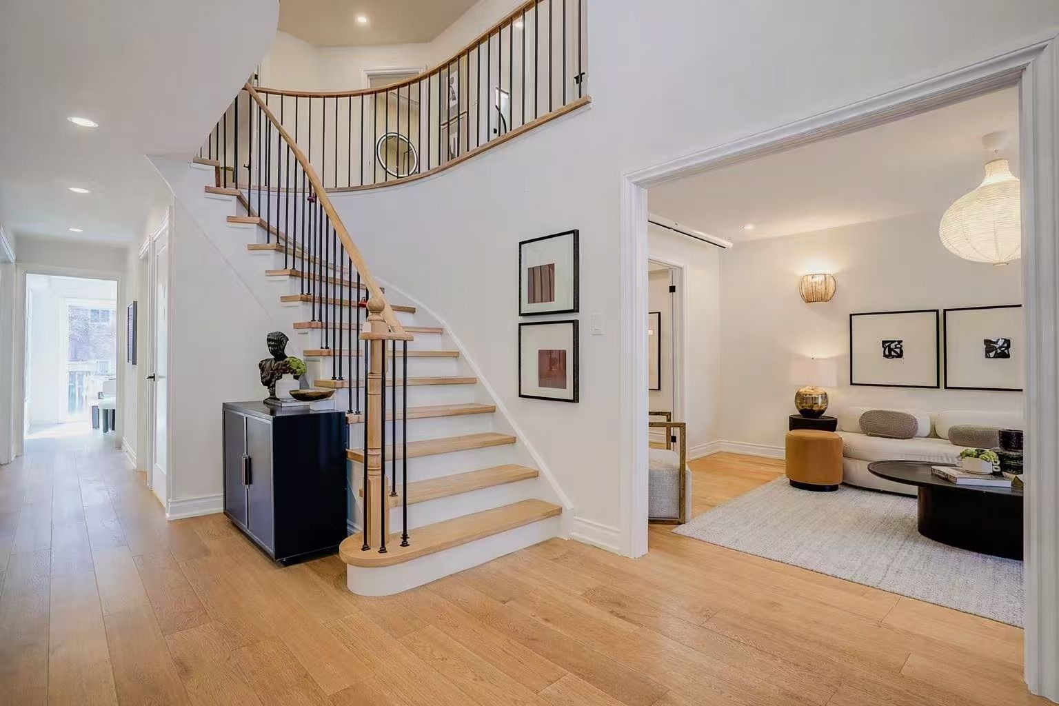 Location, Location, Location! Welcome to 78 John Stiver Crescent, a beautifully renovated home in the highly sought-after Buttonville community of Markham. Renovated top to bottom with quality finishes and thoughtful design, this residence offers exceptional comfort and functionality. The chef-inspired eat-in kitchen (2025) features quartz countertops and backsplash, under-cabinet lighting, and custom modern cabinetry. The bright breakfast area offers a seamless walkout to the backyard. The main floor boasts spacious living and dining areas, a cozy family room with fireplace, a private office, a rare 3-piece bathroom, main-floor laundry, and direct access to the garage-ideal for everyday convenience. Engineering Hardwood Flooring on main and second(2023). A curved staircase with black wrought iron railing (2022) leads to the second level, offering 4 generously sized bedrooms and 3 bathrooms. The professionally finished basement (2023) provides excellent versatility with 2 rooms, a kitchen, a 3-piece bathroom, and a large entertainment area. Rough-in for additional laundry included. Roof (2024), dimmable pot lights(2023), Heat Pump(2024). Close to Top-ranked schools - Buttonville PS, Unionville HS. Steps to parks, shopping ,banks and transit, with easy access to Hwy 404, Hwy 7, and GO Transit.