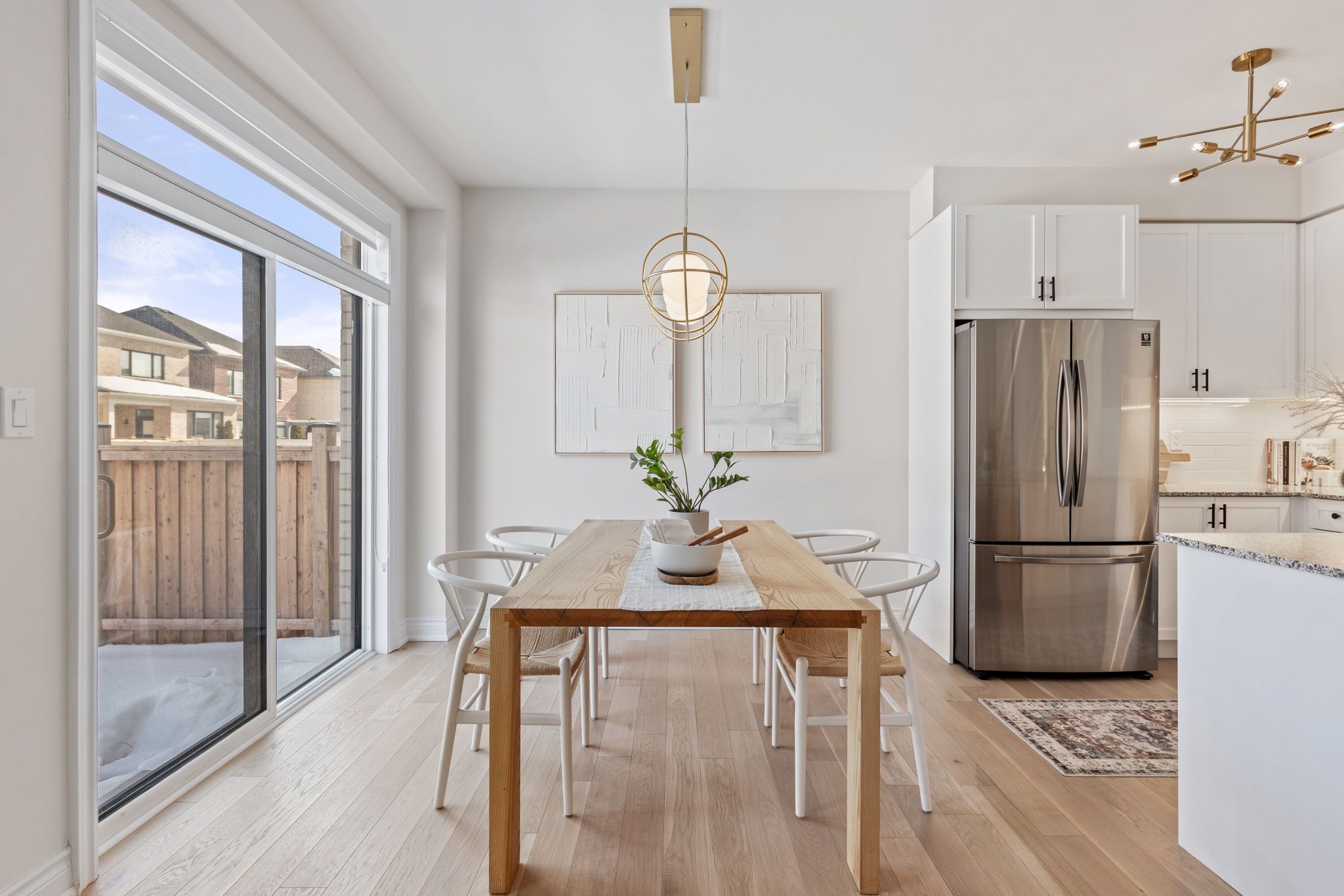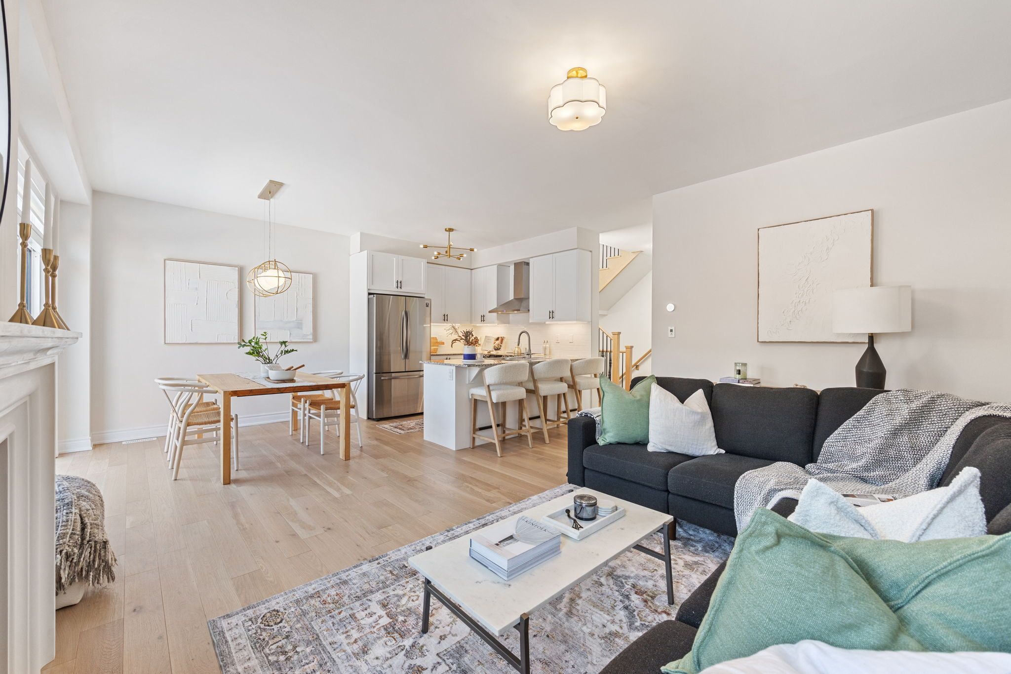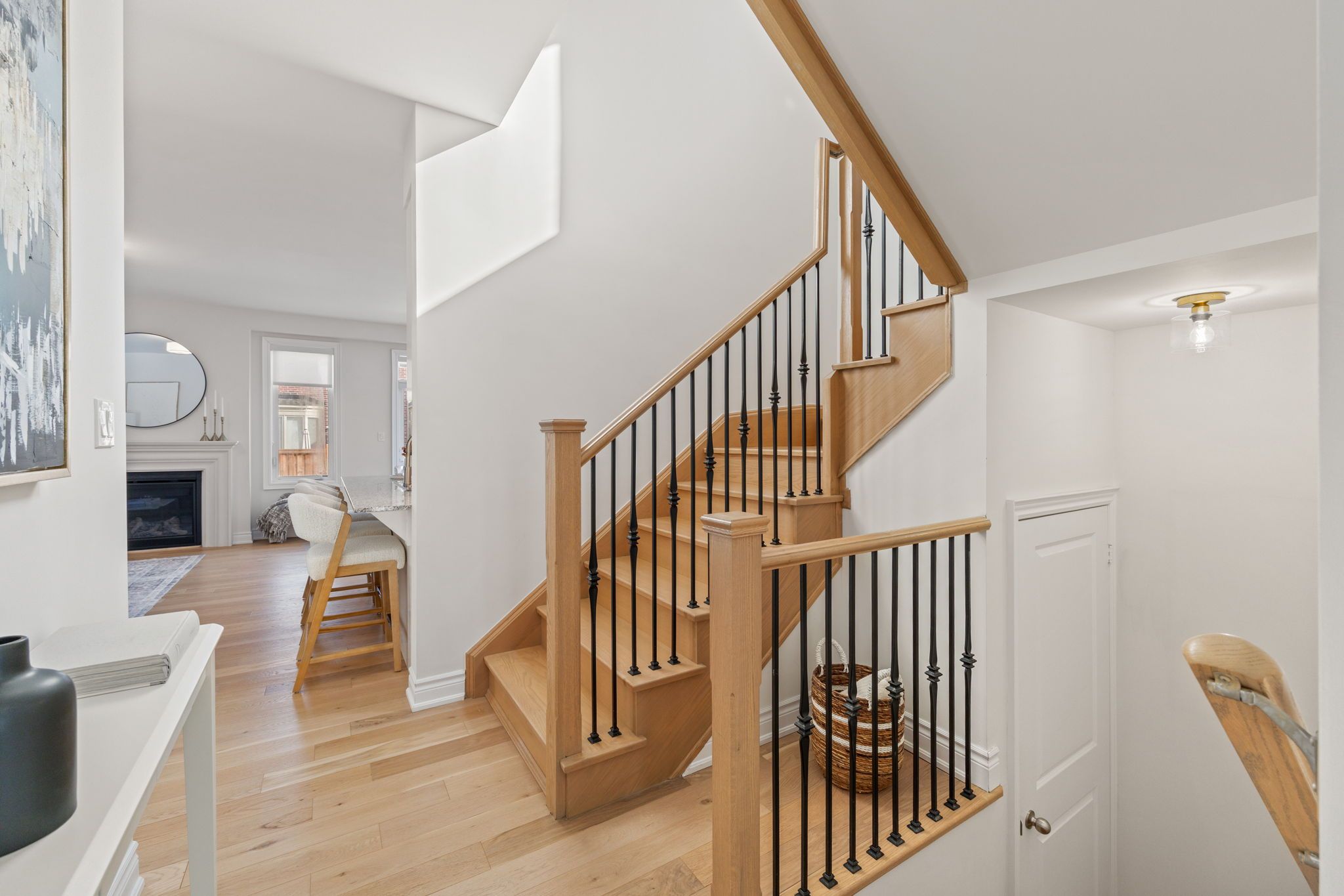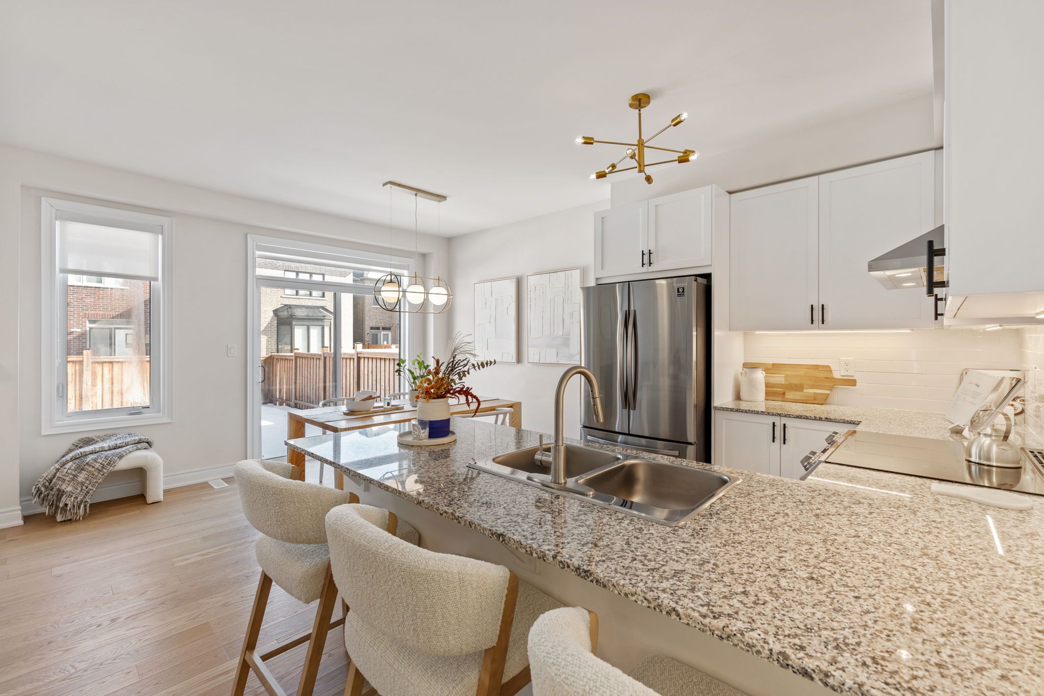 Move-in ready 3-bedroom home in the prestigious New Kleinburg community. Featuring a striking modern exterior with no sidewalk. Oversized windows flood the home with natural lighting. Designer-inspired light color palette creating a warm and inviting atmosphere throughout. Bright open-concept layout with 9' ceilings on both levels. Upgraded light fixtures. The main floor features 5" white oak engineered hardwood throughout (including the kitchen), under-cabinet lighting, limestone fireplace mantle, upgraded metal pickets. The primary bedroom offers a 10' tray ceiling and an ensuite bathroom with a frameless glass shower, double sink, modern soaker tub. Large private backyard. 200-amp electrical panel, EV charger rough-in. Prime location with quick access to Hwy 427, highly rated schools, parks, Kleinburg Village and new plaza nearby for everyday convenience.