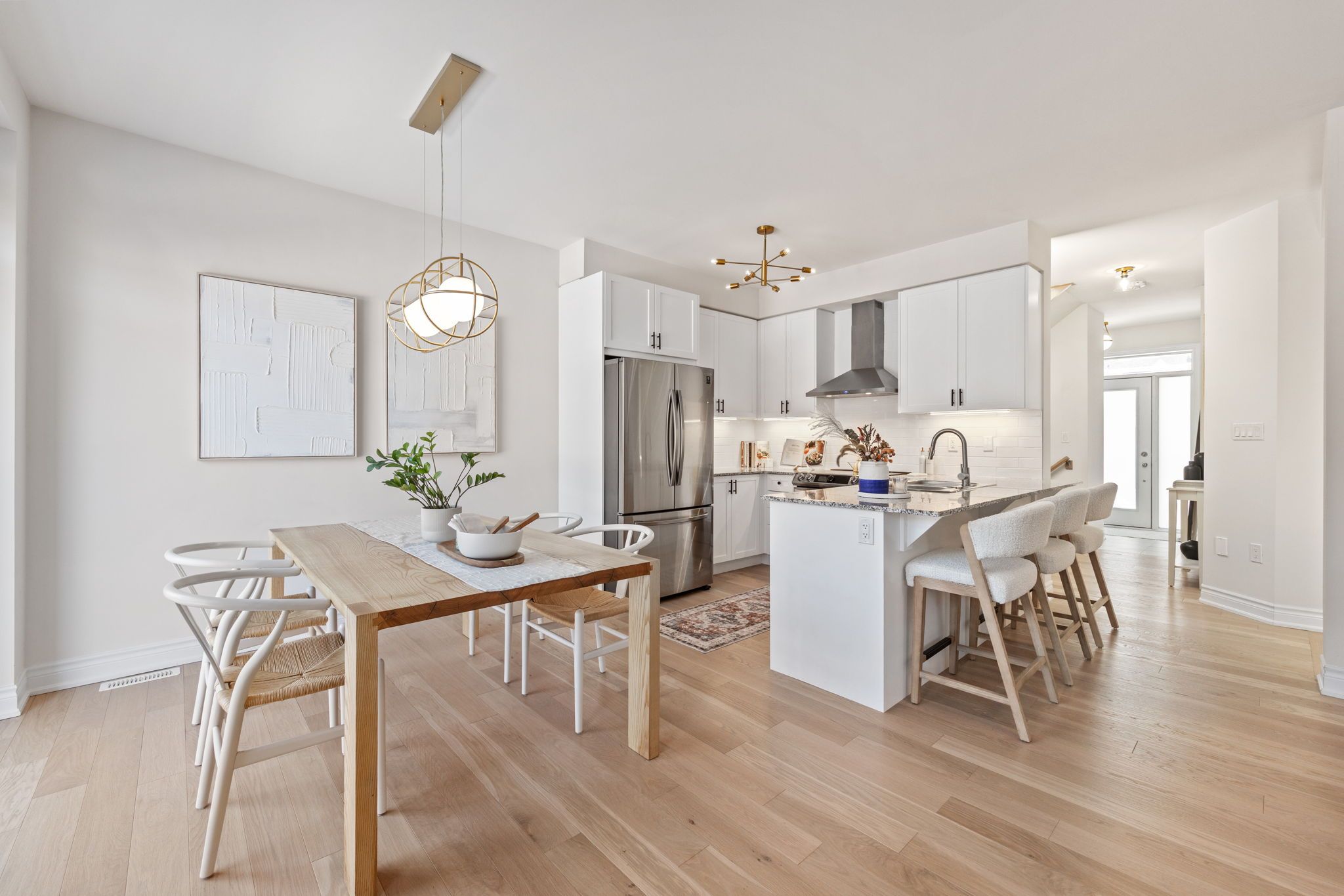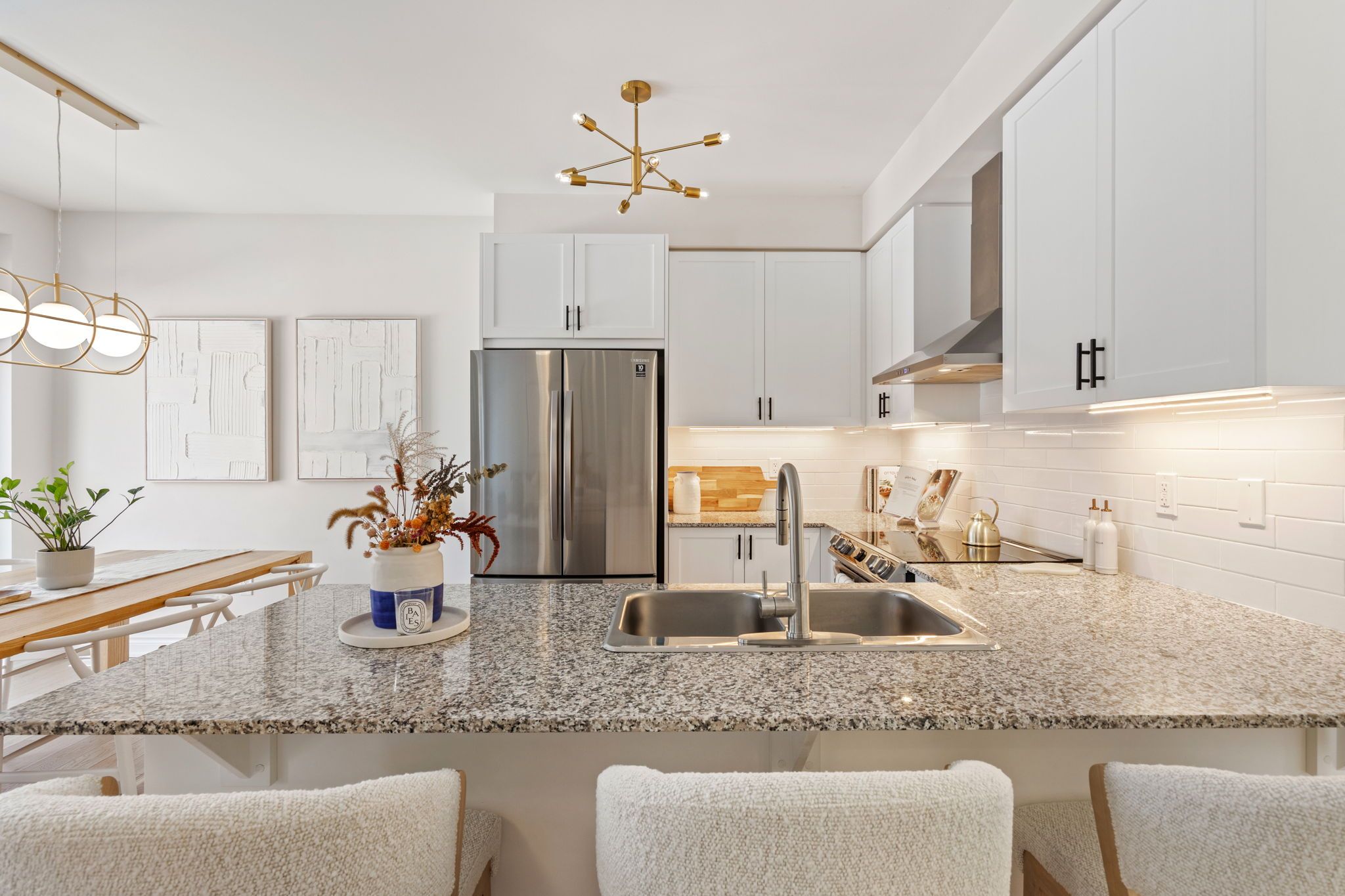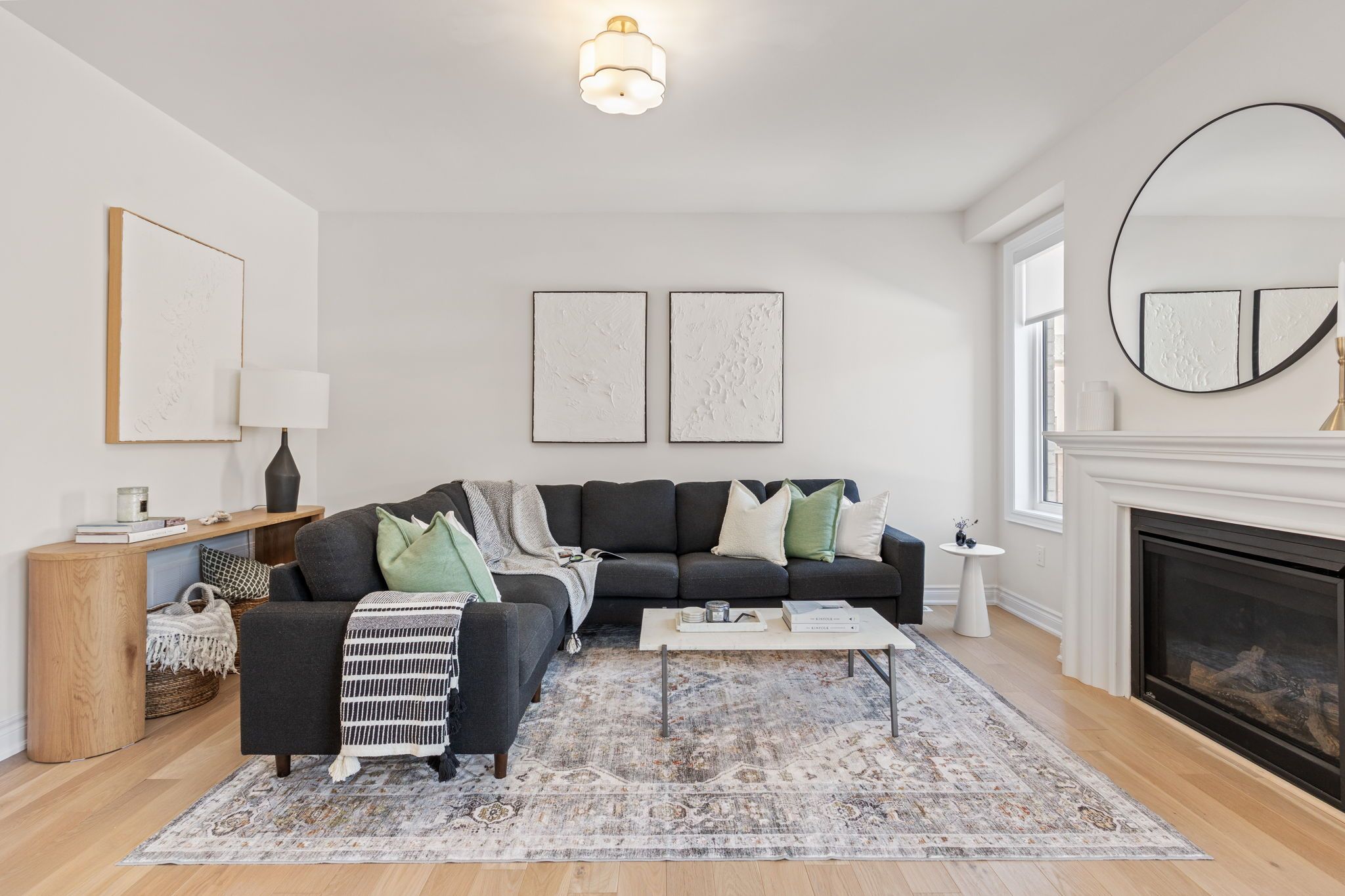 Move-in ready 3-bedroom home in the prestigious New Kleinburg community. Featuring a striking modern exterior with no sidewalk. Oversized windows flood the home with natural lighting. Designer-inspired light color palette creating a warm and inviting atmosphere throughout. Bright open-concept layout with 9' ceilings on both levels. Upgraded light fixtures. The main floor features 5" white oak engineered hardwood throughout (including the kitchen), under-cabinet lighting, limestone fireplace mantle, upgraded metal pickets. The primary bedroom offers a 10' tray ceiling and an ensuite bathroom with a frameless glass shower, double sink, modern soaker tub. Large private backyard. 200-amp electrical panel, EV charger rough-in. Prime location with quick access to Hwy 427, highly rated schools, parks, Kleinburg Village and new plaza nearby for everyday convenience.