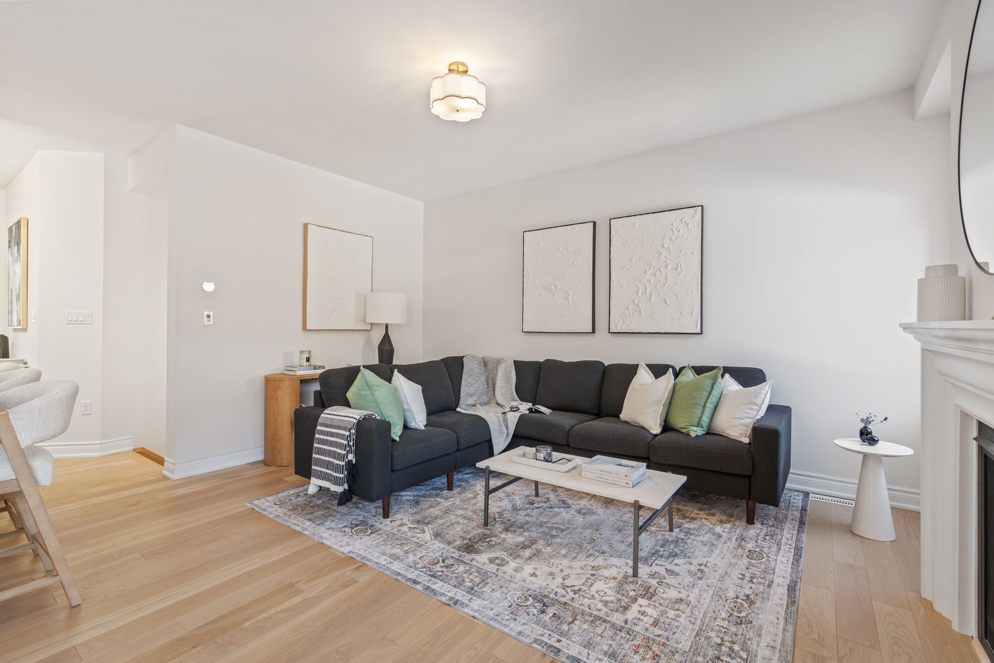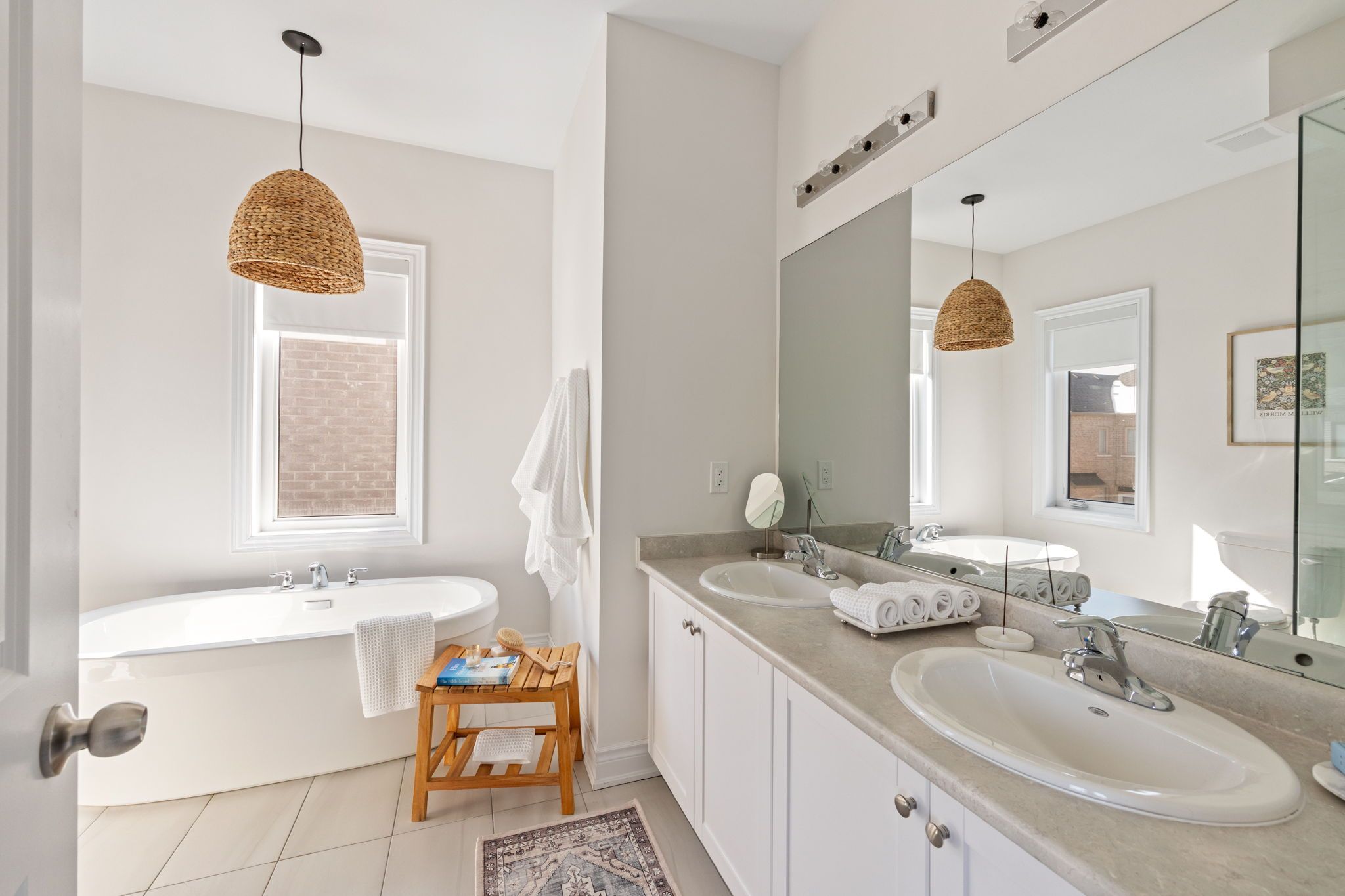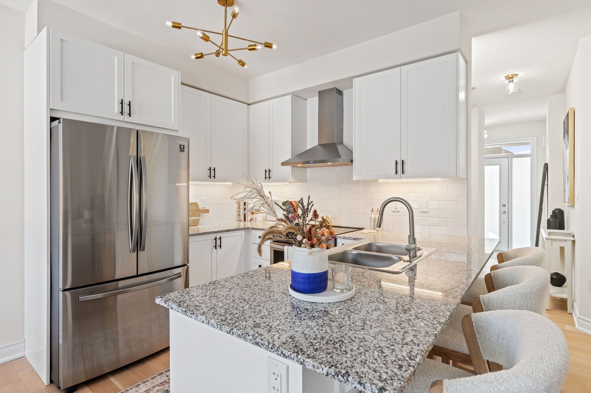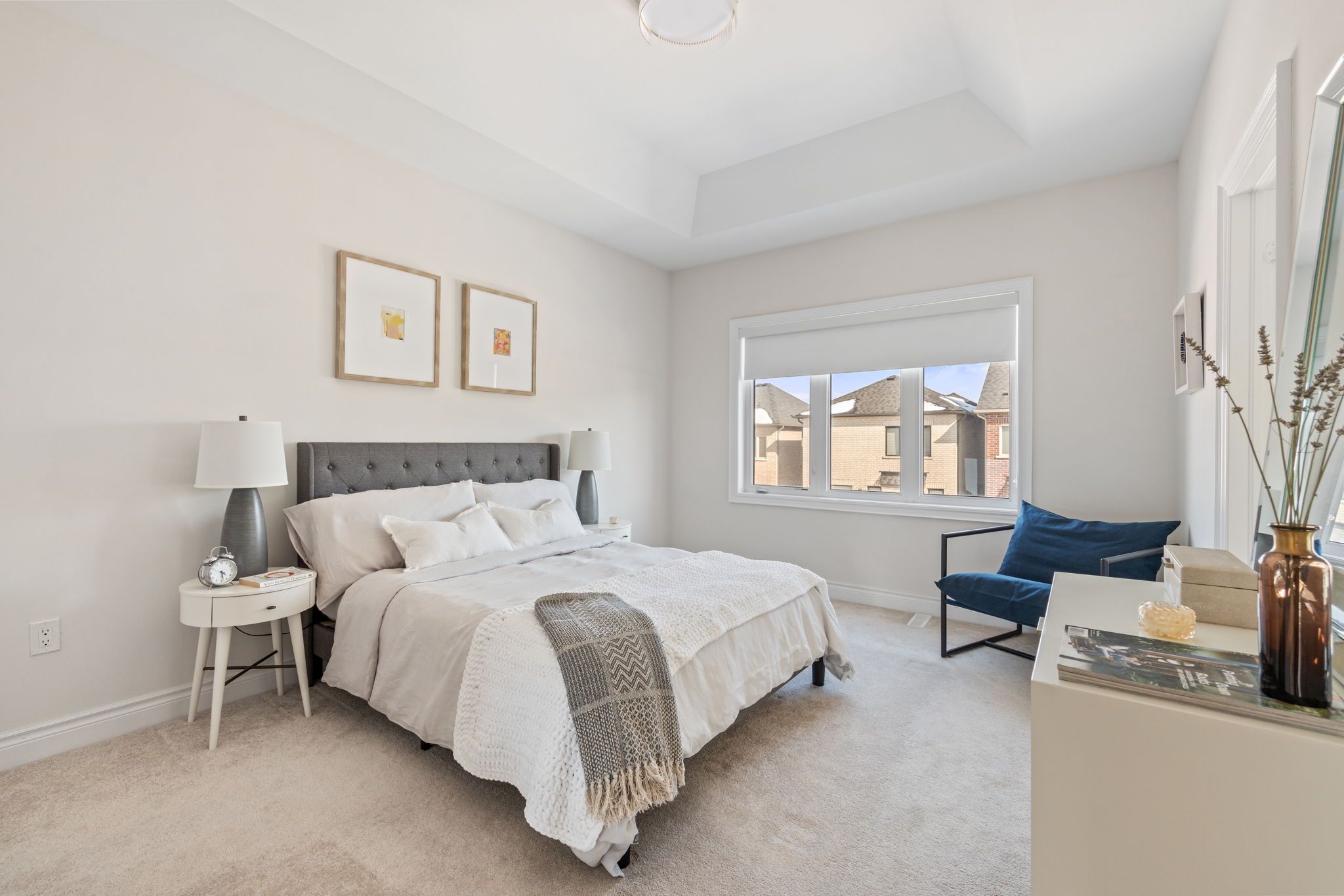 Move-in ready 3-bedroom home in the prestigious New Kleinburg community. Featuring a striking modern exterior with no sidewalk. Oversized windows flood the home with natural lighting. Designer-inspired light color palette creating a warm and inviting atmosphere throughout. Bright open-concept layout with 9' ceilings on both levels. Upgraded light fixtures. The main floor features 5" white oak engineered hardwood throughout (including the kitchen), under-cabinet lighting, limestone fireplace mantle, upgraded metal pickets. The primary bedroom offers a 10' tray ceiling and an ensuite bathroom with a frameless glass shower, double sink, modern soaker tub. Large private backyard. 200-amp electrical panel, EV charger rough-in. Prime location with quick access to Hwy 427, highly rated schools, parks, Kleinburg Village and new plaza nearby for everyday convenience.