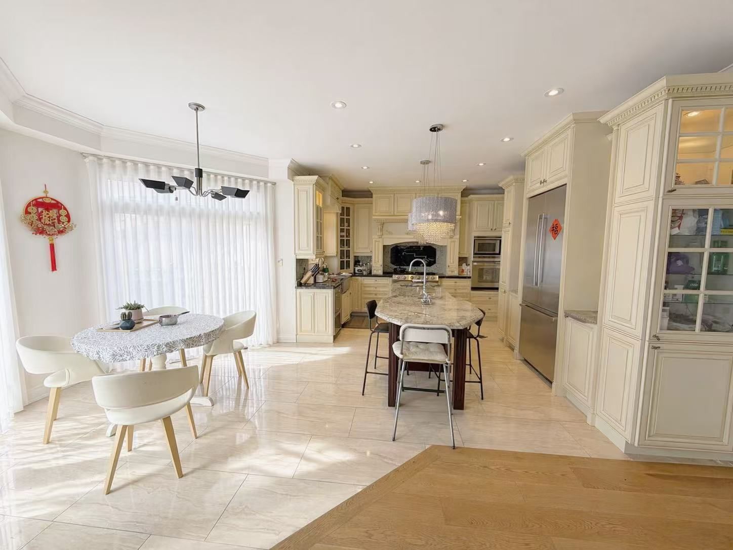 Location! Location! Location! **3429sf** spectacularly designed renovation $$$ spent on upgrades throughout. Featuring gleaming engineering hardwood floors and potlights on the main and 2nd level. Bedroom and office on the main floor for convenience. Enjoy a stunning Soaring ceilings in dining room, creating a warm and inviting atmosphere. The Chef's kitchen boasts upgraded countertops, cabinetry, built-in stainless steel appliances. Elegant circular staircase. Spacious primary bedroom includes 5pc ensuite and a large walk in closet. Ideally situated just steps to shops, parks, top-rated schools, GO Transit, and more-offering exceptional convenience and lifestyle.**Property can be furnished or unfurnished**
