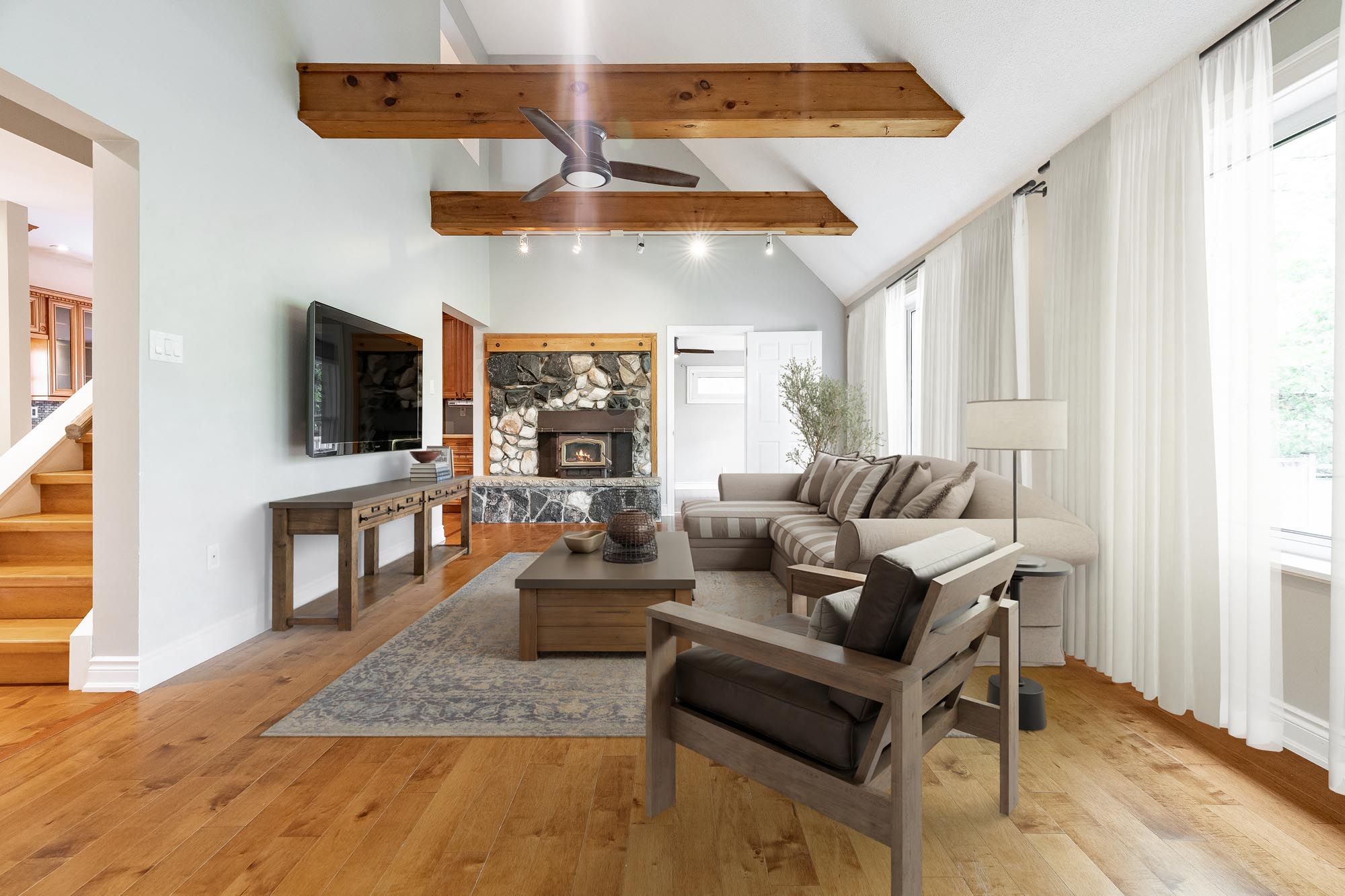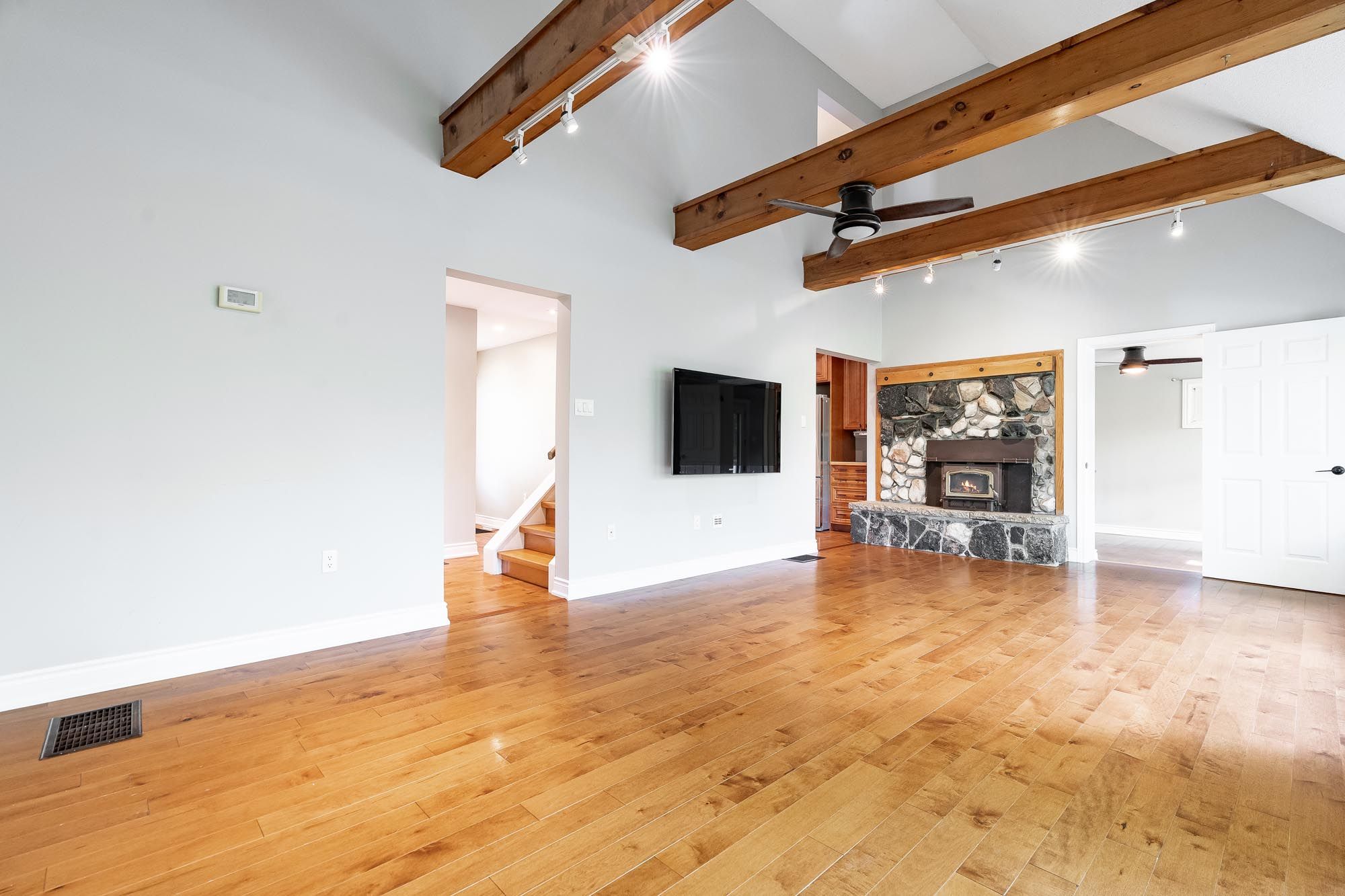 Top 5 Reasons You Will Love This Home: 1) Enjoy a generous 50'x230' lot with over 50' of waterfront, spacious backyard areas perfect for entertaining, relaxing, or heading down the stairs to kayak, boat, fish, or simply take in the river views 2) This detached 2-storey home with a finished basement features a welcoming covered front deck, main level laundry, a bright bedroom with walkout to the backyard, and a renovated4-piece bathroom with a soaker tub and separate shower for added comfort 3) The kitchen includes stainless-steel appliances, a pantry, and dining space, while the living room offers a cozy wood fireplace with a stone surround and oversized windows showcasing peaceful backyard and river views; upstairs, the primary bedroom has a walkout to a large balcony overlooking the water, plus a third bedroom and another 4-piece bathroom, great for guests or extended family 4) Expansive basement hosting a large family room, a recreation area with rough-in for a kitchen or wet bar, a fourth bedroom, another full bathroom, and an oversized cold room ideal for extra storage 5) Set on a quiet street ending in a cul-de-sac, this home offers peace and privacy close to schools, shops, golf, ski hills, and the sandy beaches of Georgian Bay, while still being a convenient commute to Barrie and the GTA. 1,743 above grade sq.ft. plus a finished basement. *Please note some images have been virtually staged to show the potential of the home.