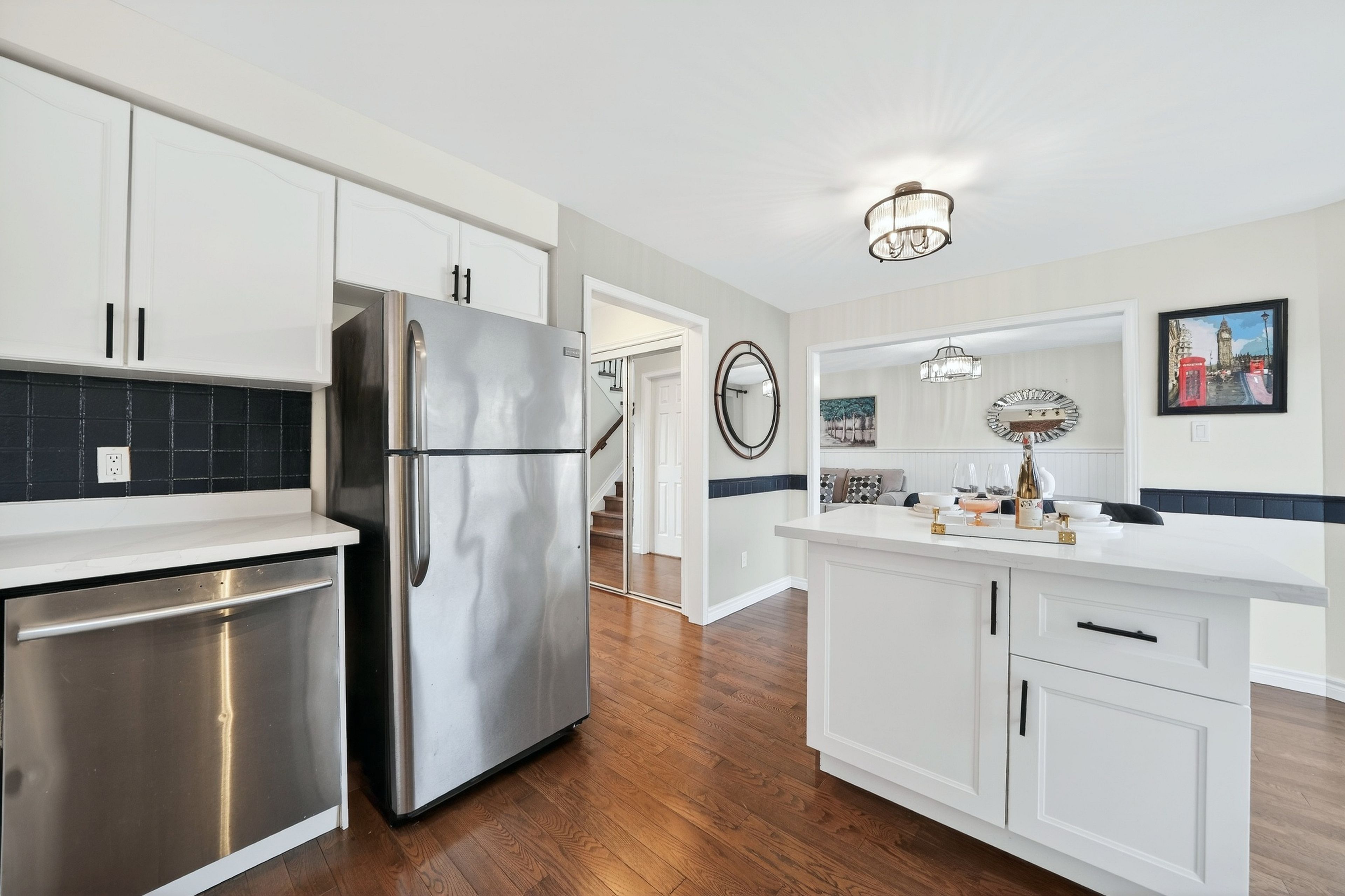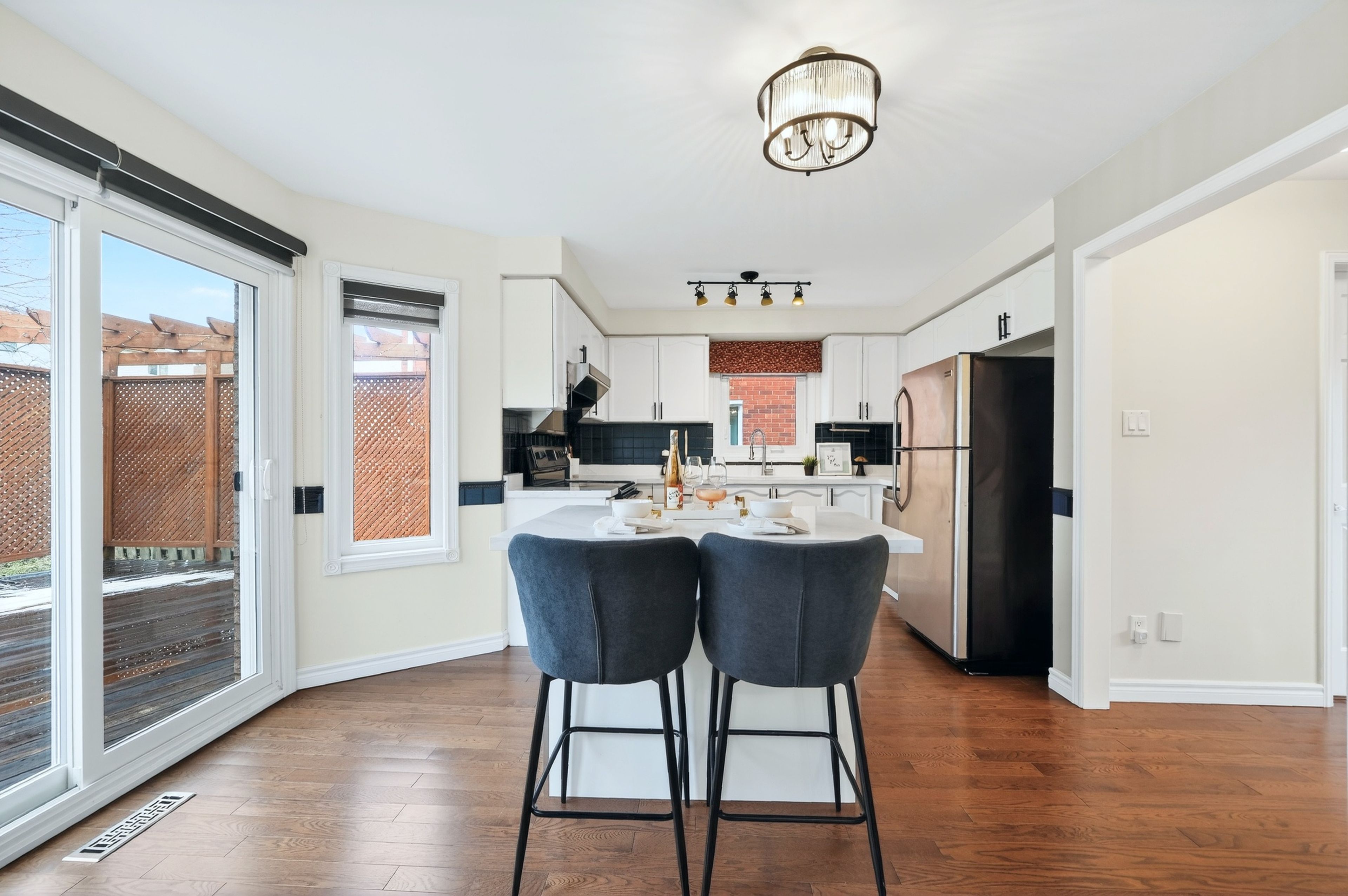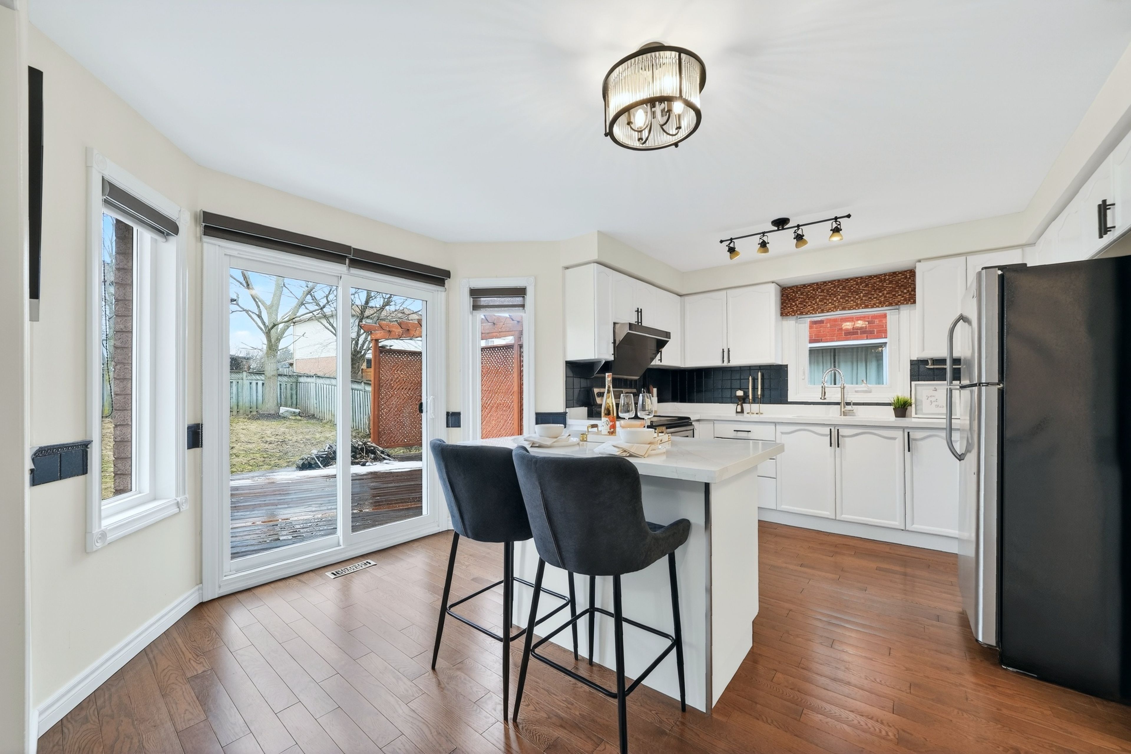 Welcome to 97 Bishop Dr, a beautifully updated family home tucked into Ardagh Bluffs, a neighbourhood loved for its peaceful, family-friendly atmosphere, excellent access to parks and green space, strong school options, and convenient proximity to Highway 400, shopping, and everyday amenities. Ardagh is especially known for its abundance of nature and trails while Barrie's waterfront is also just a short drive away. This move-in ready home offers a functional, well-designed layout with solid hardwood flooring throughout the main floor, bright and inviting living and dining spaces, and an updated kitchen featuring a brand-new centre island that is perfect for both daily living and entertaining. Recently upgraded main floor windows and doors add comfort, efficiency, and style, while the upgraded staircase brings a refined modern touch to the upper level, where you'll find three well-sized bedrooms ideal for growing families. All upgrades were completed in 2021.Step outside to enjoy the huge backyard deck, an excellent extension of the living space for summer gatherings & family BBQs. The professionally finished basement adds exceptional flexibility with a spacious recreation area and a 3-piece bath, offering outstanding in-law or extended family potential and easy future customization possibilities. Complete with a double car garage and set on a child-safe street, this is a fantastic opportunity to own a stylish, versatile home in one of the city's most desirable neighbourhoods. Do Not Miss!!