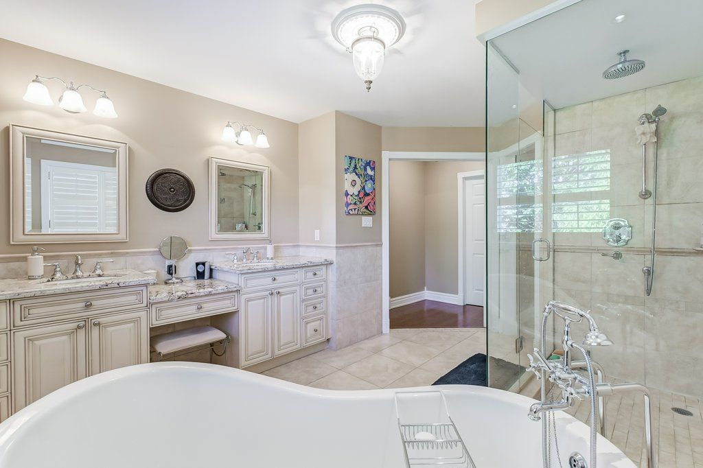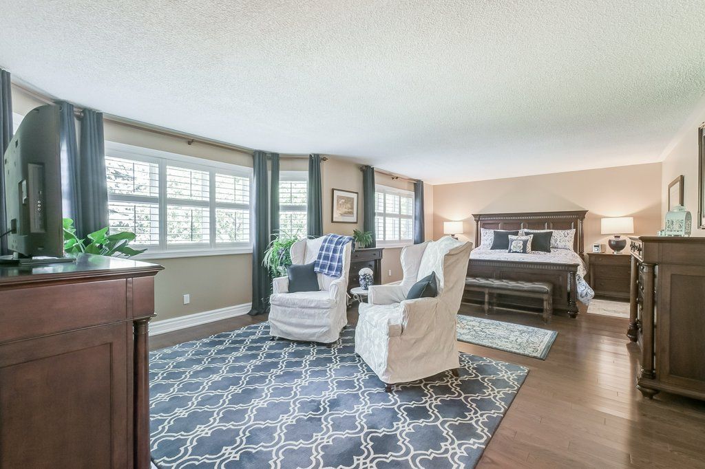 A wonderful family home located in the Brays Lane enclave of Glen Abbey. The Chamberlain by Mattamy homes, a sought after model of approx 3150 Sq Ft. A winding walkway leads to the custom double front doors and into the roomy Foyer. To the left is the Formal Living Room with electric fireplace and a bay window. The Dining Room is large enough for a full dining suite.The eat-in Kitchen has been completely renovated with high end appliances including a Wolf six (6) burner stove, custom backsplash, porcelain tile flooring and upgraded fixtures and cabinets. To the right of the Foyer is the Laundry Room, Powder Room and convenient Den or Office. There is a wood burning fireplace , large bright window and wainscotting in the main floor Family Room. Four Bedrooms on second floor, including a large Primary Bedroom with spacious 5 piece ensuite Bathroom, cosy sitting area and large organized walkin closet. All 4 bathrooms have been completely renovated. There are heated floors in the two upper Bathrooms.Solid oak floors throughout the main and second floors and engineered hardwood in basement. California shutters throughout. Upgraded wood trim throughout the home: six inch baseboards, crown moulding and door frames. Partially finished basement with spacious Recreation Room, exercise room and plenty of storage. New Carrier heat pump and furnace. The garage doors and Pollard windows and doors have been installed. Walkout from Kitchen to private fenced garden, two tiered cedar deck of almost 400 sq. ft., mature trees, manicured landscaping, garden shed and inground irrigation system. This home has been very well maintained and is in move in condition. Close access to schools, parks, trails, QEW and GO Train Station.
