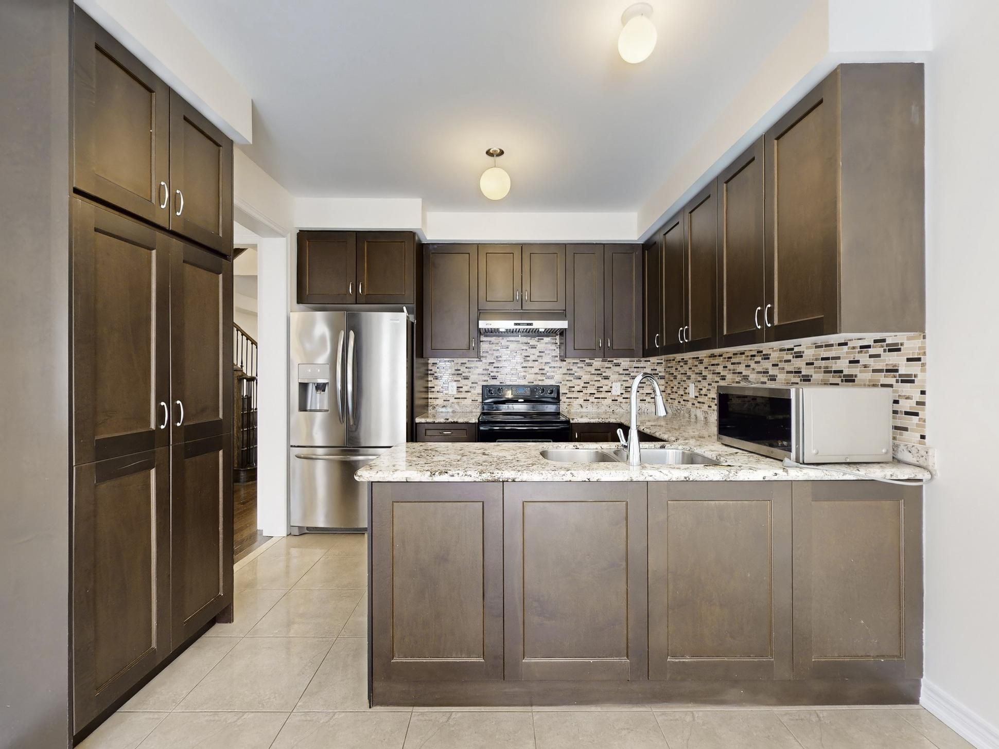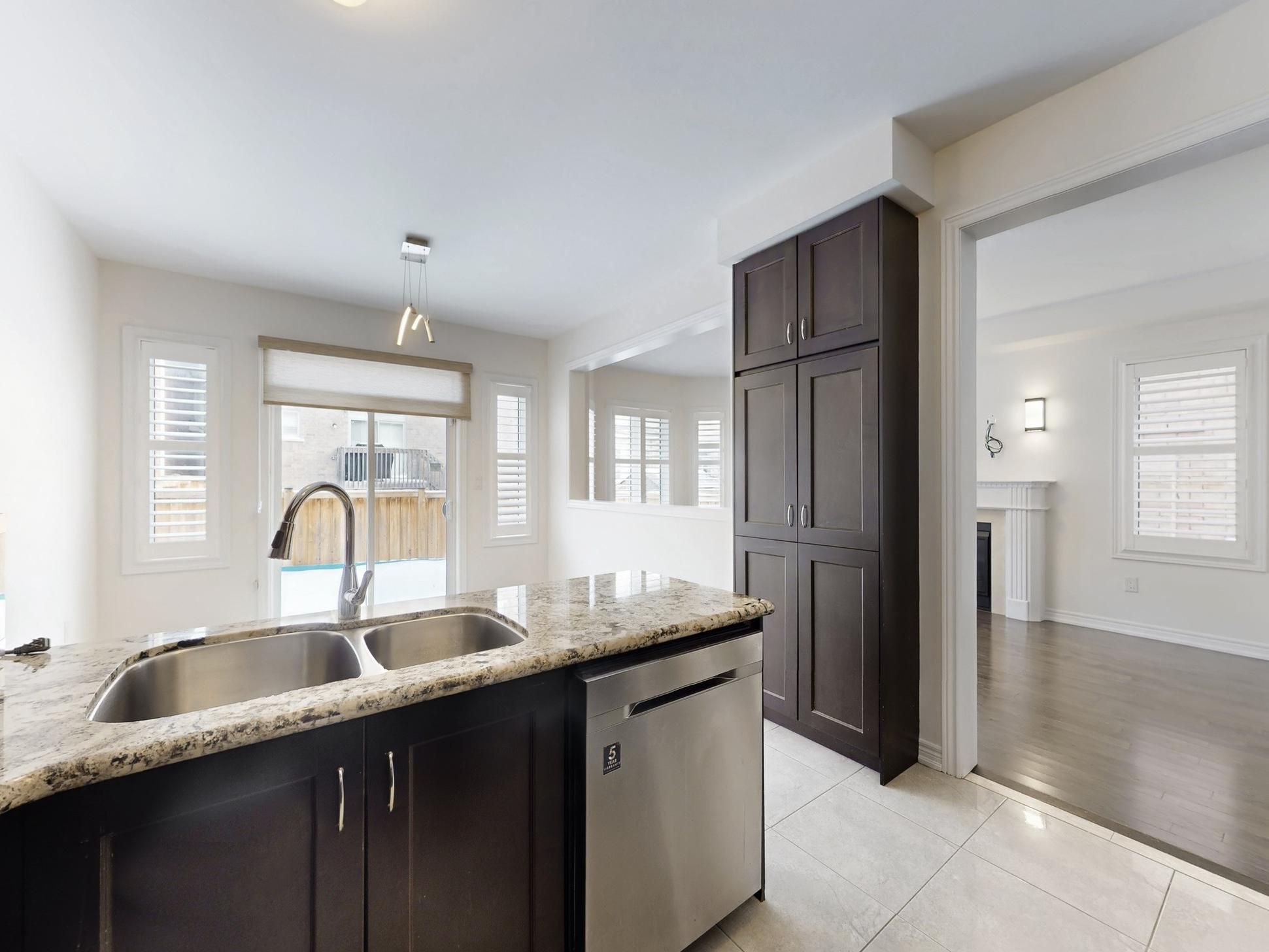 Incredible opportunity to own this well-maintained detached home! The entire house is freshly painted and features a modern kitchen with quartz countertops, backsplash, stainless steel appliances and 9 ft ceilings on the main floor. Additional highlights include an oak staircase, hardwood floors, California shutters throughout, a cozy gas fireplace, and convenient garage access from the house. Enjoy both a separate living room and a family room. The upper level laundry room is a practical convenience and also offers potential for conversion into a third bathroom, if desired. This beautiful home features four spacious bedrooms, providing ample space for your family. The primary bedroom includes a walk-in closet and a 4-piece ensuite. Located just a short drive from Mount Pleasant GO Station and close to public transit, parks, schools, plazas, and may other amenities, this home truly offers comfort and convenience