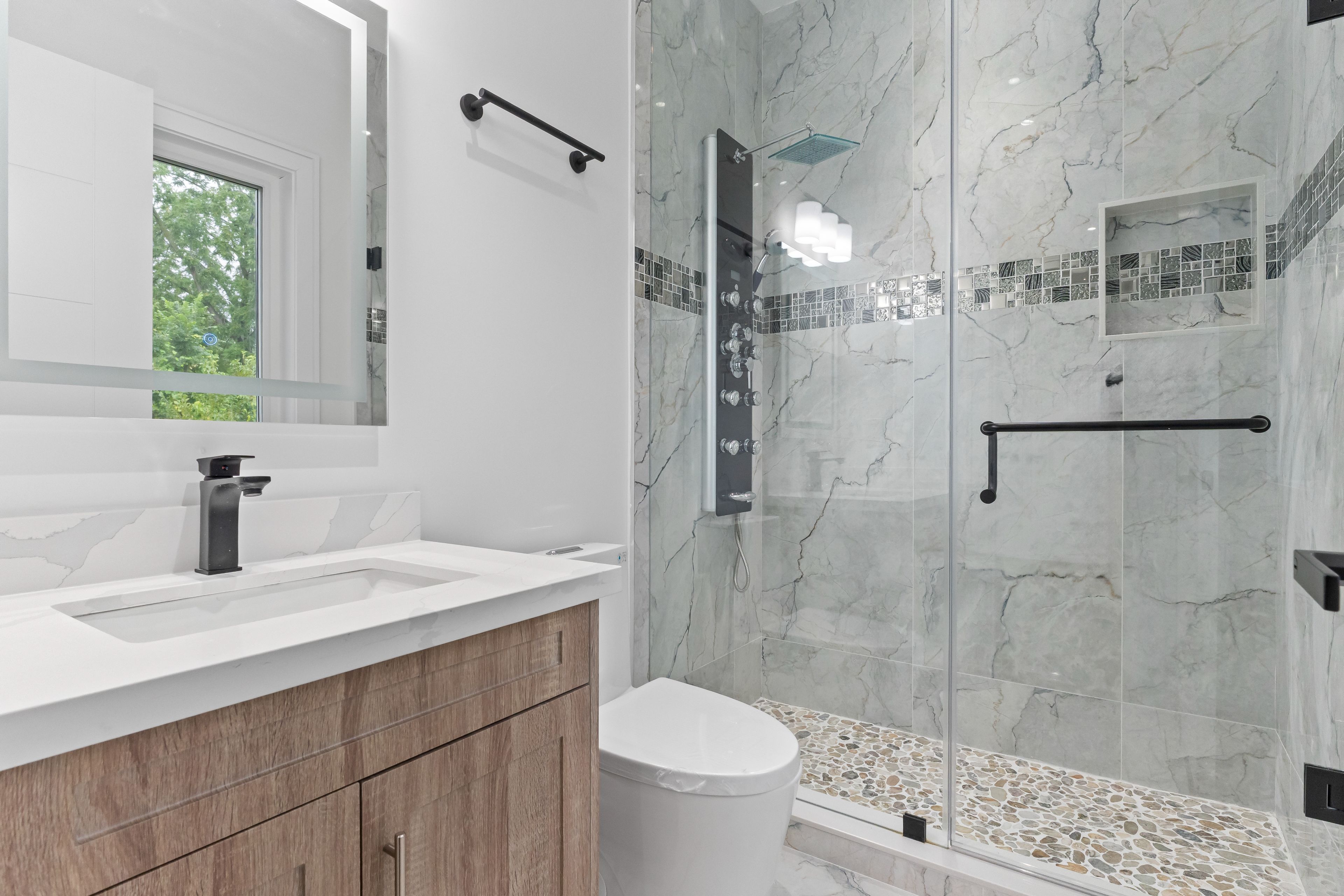 Welcome to 193 Mateo Place, an exceptional custom-built residence offering nearly 5000 sqft. of beautifully designed living space across three levels. Featuring 5+2 bedrooms and 7 bathrooms, this home combines timeless finishes with modern features throughout. The gourmet kitchen is equipped with top-of-the-line Decor built-in appliances, quartz countertops, a gas cooktop, bar fridge, double sink, and pantry. The inviting family room showcases custom built-in shelving, an electric fireplace, and a walk-out to the stone patio. A dedicated main floor office and mudroom add to the homes functionality. A striking oak tiered staircase with glass railings and a skylight serves as a dramatic centerpiece. Upstairs, you'll find five generously sized bedrooms, each with its own ensuite and large closet. The primary suite is a luxurious retreat, complete with a private balcony, electric fireplace, and a spa-inspired 5-piece ensuite featuring heated flooring, a freestanding tub, rainfall shower, and double vanity. The fully finished lower level offers exceptional versatility with a spacious recreation room, wet bar, two additional bedrooms, a 3-piece bathroom, and a walk-up to the backyard - ideal for multi-generational living. Additional highlights include 11ft ceilings on the main floor, custom wood-trim accent walls, a timeless stone-and-brick exterior, surround sound system, and a beautifully landscaped lot. Perfectly situated in a prime Mississauga neighbourhood, this home is just minutes from schools, parks, shopping, restaurants, and Mississauga Hospital, with quick access to the QEW for effortless commuting. Convenience, modern design and luxury come together in this stunning home to offer an unmatched living experience.