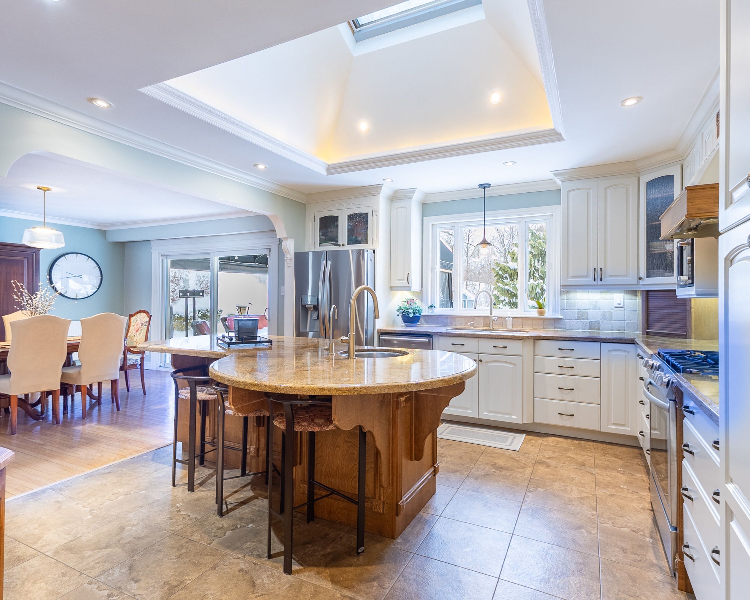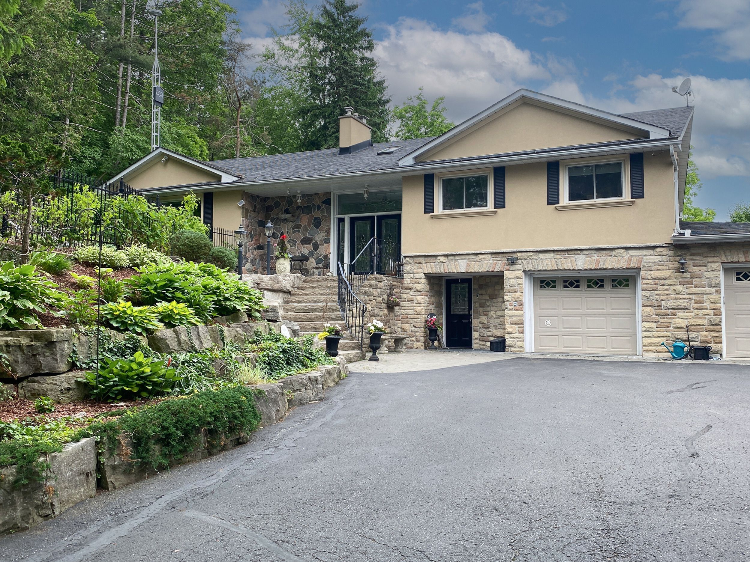 Tucked away on a quiet dead-end cul-de-sac court, this stunning raised bungalow combines elegance, comfort, and versatility with rare country-style privacy just steps from city living. Perfect for families, entertainers, or those seeking multi-generational living, this home offers an exceptional lifestyle. Inside, you'll find a spacious layout featuring 4 bedrooms above grade, including a primary suite with his-and-her closets and convenient semi-ensuite access. The home offers a luxurious 5-piece semi-ensuite bath plus a powder room with laundry, balancing style with everyday practicality. The heart of the home is the expansive gourmet kitchen with skylight, designed with both function and entertaining in mind. The adjoining dining area flows seamlessly to the backyard, creating a natural extension of your living space. Gather in the inviting family room with a cozy fireplace, or enjoy cinematic nights with the built-in drop-down screen. The lower level impresses with a second full kitchen, 3-piecebath, and a private dwelling unit with its own entrance-ideal for extended family, guests, or rental income. This self-contained suite features 1 bedroom, 1 bath, a kitchen, laundry, and storage. Car enthusiasts and professionals will love the double tandem heated garage, partially converted into a stylish hair salon while still offering generous storage. Additional parking is effortless with an attached carport and a driveway for 10+ vehicles. A large barn at the rear provides secure space for your collector car or extra storage. The backyard is a true resort-style retreat. Enjoy the pool, sauna, and cabana built by Jameson Pools in 2010, complemented by an outdoor fire pit-perfect for summer gatherings or quiet evenings under the stars. The expansive grounds invite both entertaining and private relaxation in equal measure. This property truly offers it all: luxury, functionality, and endless possibilities-all in an unparalleled setting.